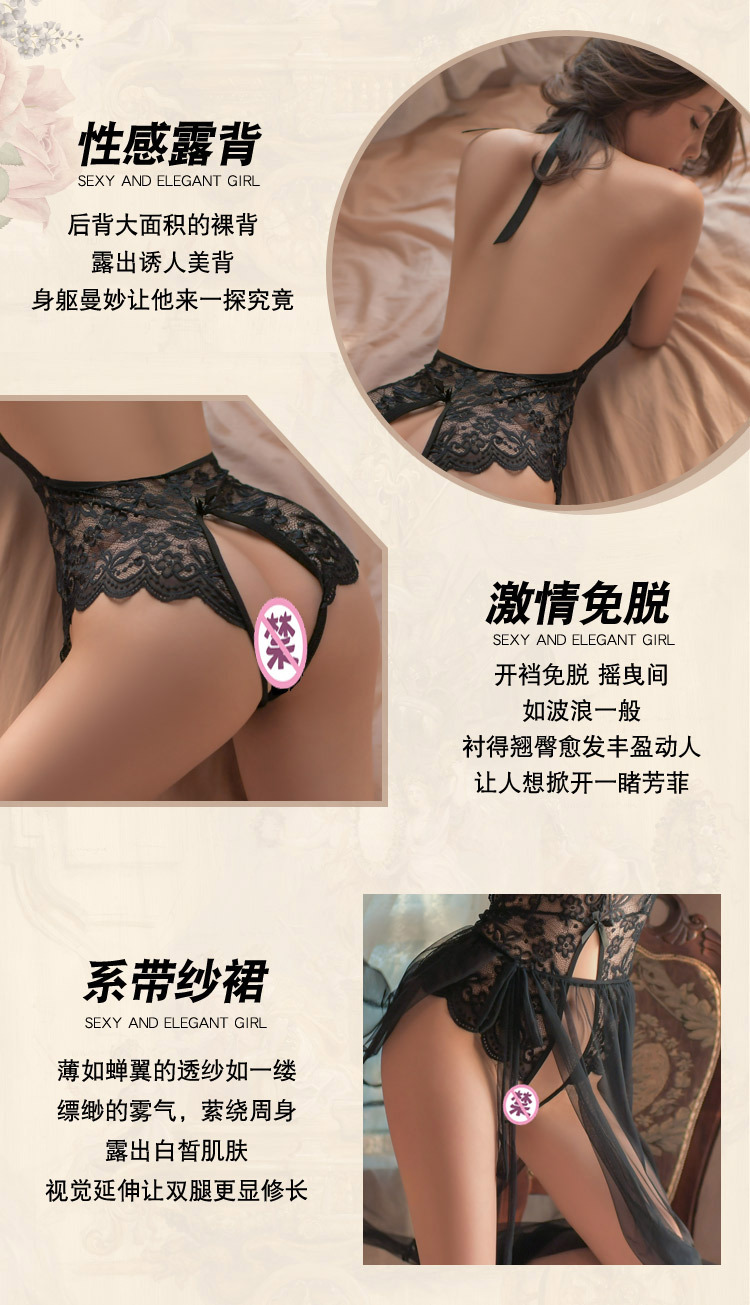 新款情趣内衣连体衣女开档性感睡衣镂空火辣长裙制服诱惑套装