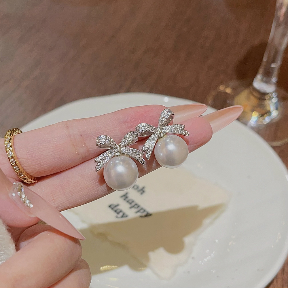 925银针气质小香风耳钉女简约小众ins珍珠耳环感锆石耳饰批发