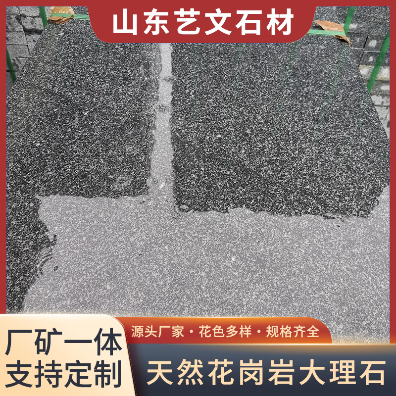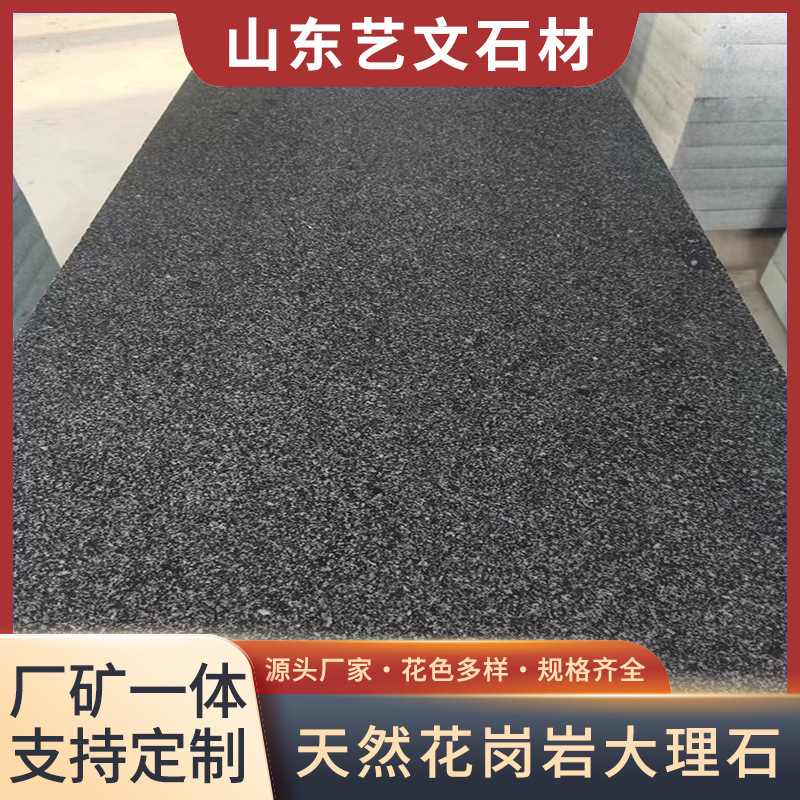 中国黑石材花岗岩光面地铺板蒙古黑福鼎黑荔枝面外墙墙贴水景石板