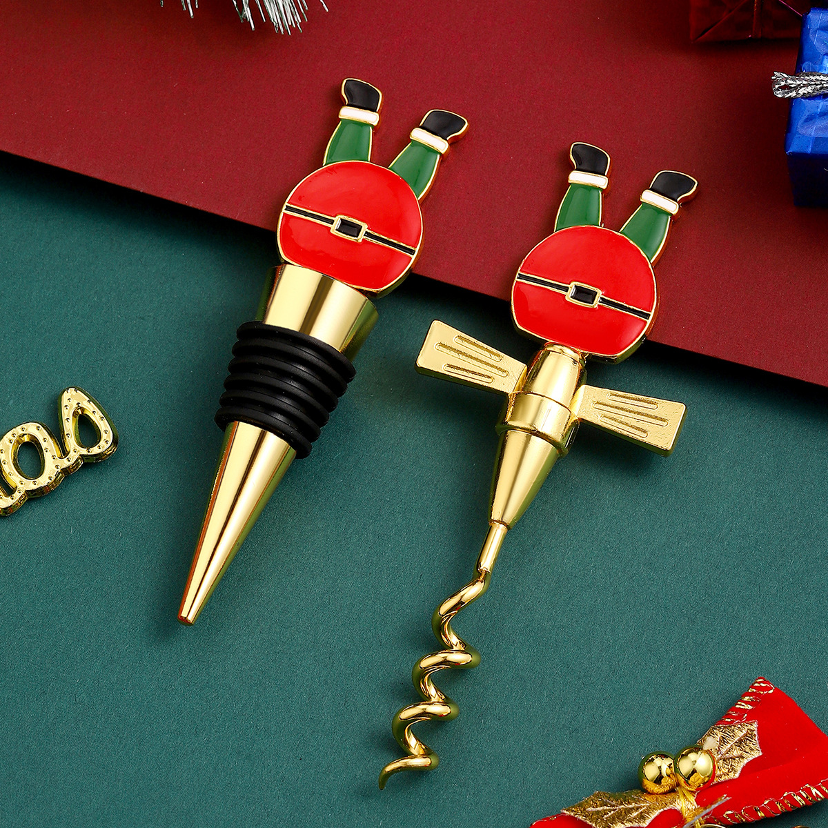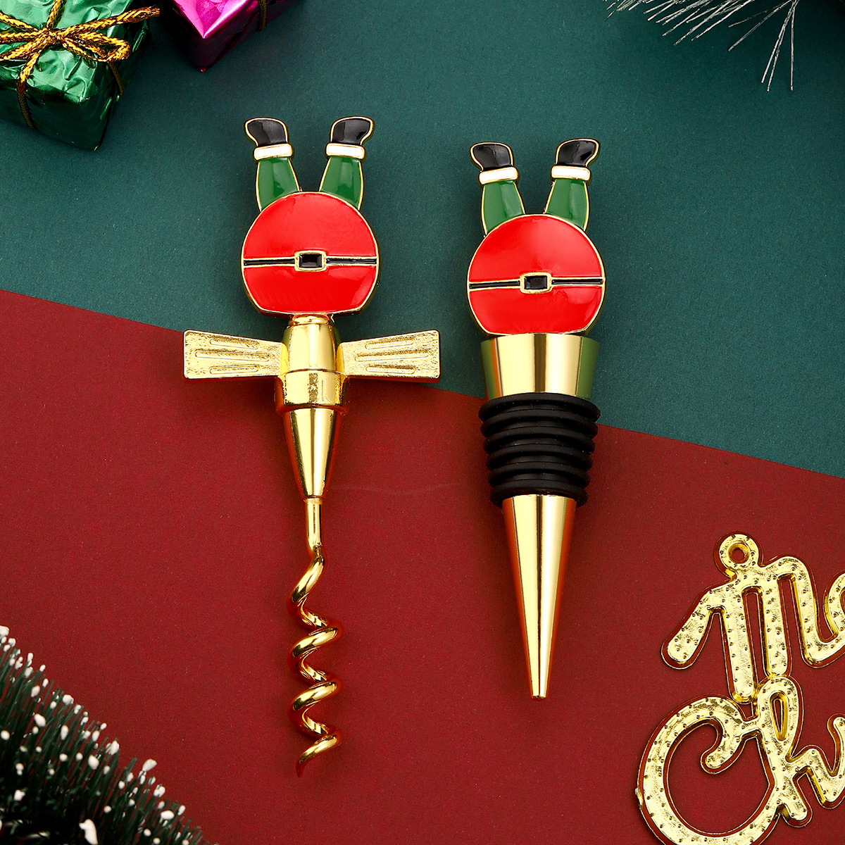 跨境圣诞红酒具套装葡萄红酒塞红酒开瓶器套装小礼品圣诞节日用品