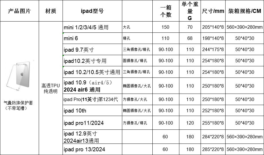 适用ipad透明保护壳素材壳厂家2个起批苹果气囊ipad平板保护壳