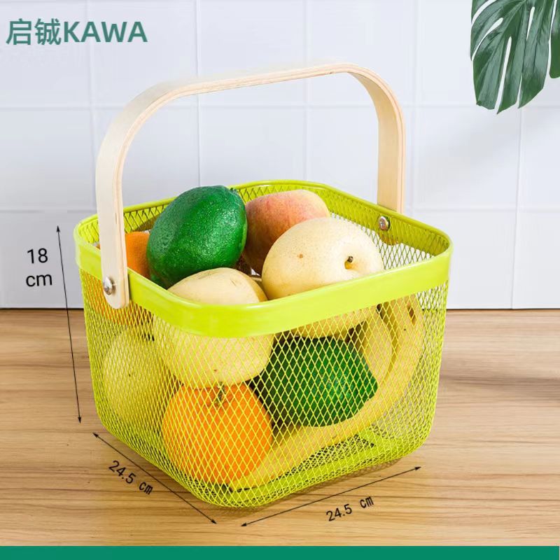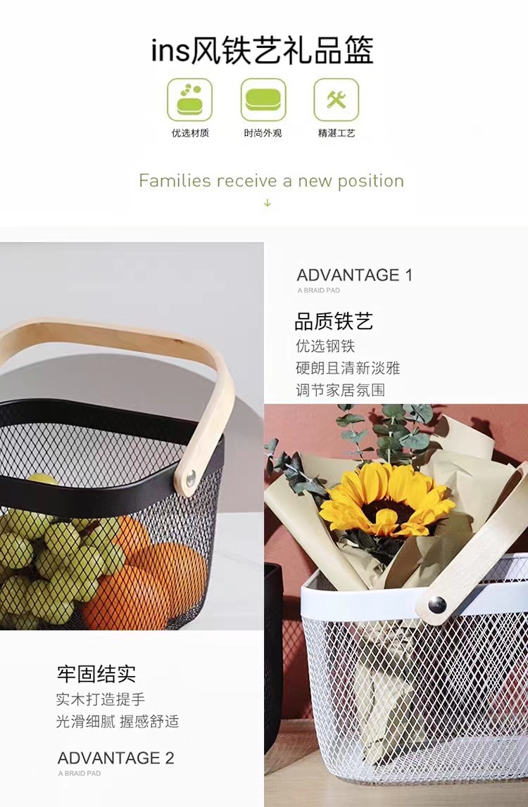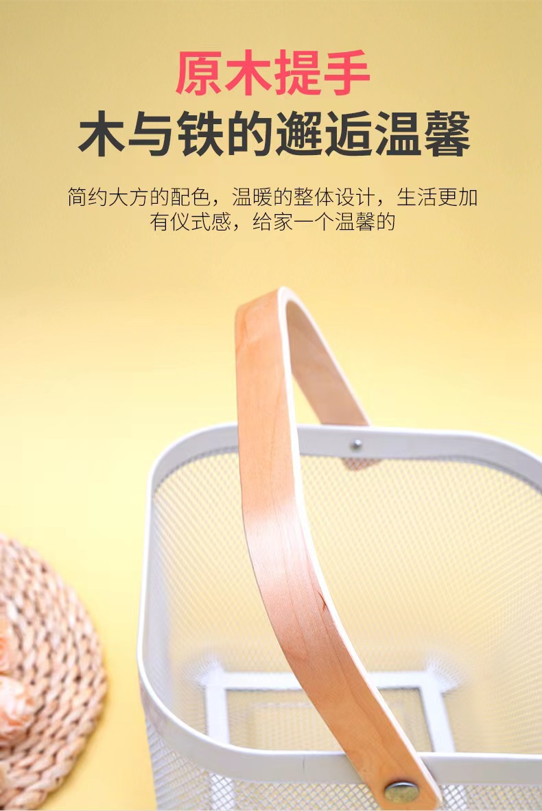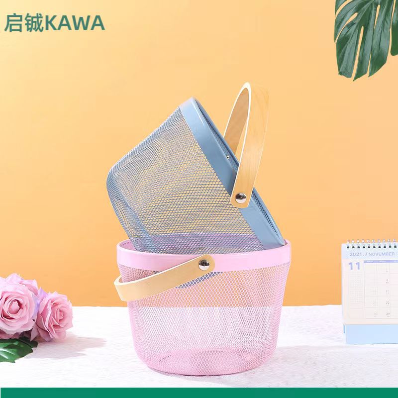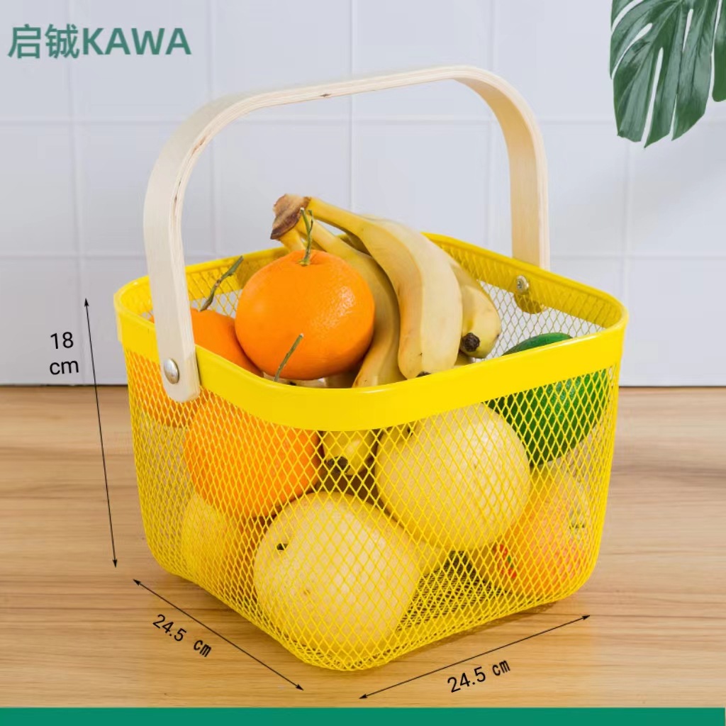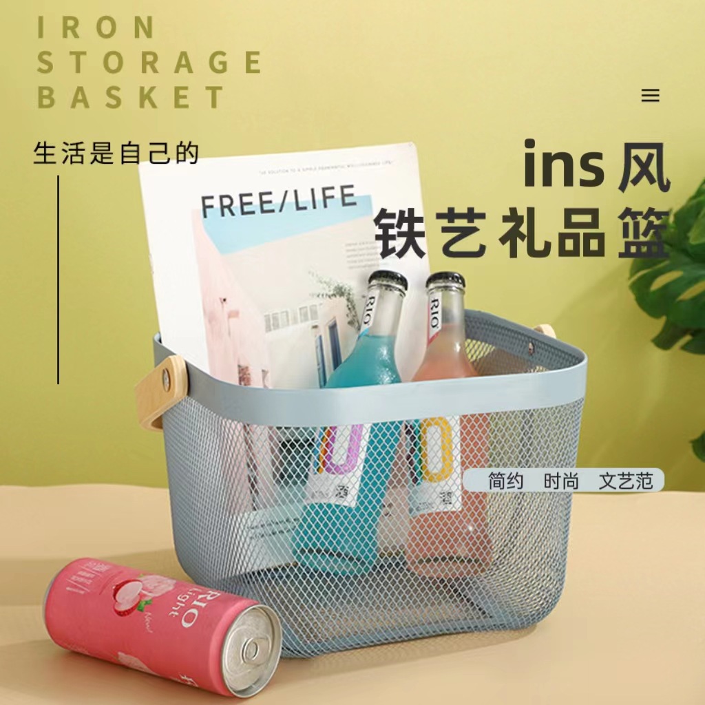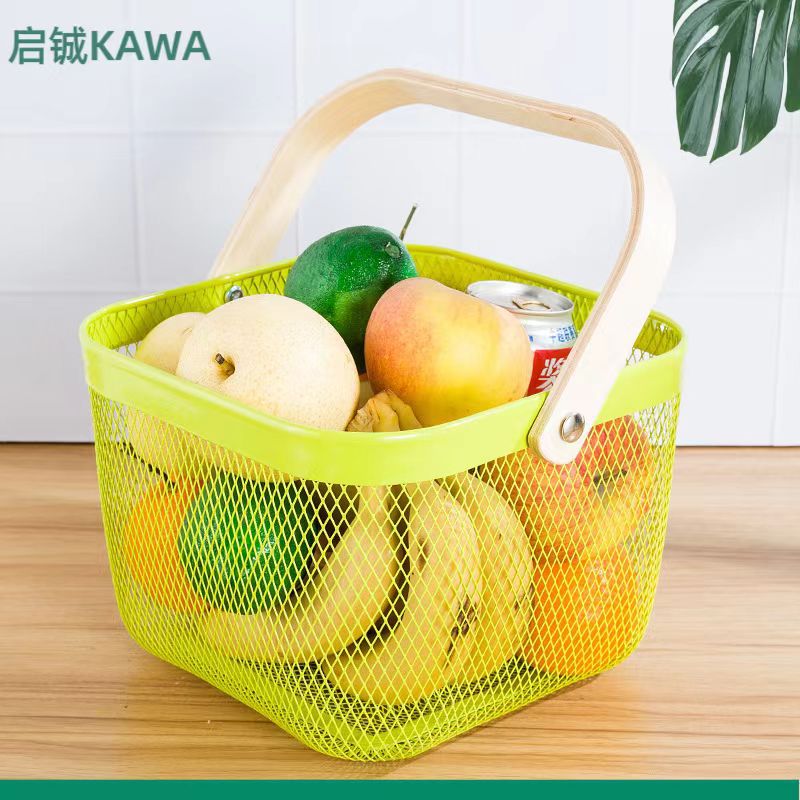 厂家直供伴手礼篮收纳篮收纳筐镂空木柄铁篮子水果篮沥水篮菜篮子