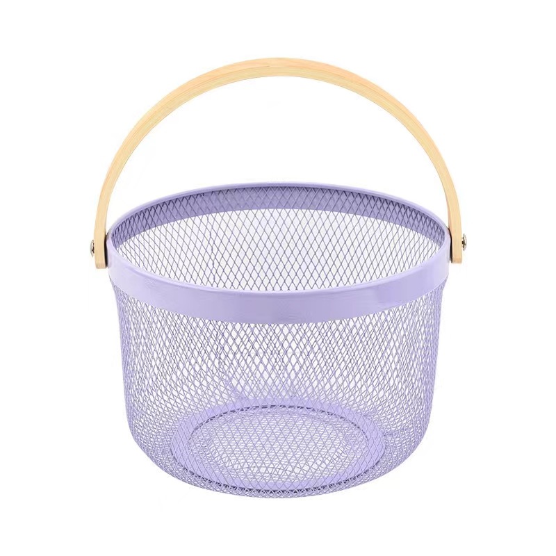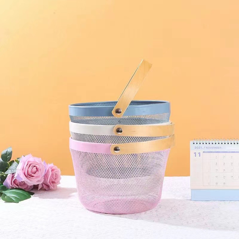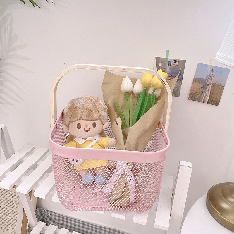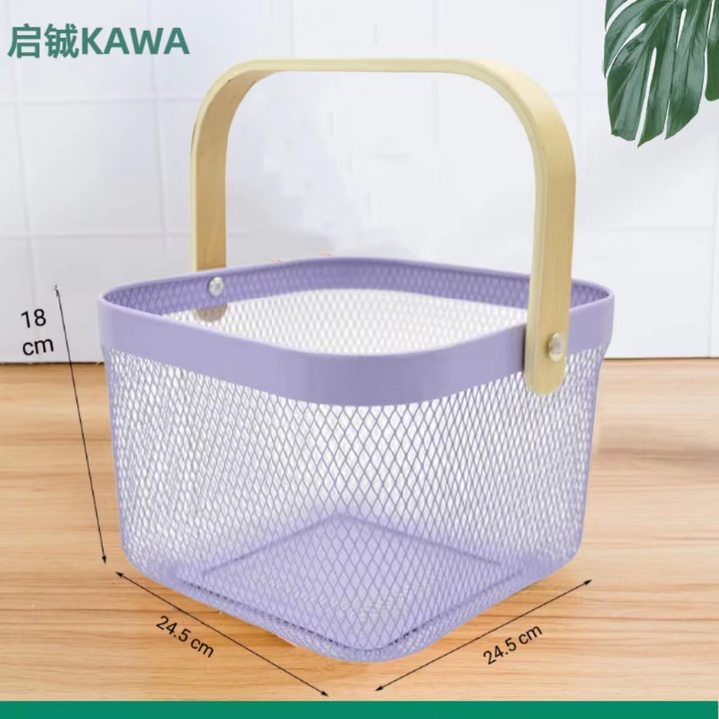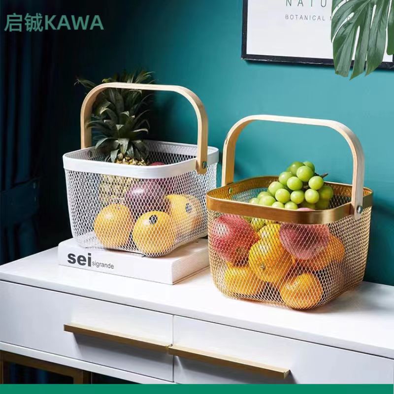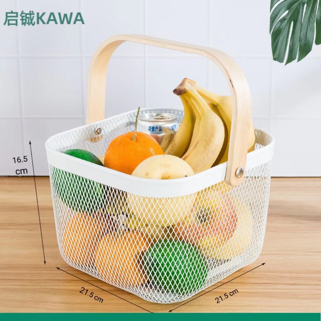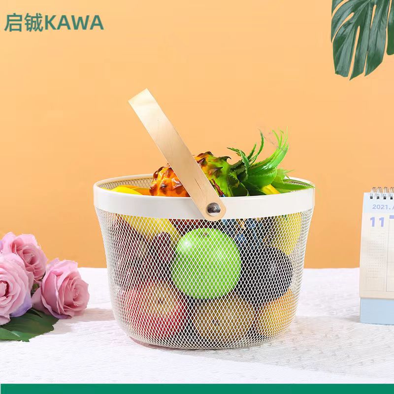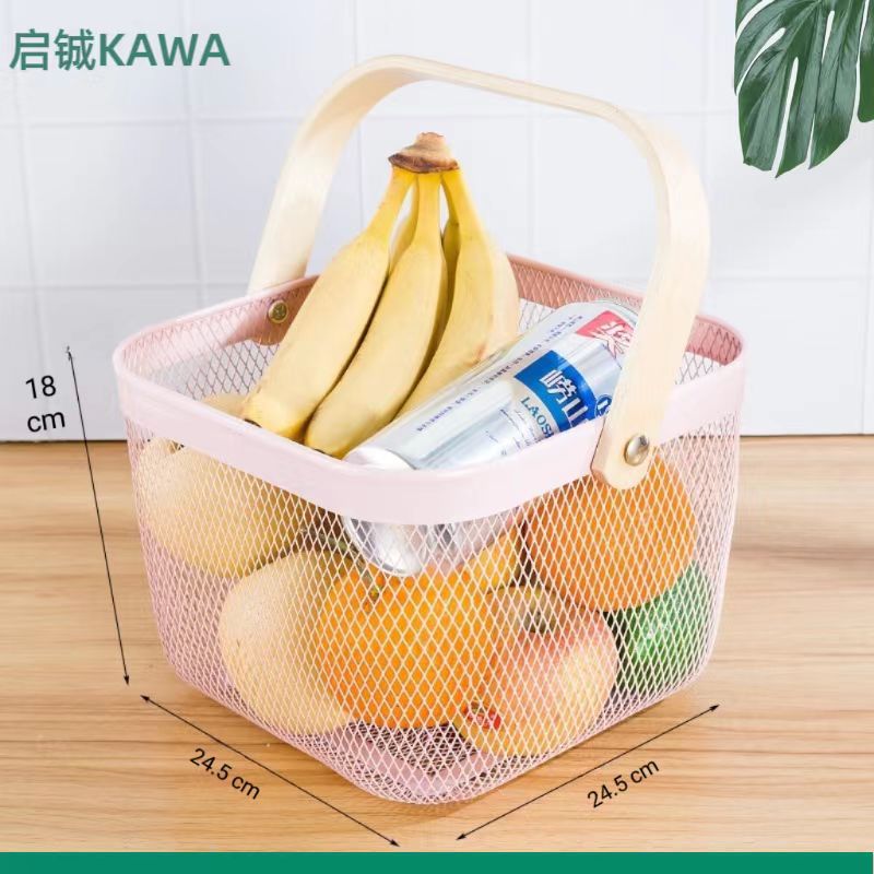 厂家直供伴手礼篮收纳篮收纳筐镂空木柄铁篮子水果篮沥水篮菜篮子