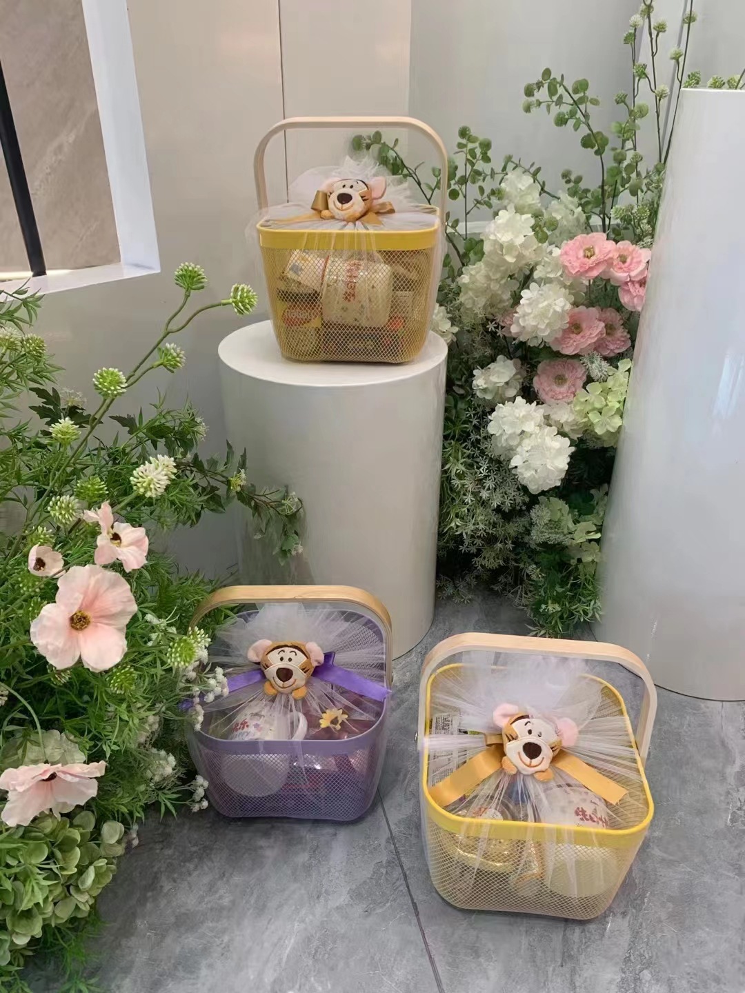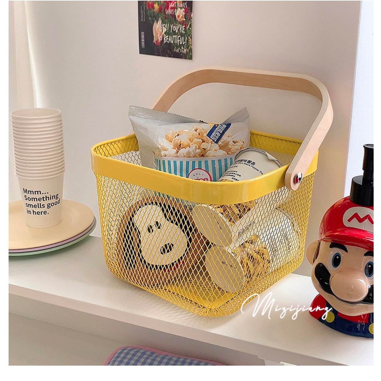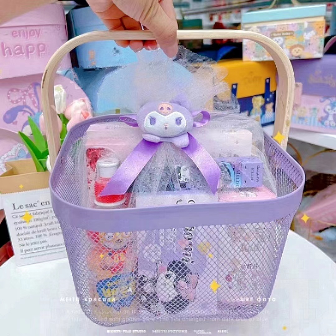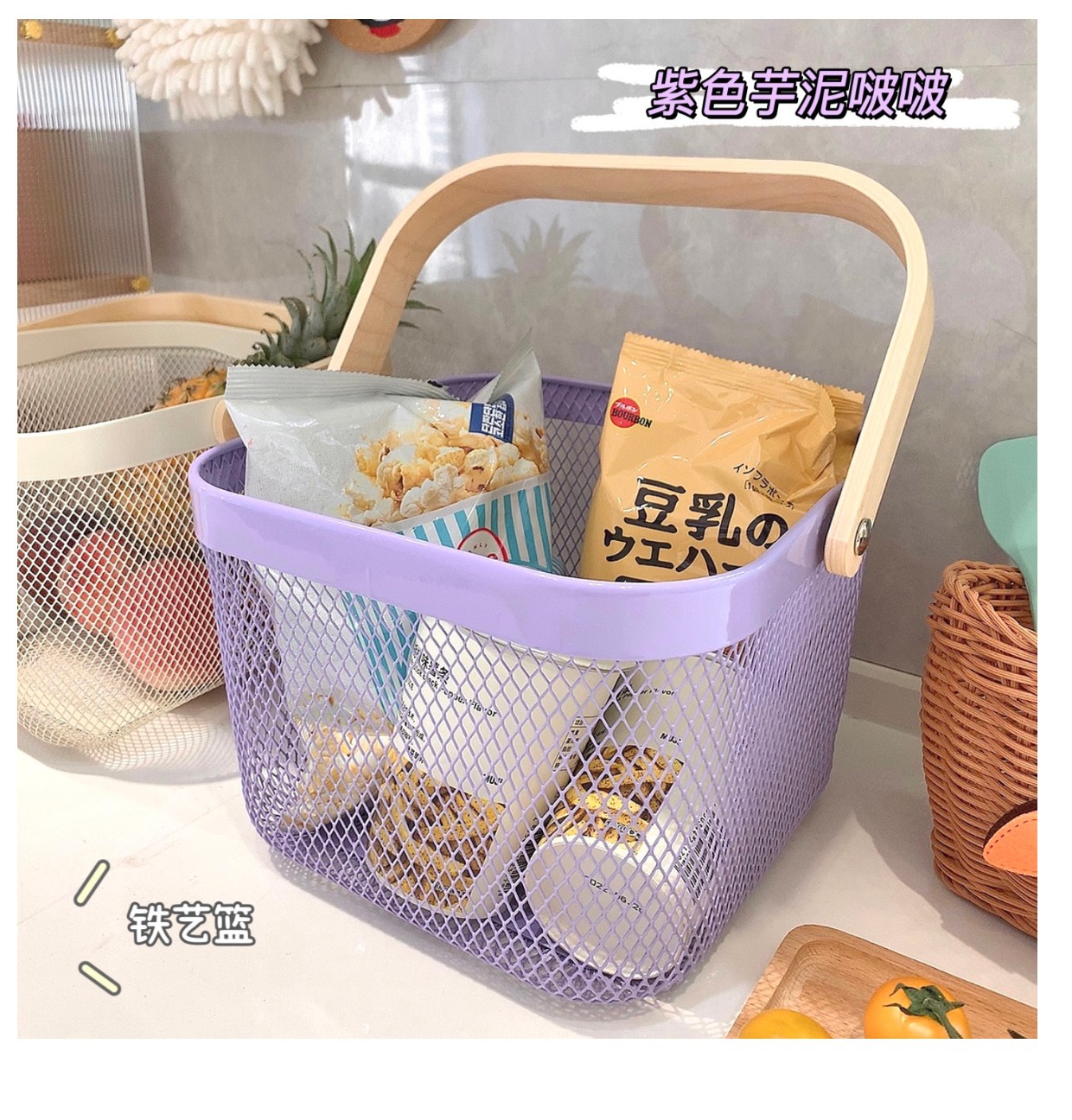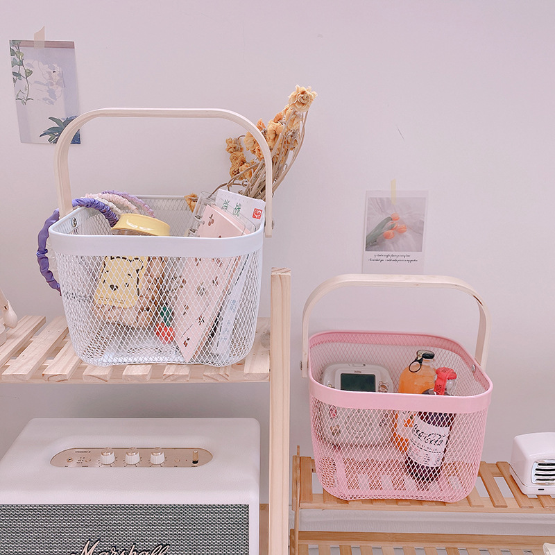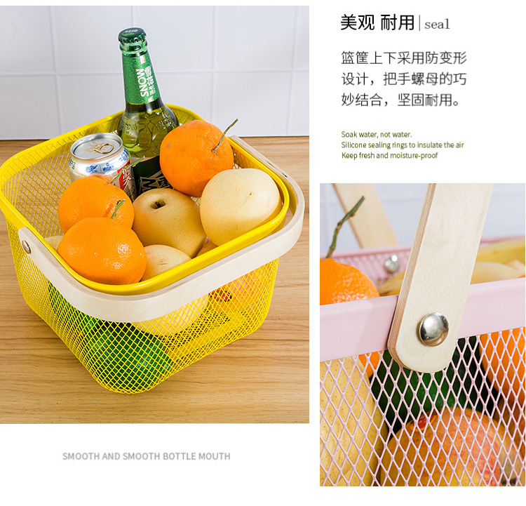 厂家直供伴手礼篮收纳篮收纳筐镂空木柄铁篮子水果篮沥水篮菜篮子