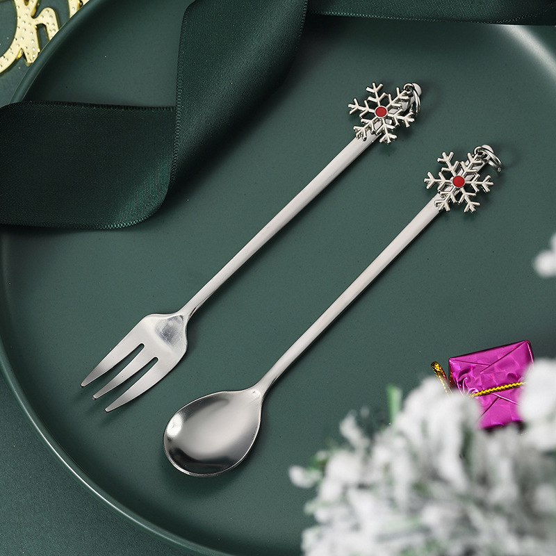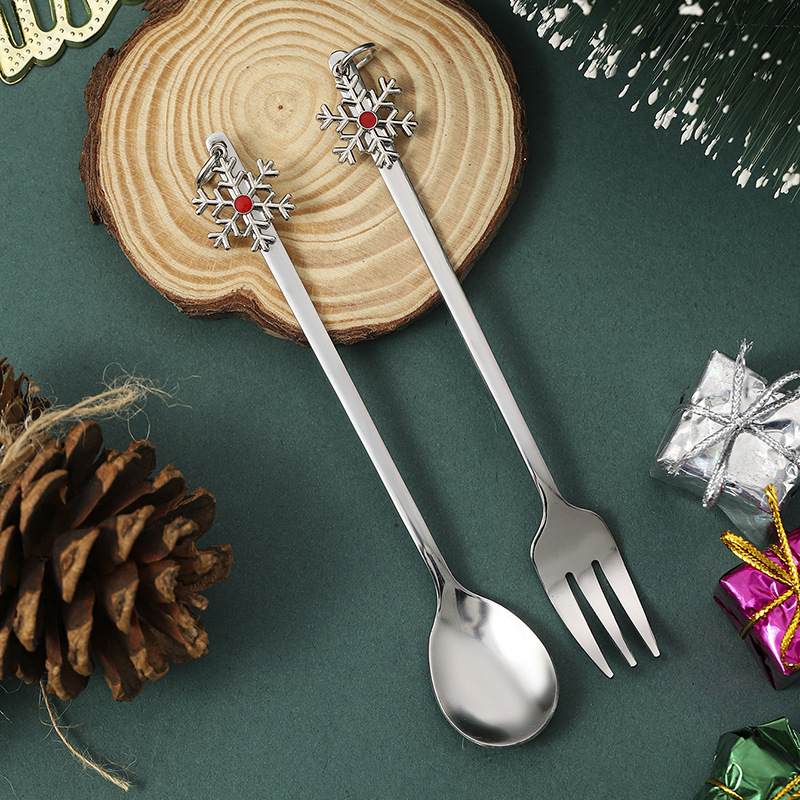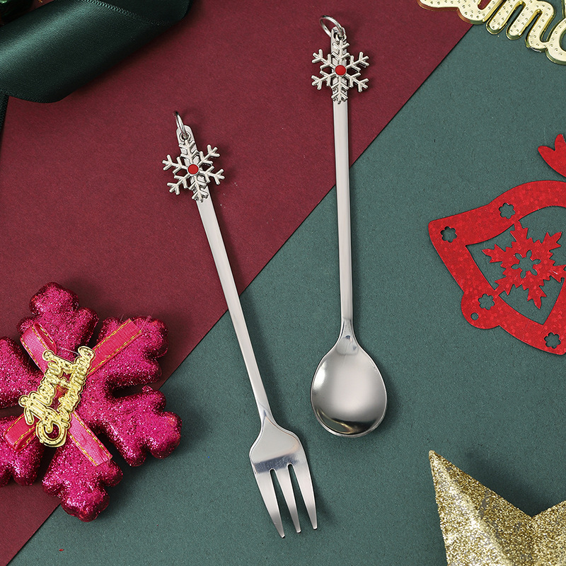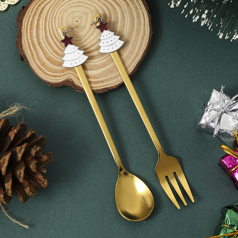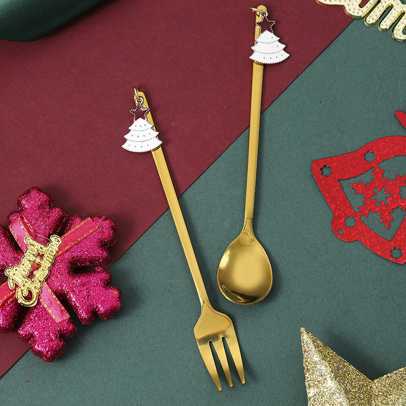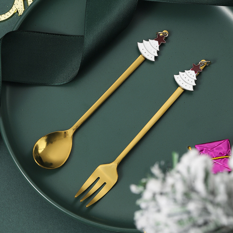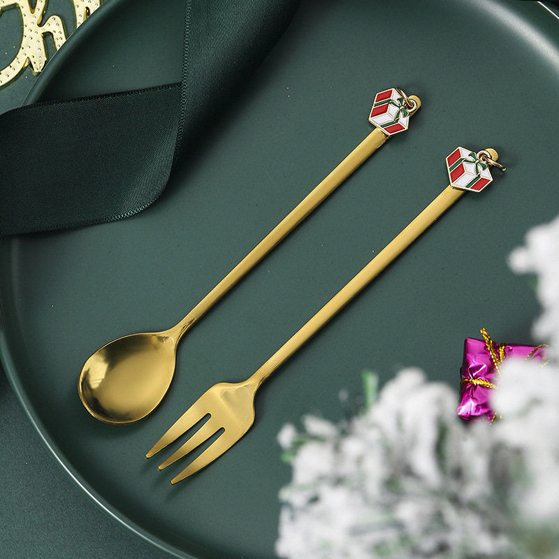 2025圣诞礼品金属不锈钢勺叉家用餐厅甜品咖啡勺创意勺叉餐具套装