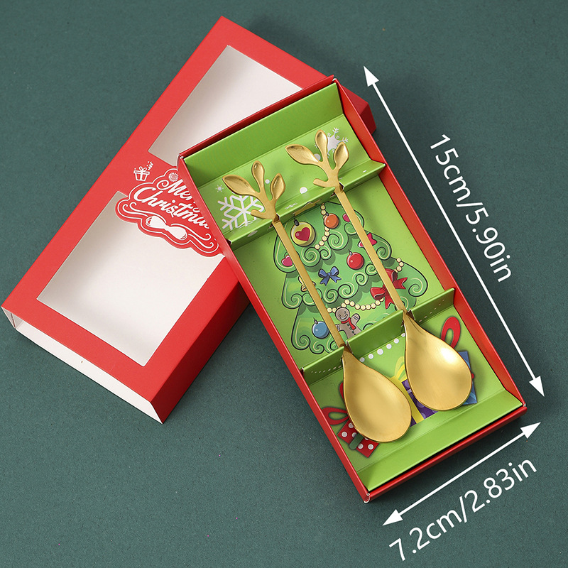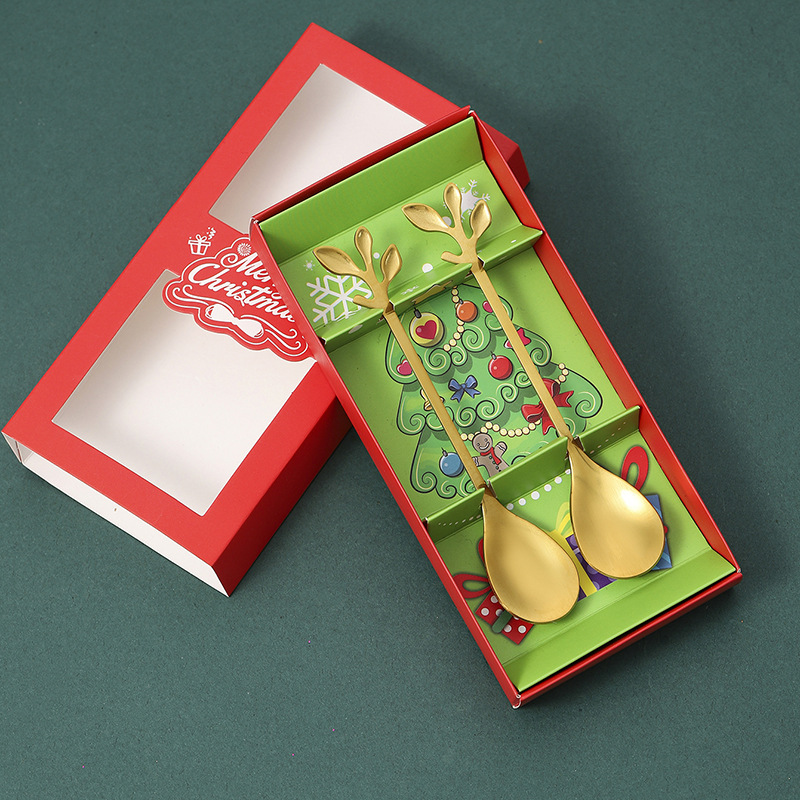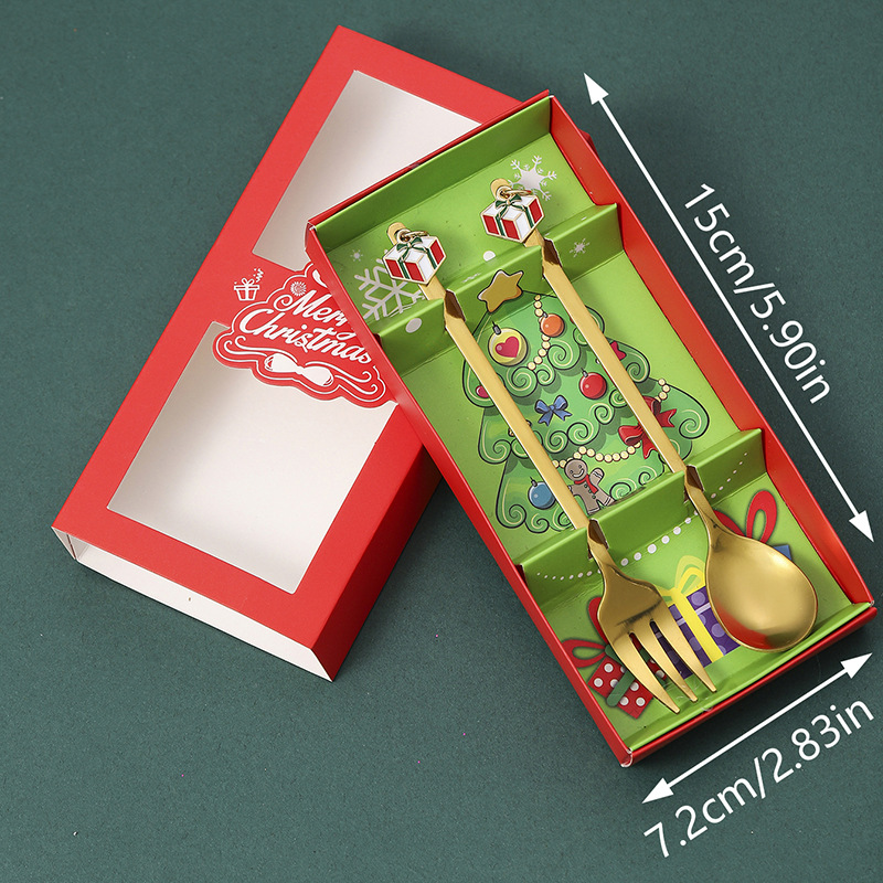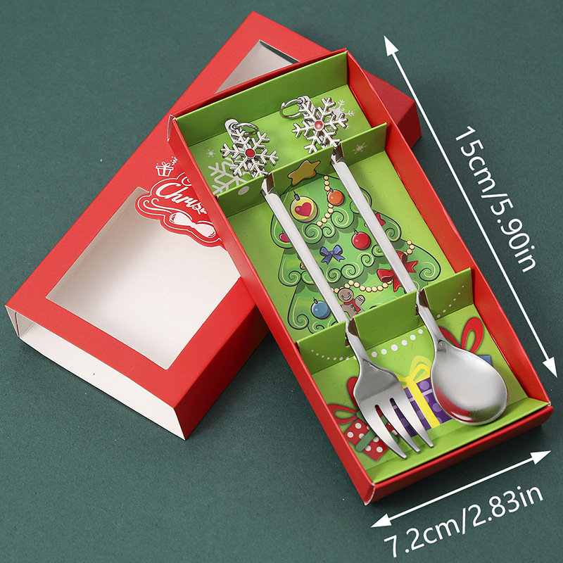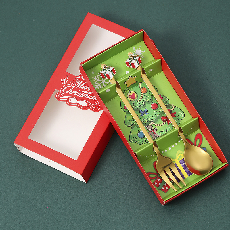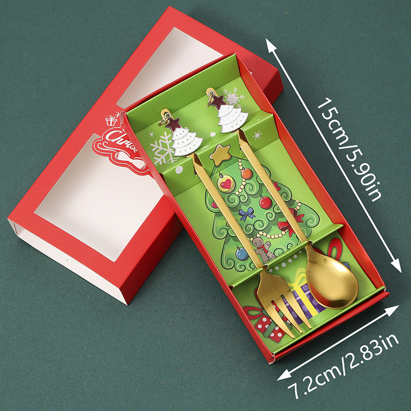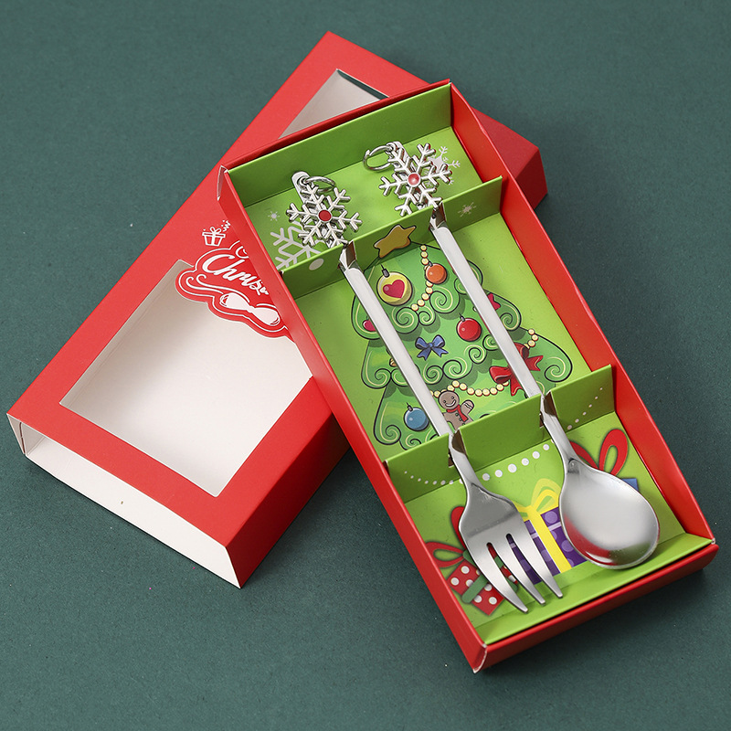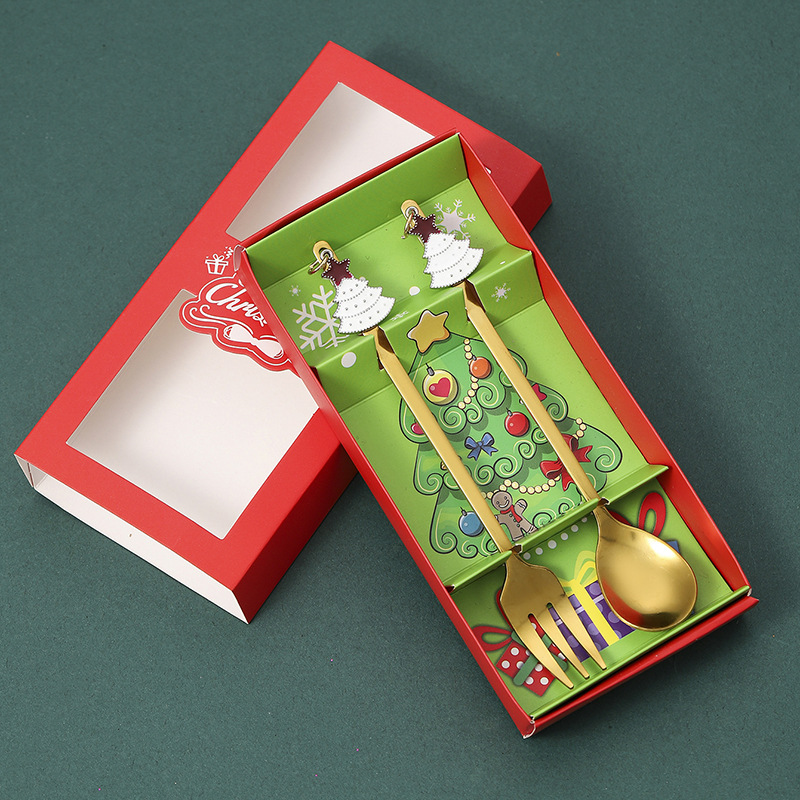 2025圣诞礼品金属不锈钢勺叉家用餐厅甜品咖啡勺创意勺叉餐具套装