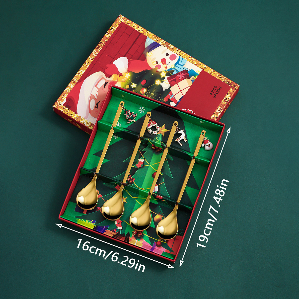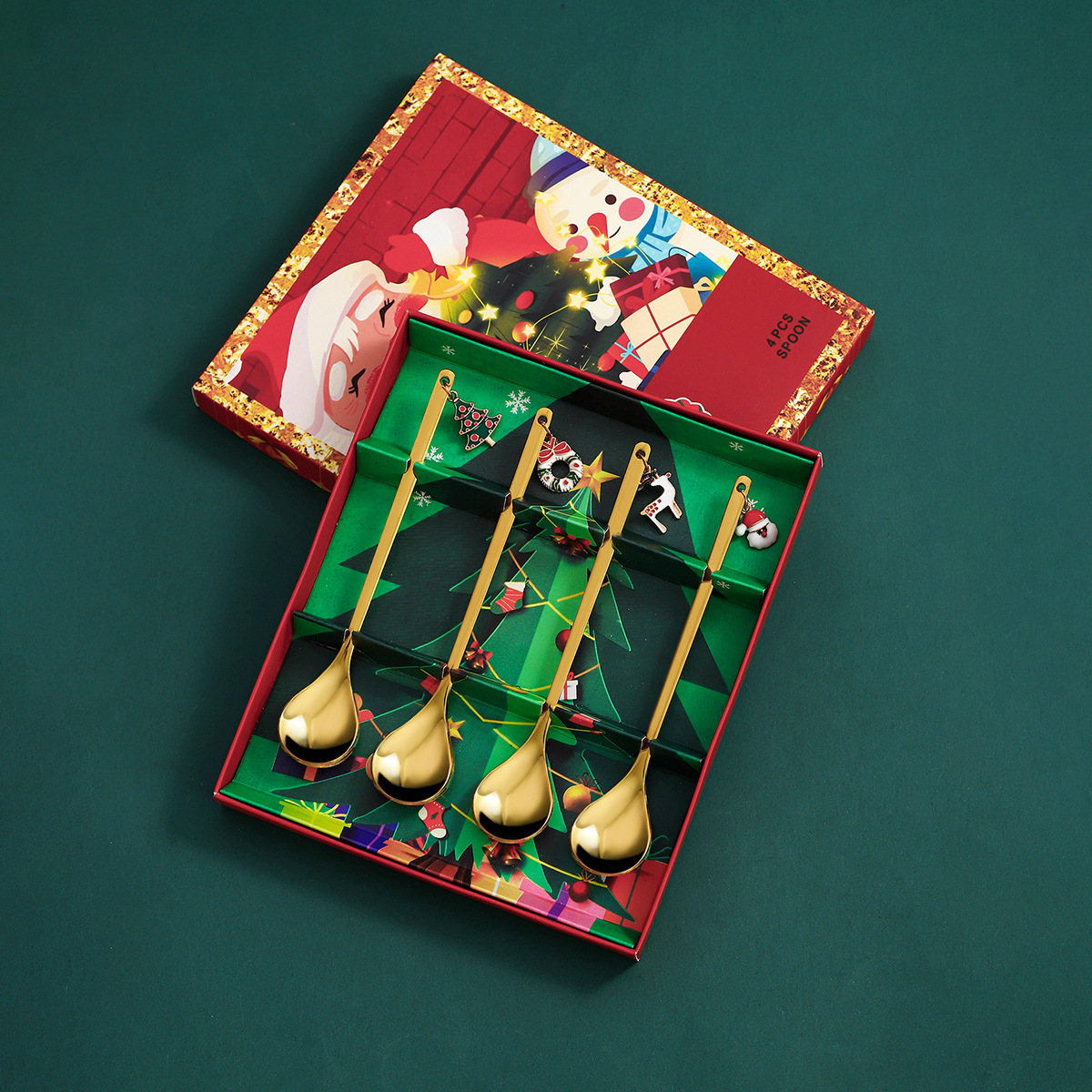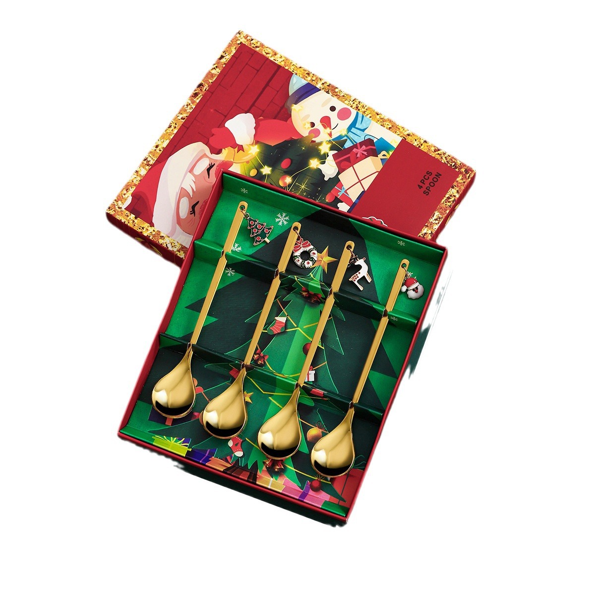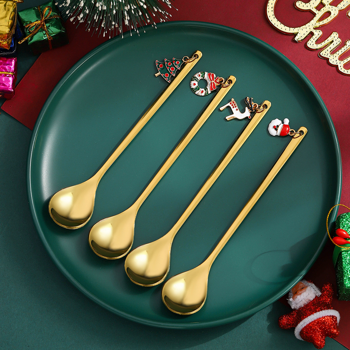 跨境圣诞节勺子套装创意不锈钢甜品勺咖啡搅拌勺圣诞礼品吊坠勺子