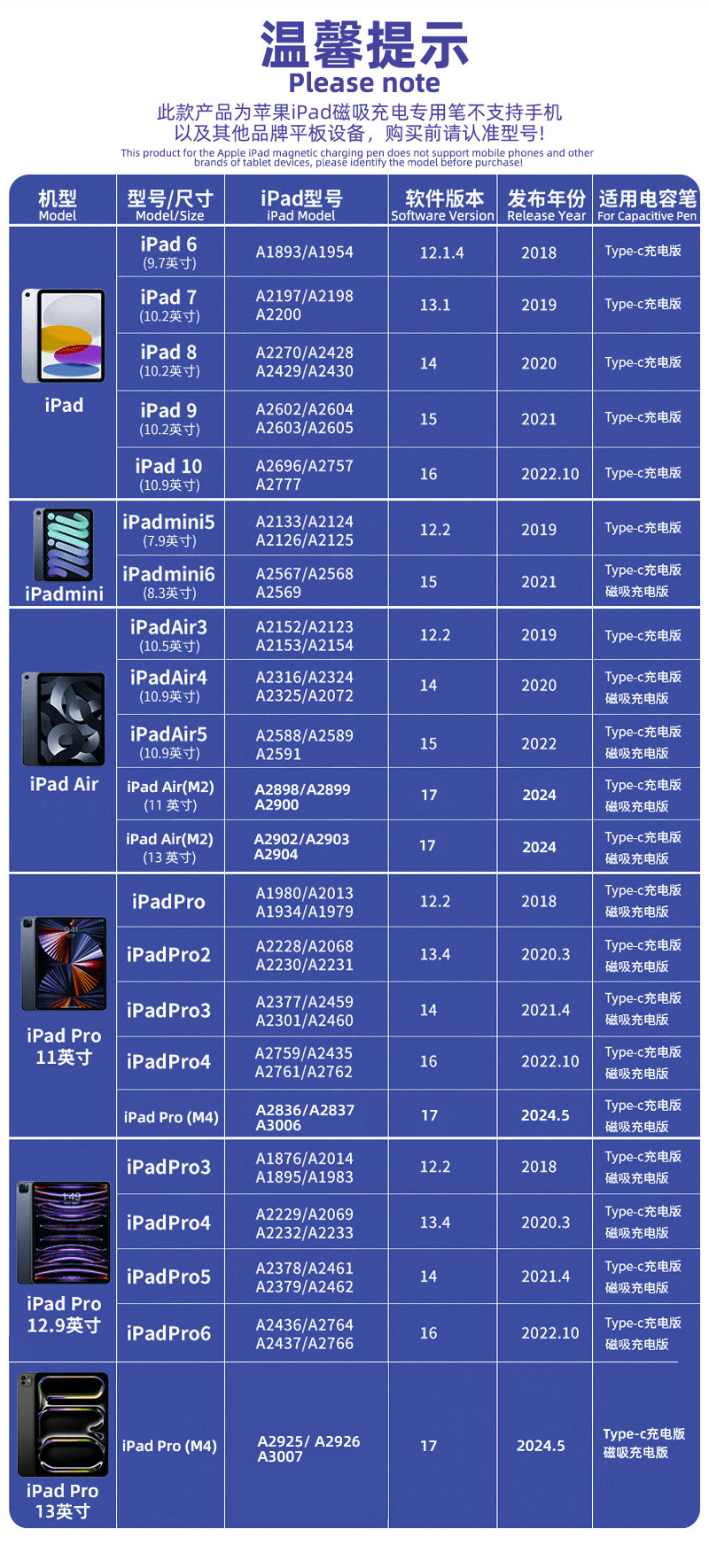 ipadpencil电容笔磁吸苹果手写笔适用apple pencil触控触屏笔批发