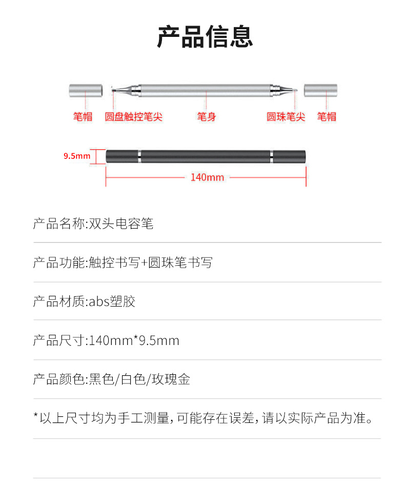 电容笔平板触屏笔通用手机触控笔修图绘画剪映二合一手写笔圆珠笔