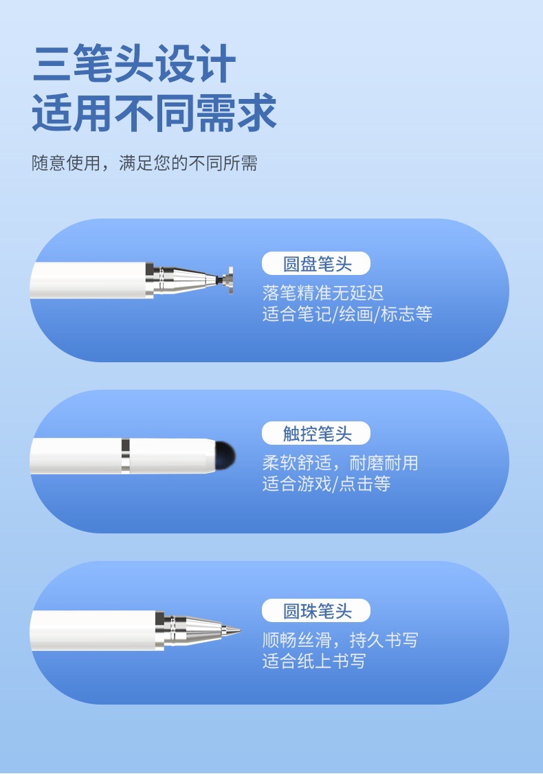 【三合一】高精度触控笔适用苹果ipad华为pencil手写笔绘画电容笔
