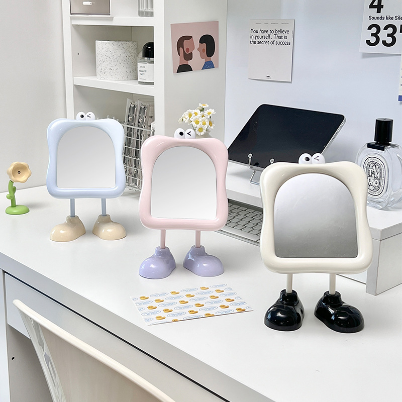 新款卡通大眼仔台镜居家宿舍化妆镜角度可调节桌面不变形小镜子女