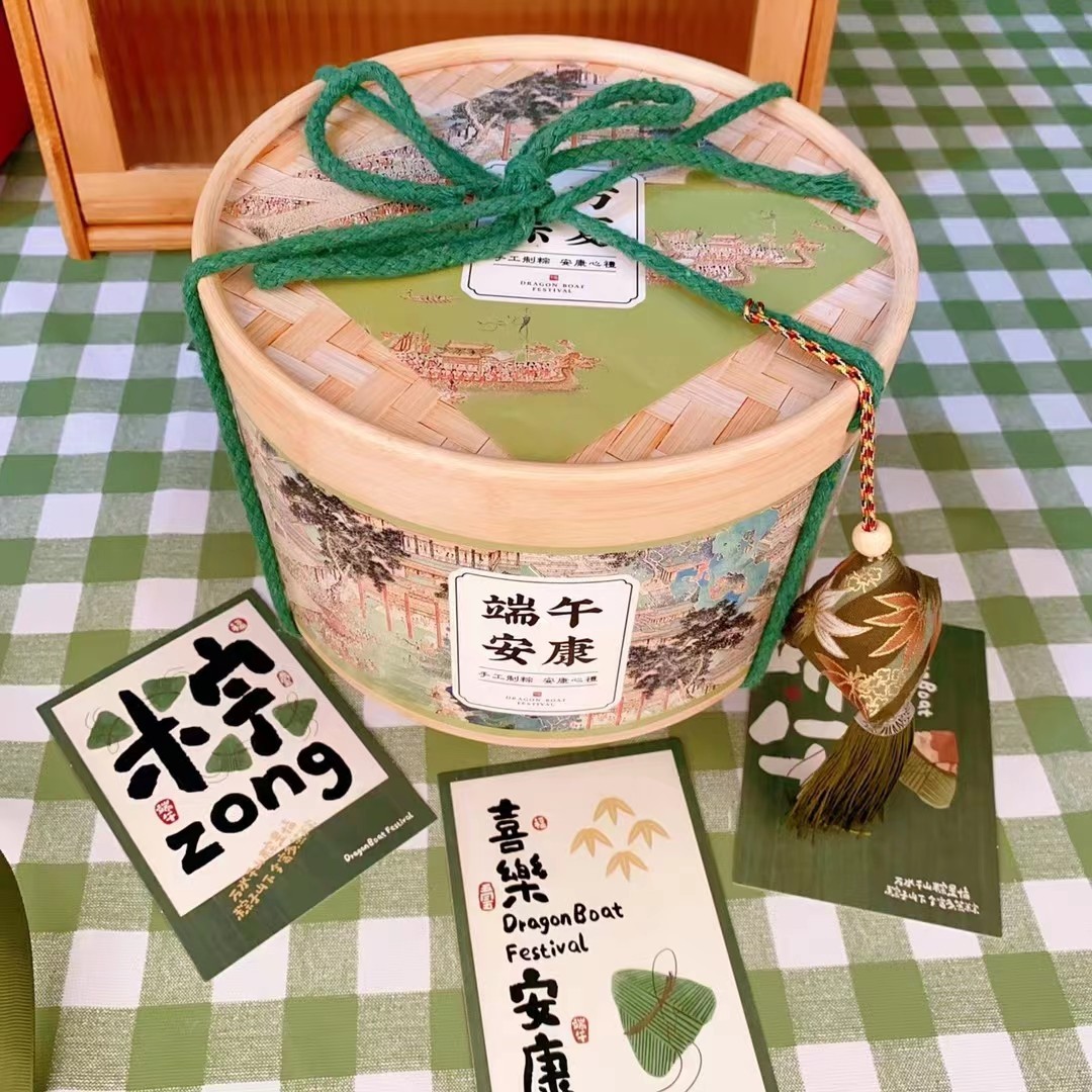 2024蒸笼竹纹抱抱桶蒸蒸日上端午节粽子鸭蛋包装礼盒高档手提袋