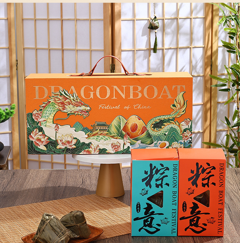 现货批发粽子盒端午节礼品盒可折叠跨境专供一片式礼品包装盒空盒