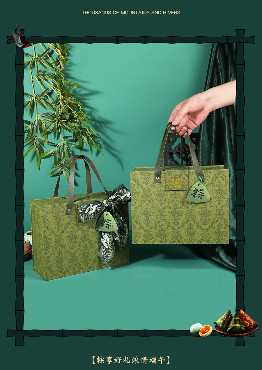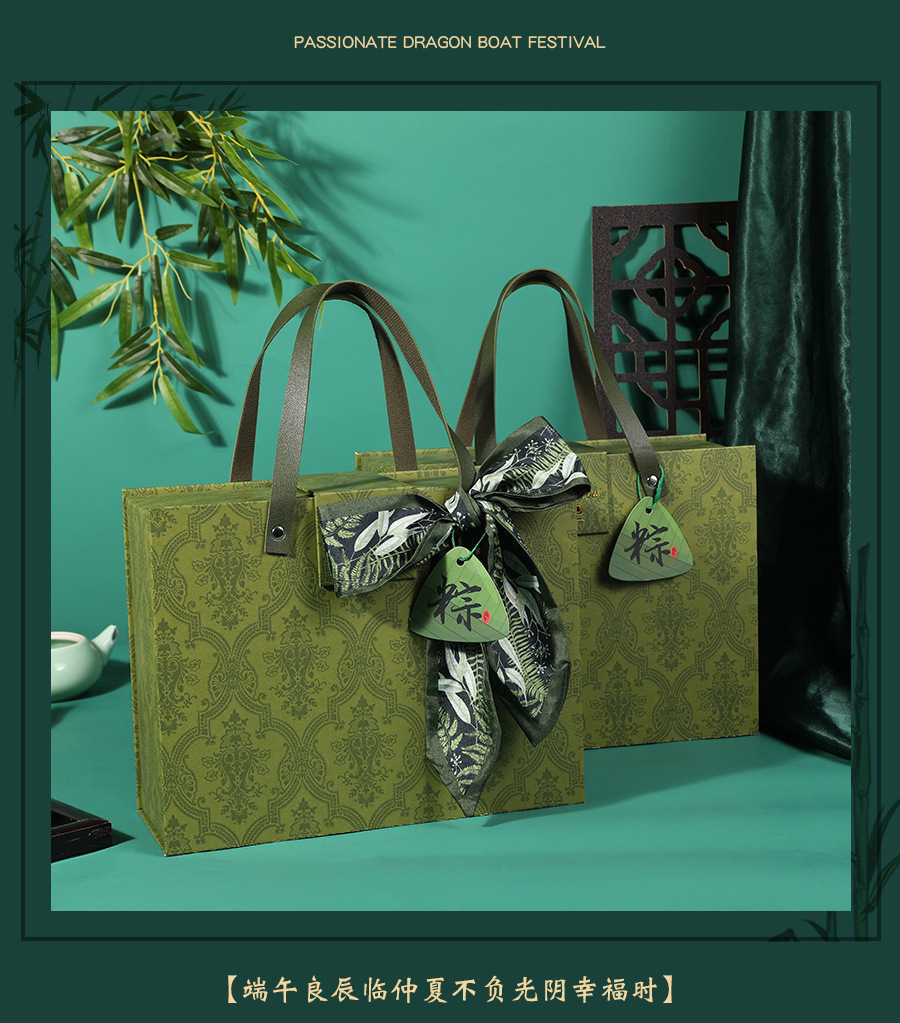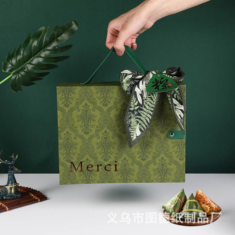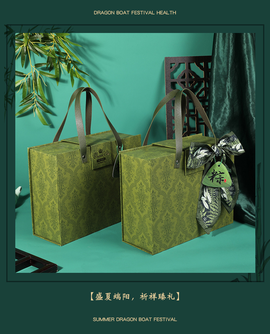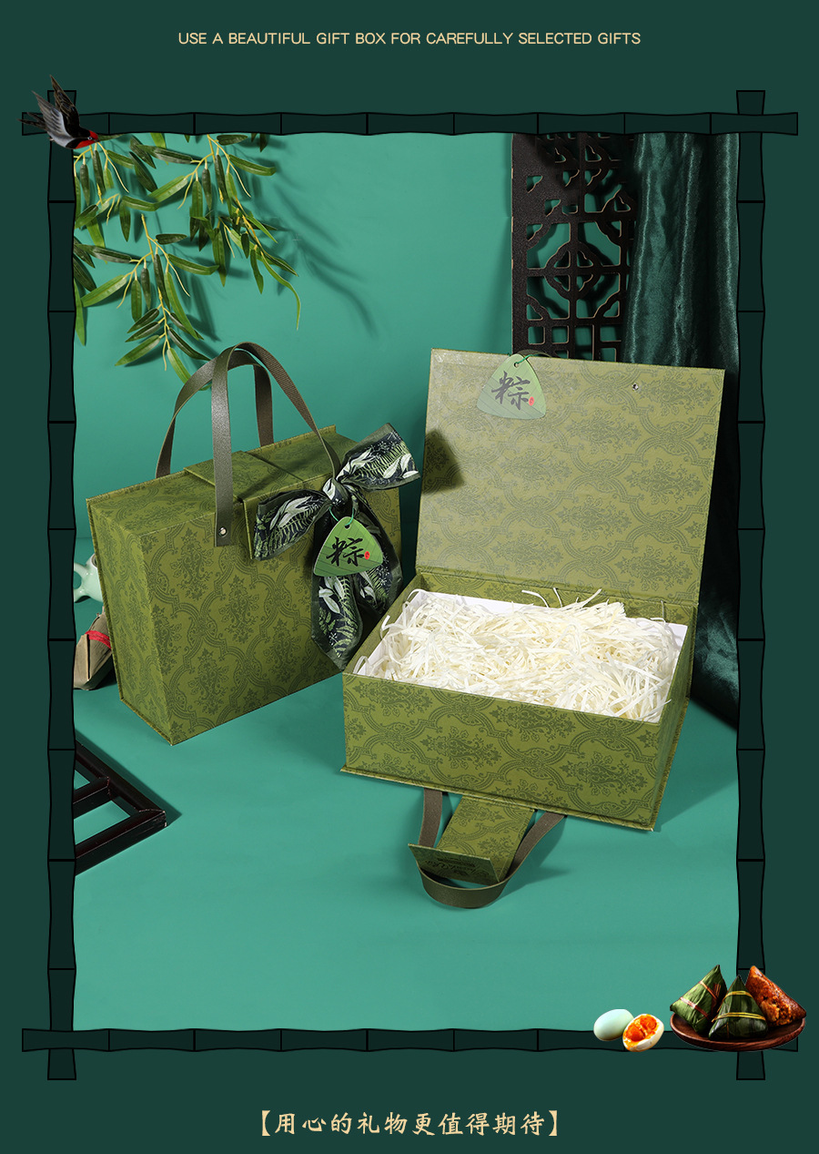 现货端午节礼品盒复古绿色粽子包装盒空盒创意商务手提咸鸭蛋礼盒