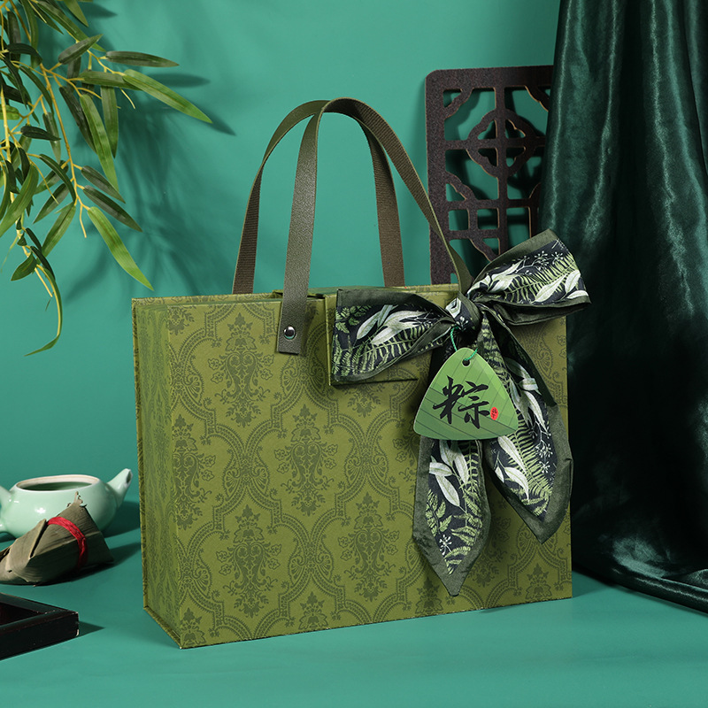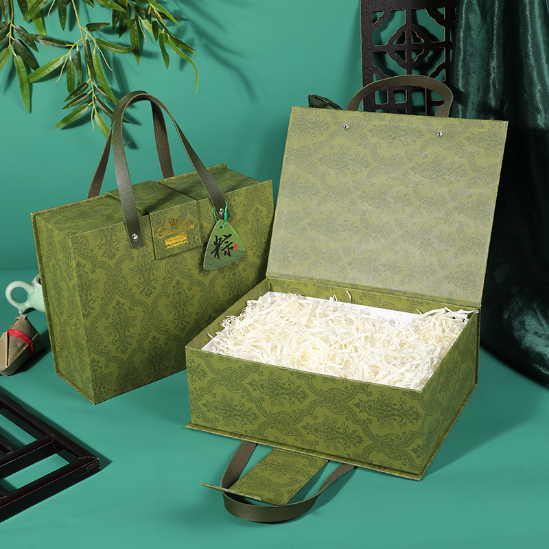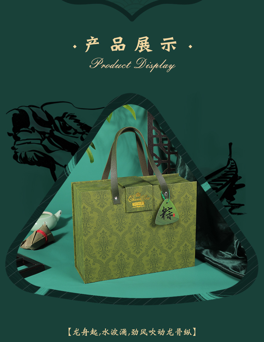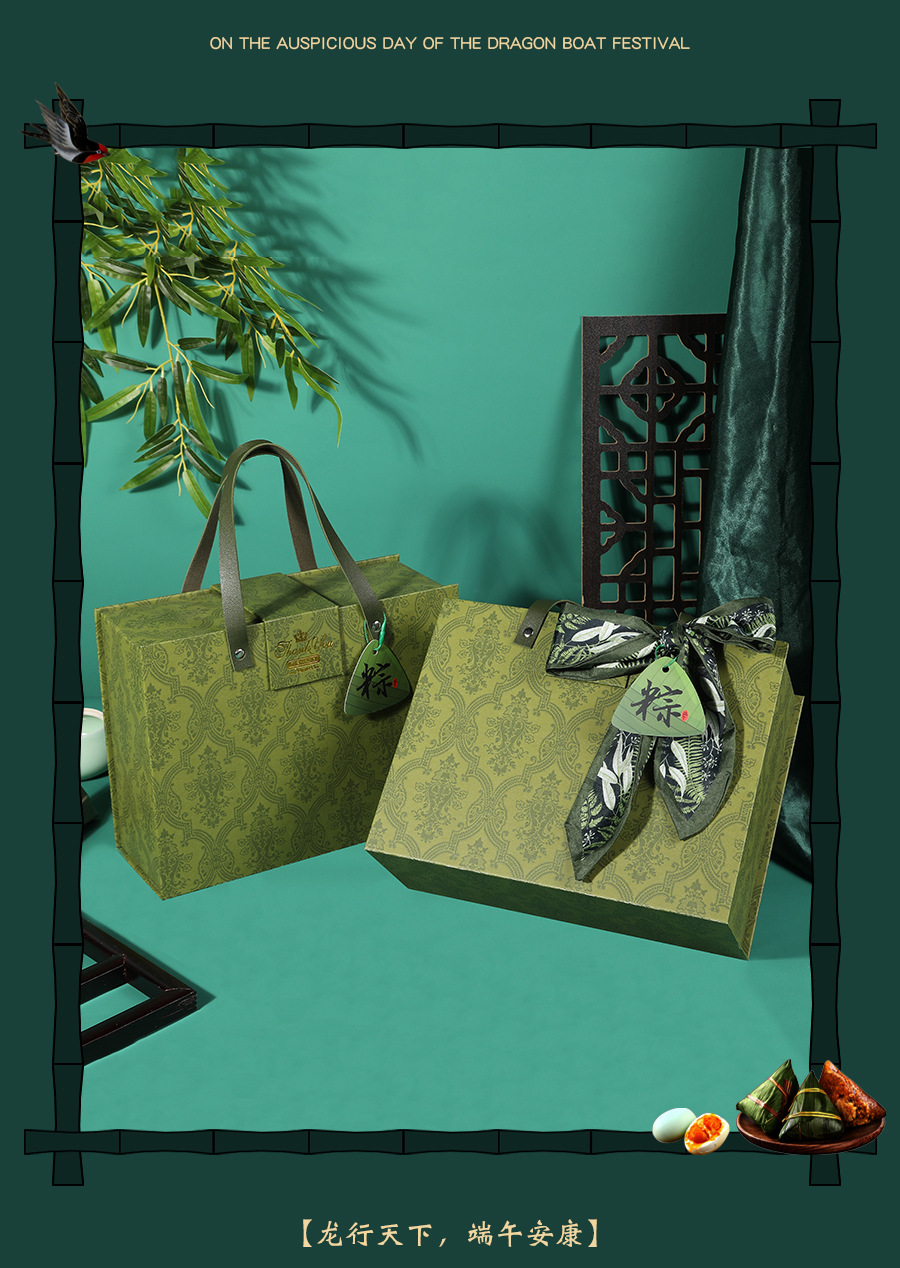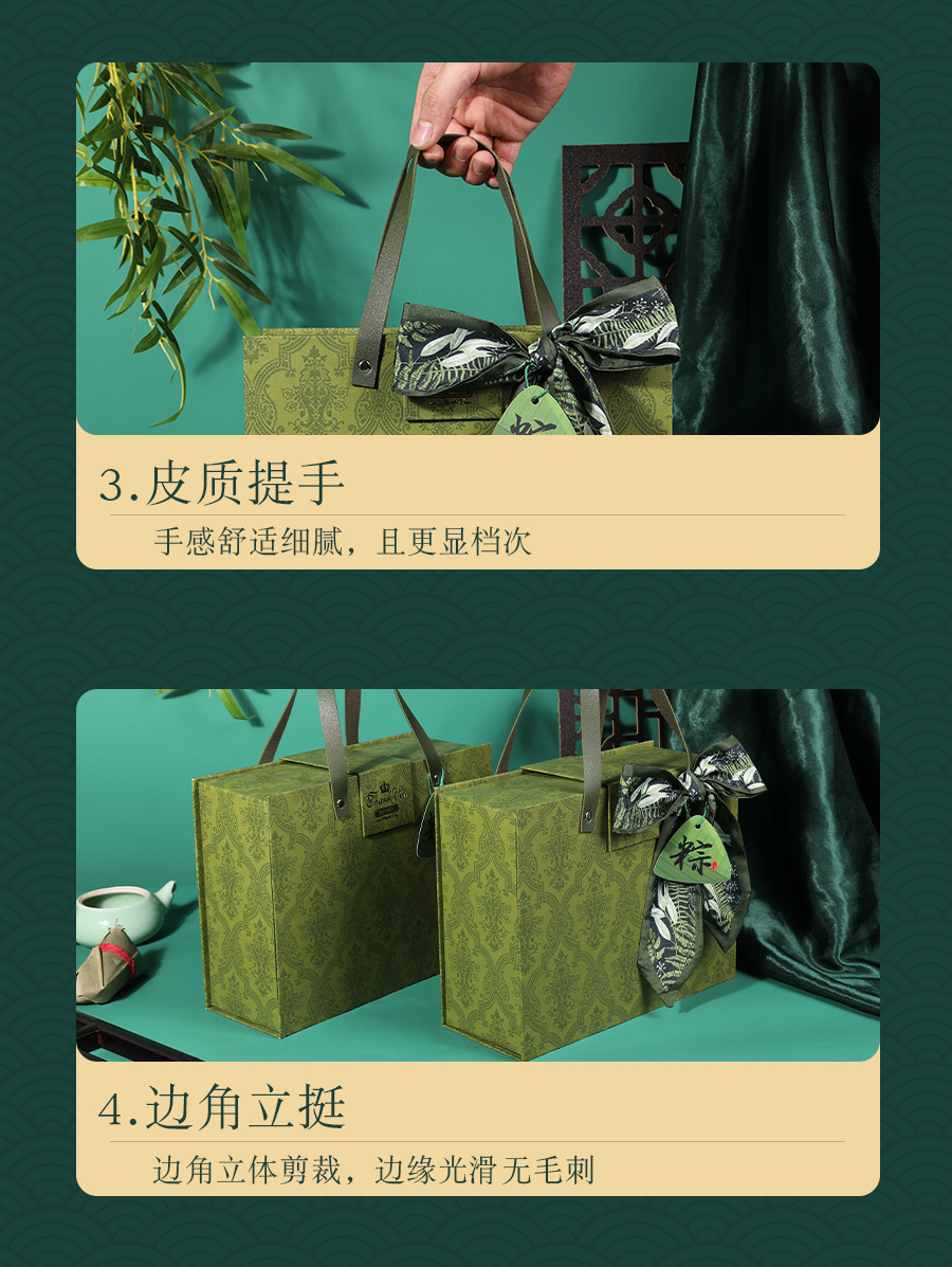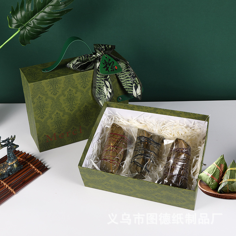 现货端午节礼品盒复古绿色粽子包装盒空盒创意商务手提咸鸭蛋礼盒