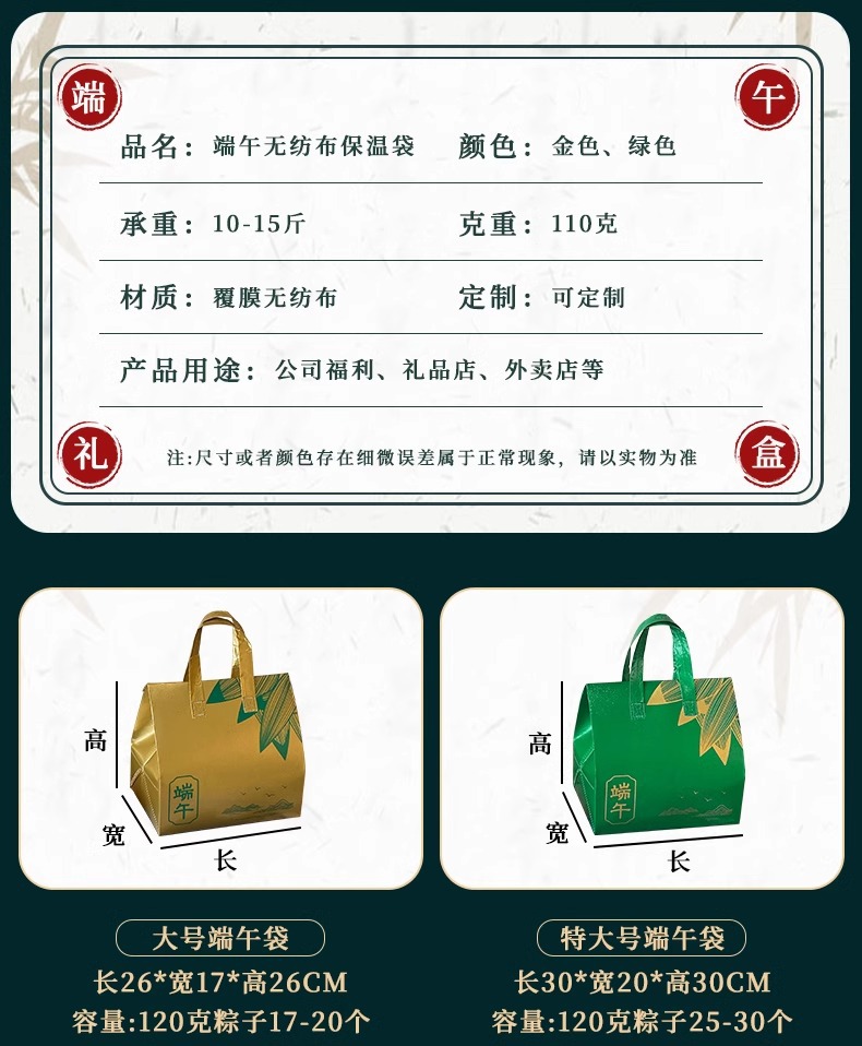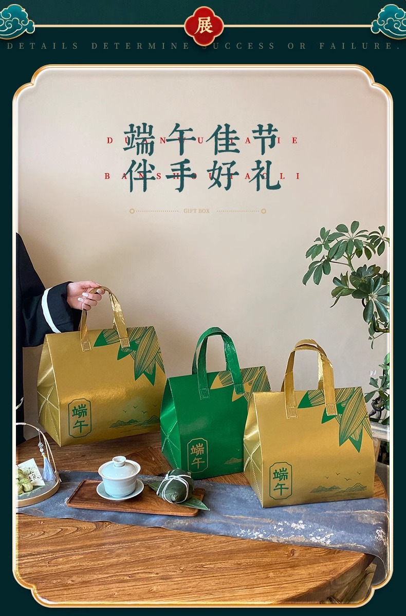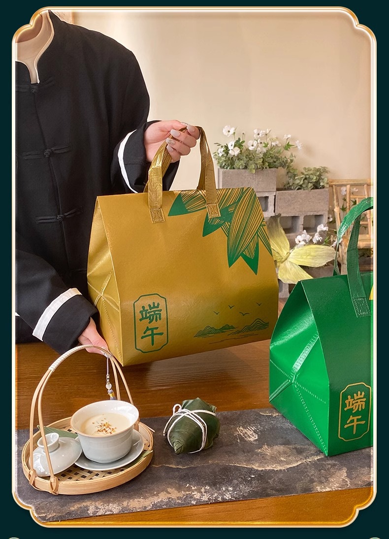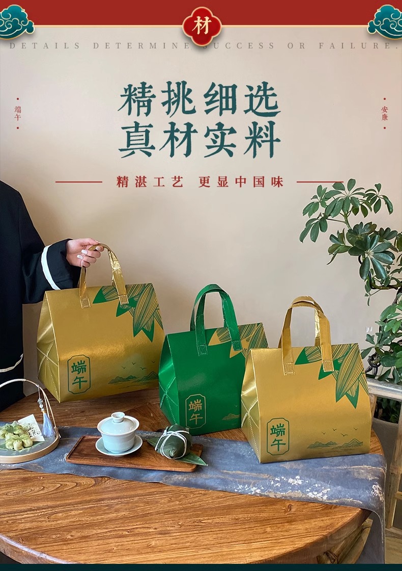 现货端午节粽子高档礼盒礼品包装盒覆膜铝箔保温手提袋子可印logo
