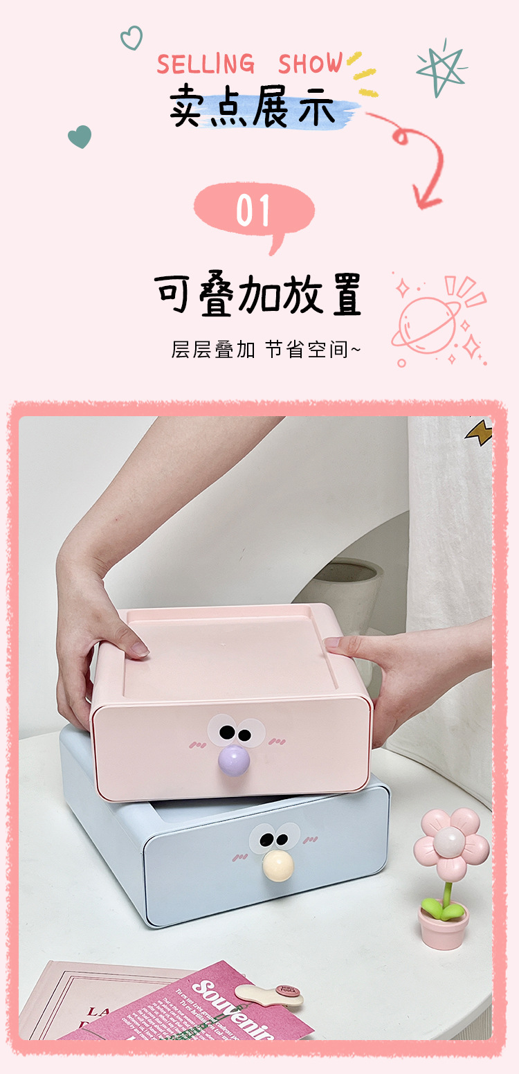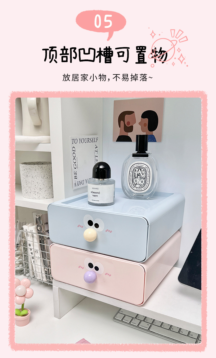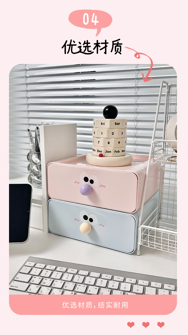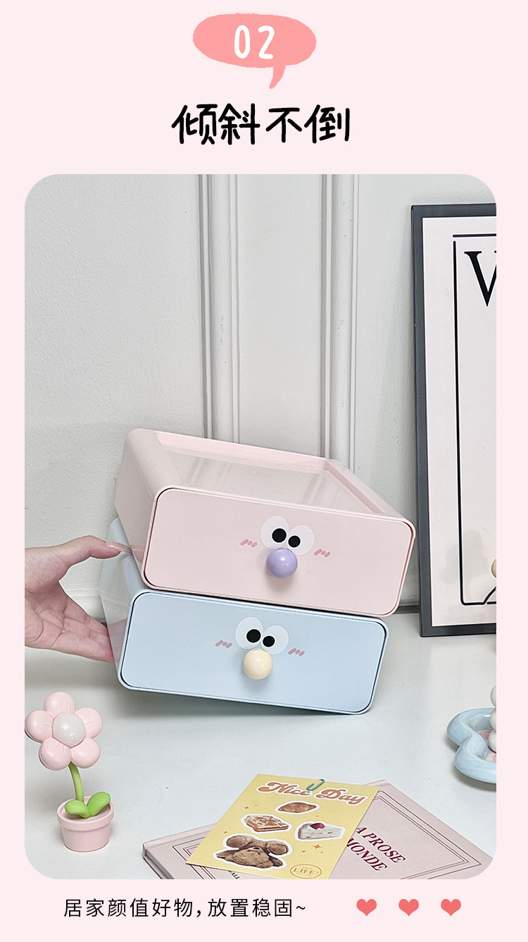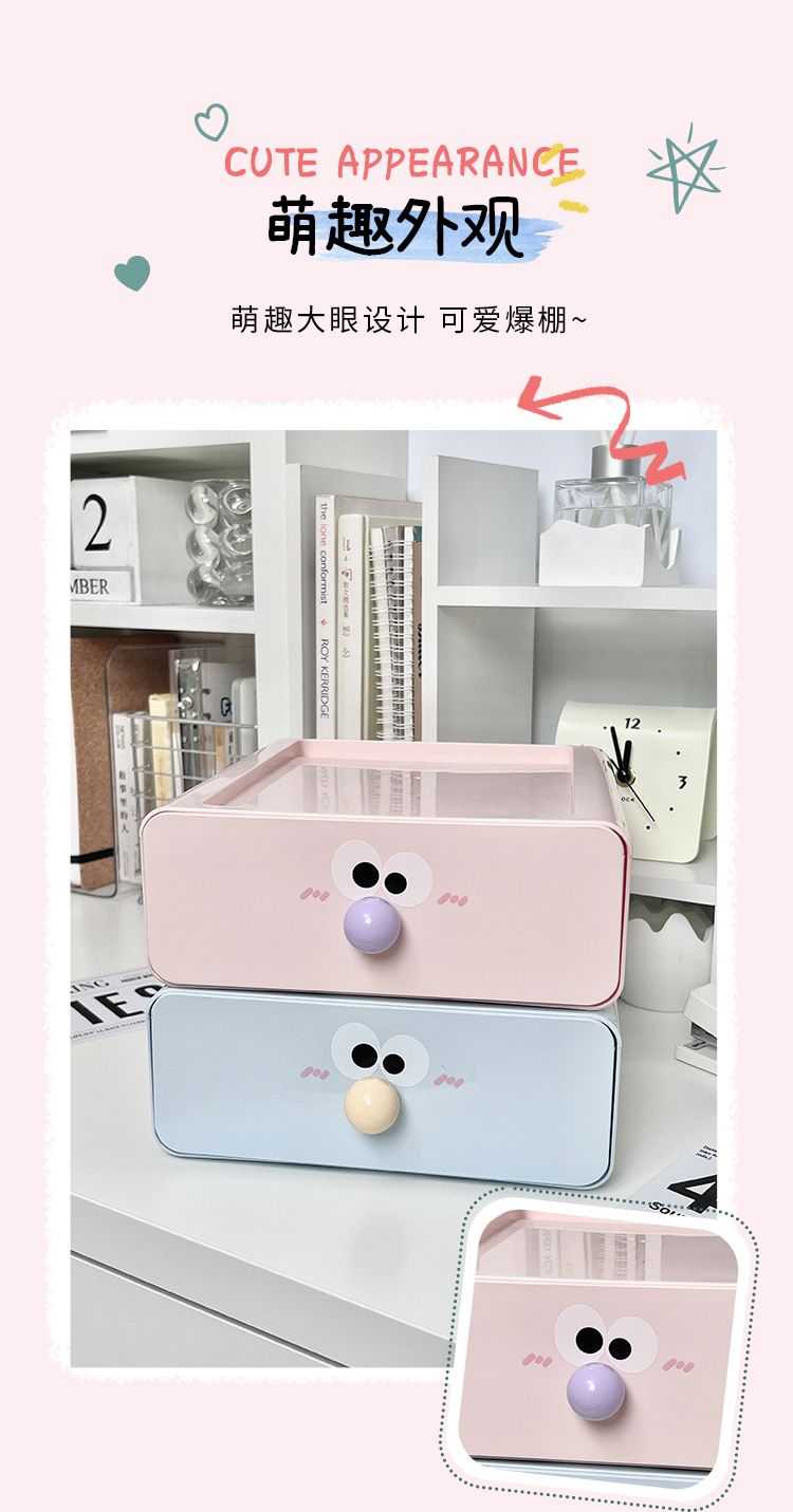 大眼仔化妆品收纳盒 学生宿舍家用桌面抽屉收纳柜 书桌文具收纳盒