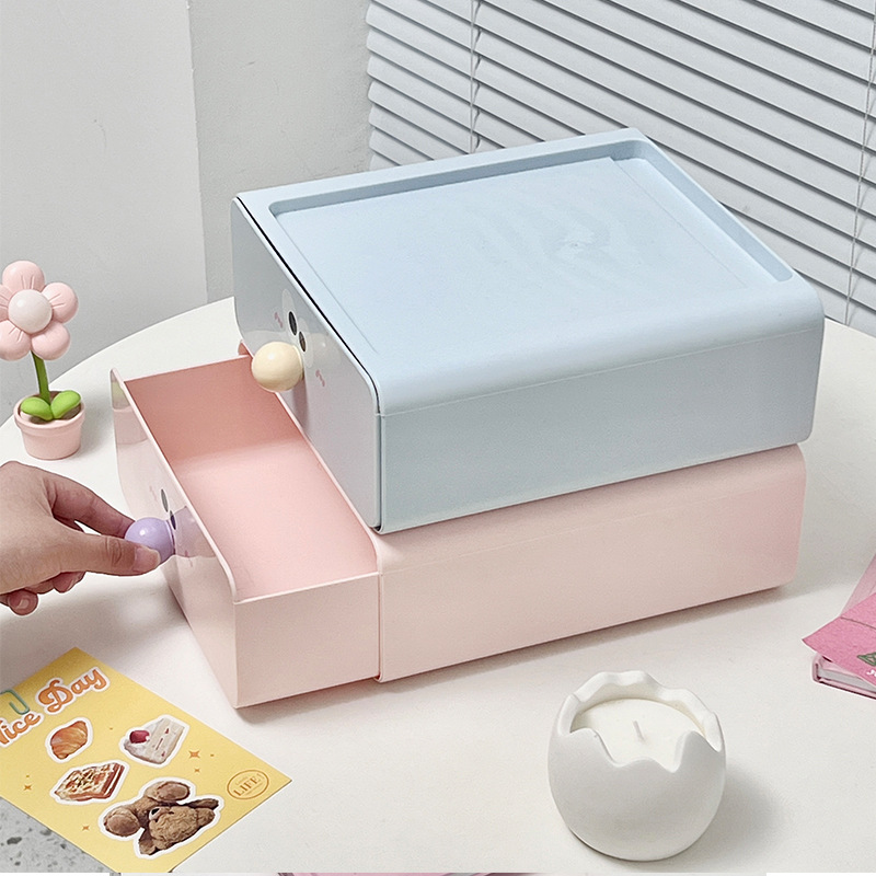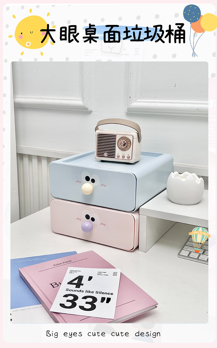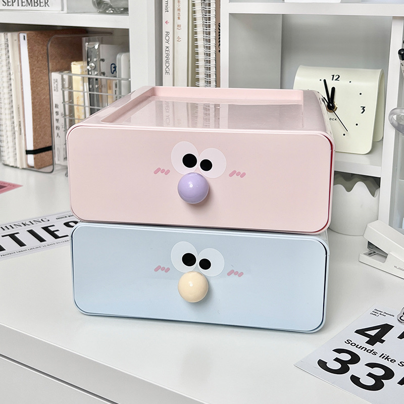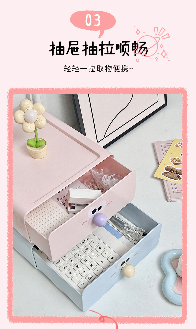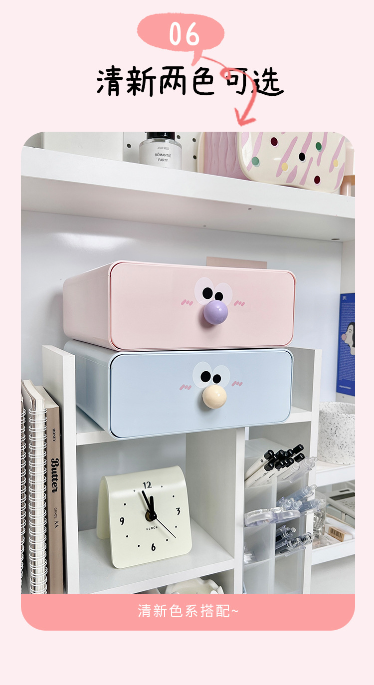 大眼仔化妆品收纳盒 学生宿舍家用桌面抽屉收纳柜 书桌文具收纳盒