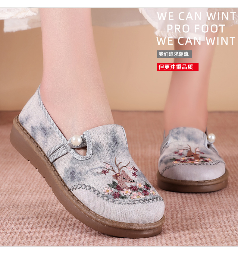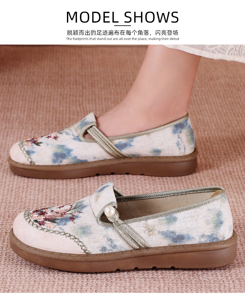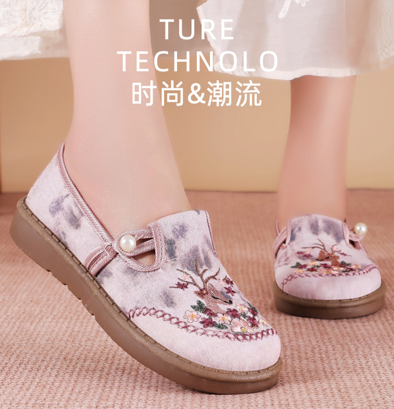 鞋子女百搭新款夏季民族风绣花鞋老北京布鞋女汉服鞋妈妈休闲单鞋