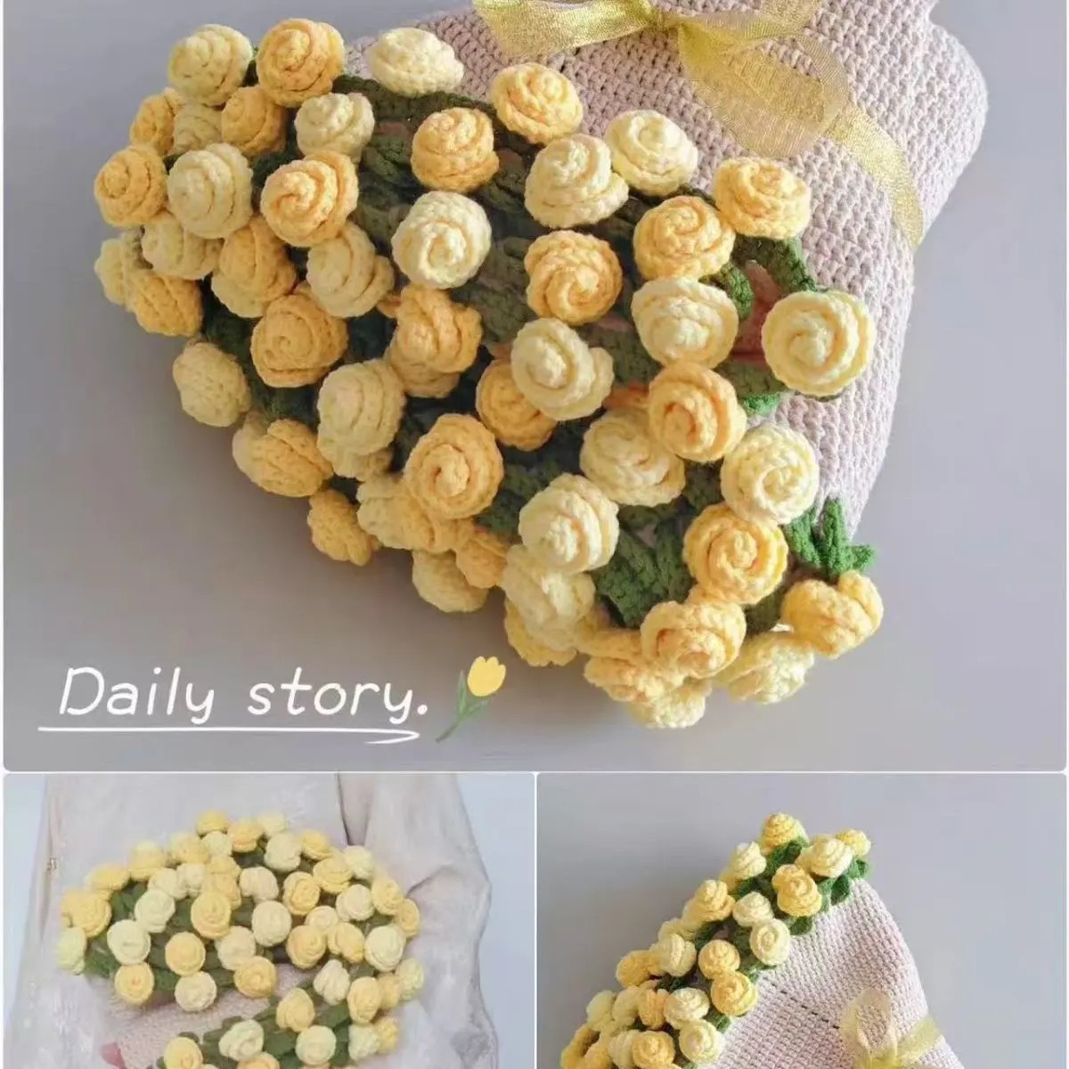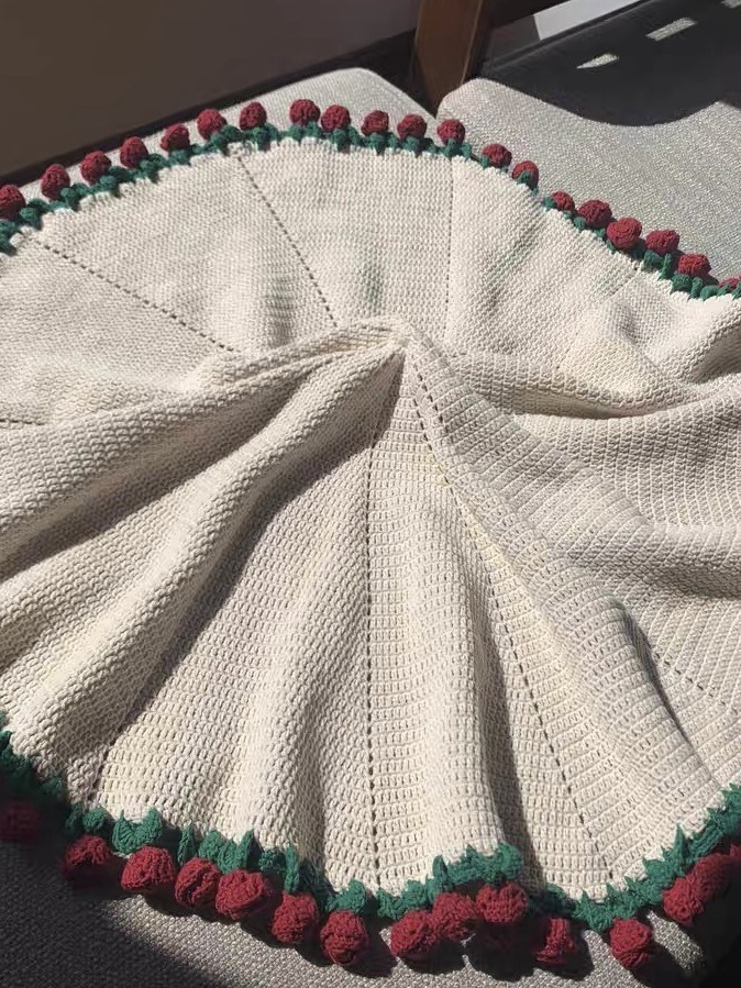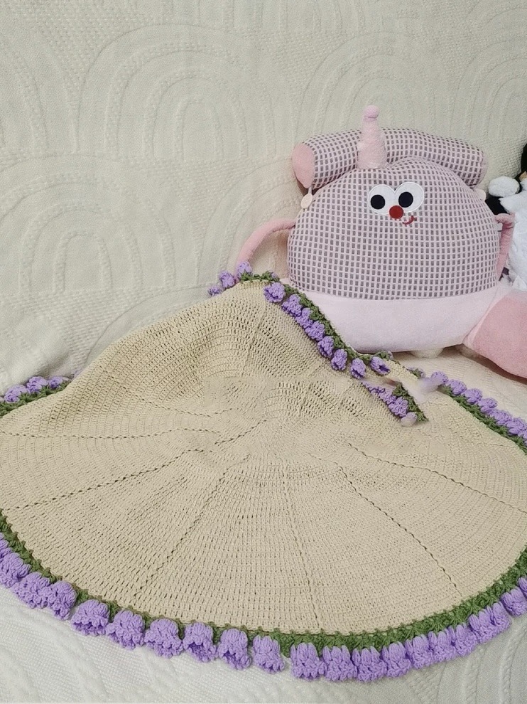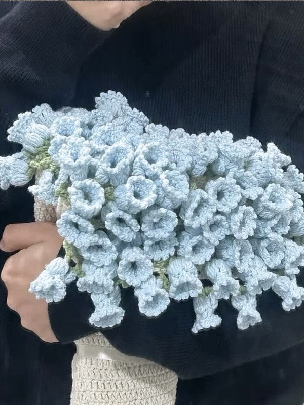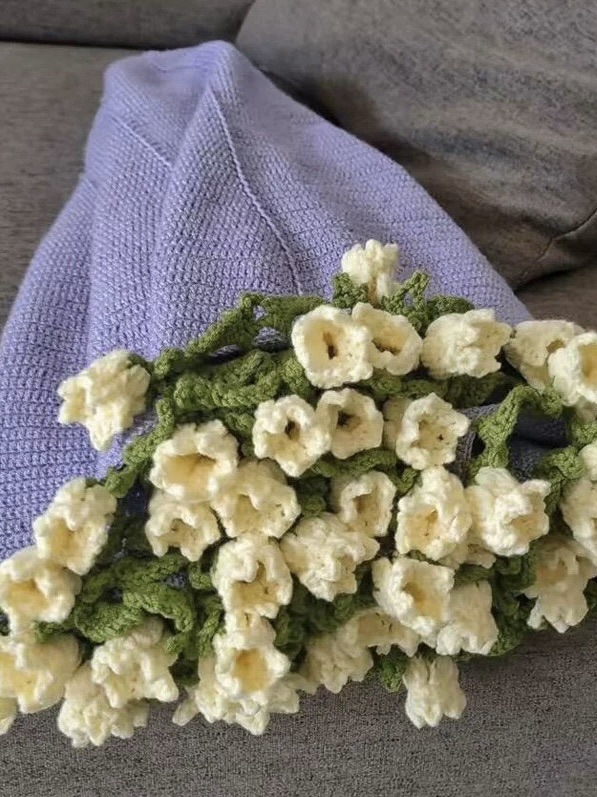 玫瑰花束毯子手工编织diy材料包毛线团钩织花朵毛毯铃兰花毯成品