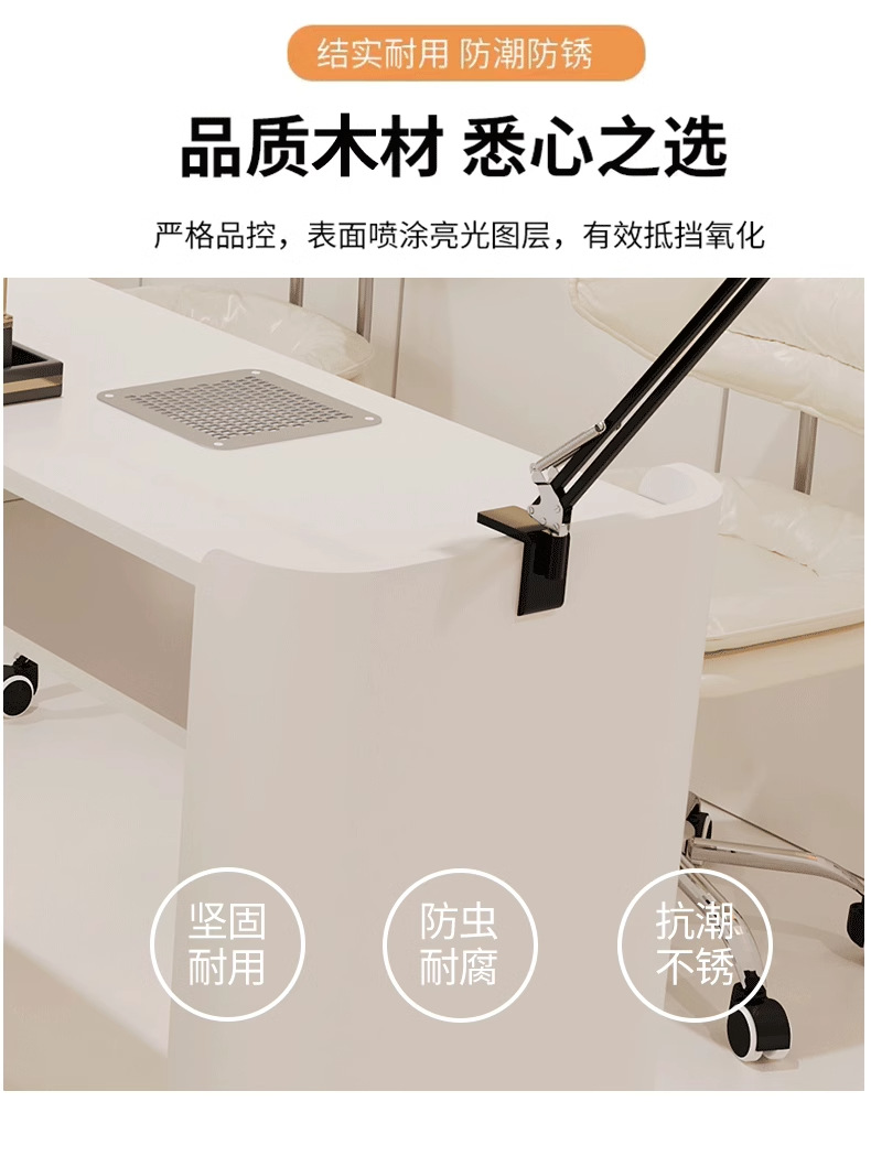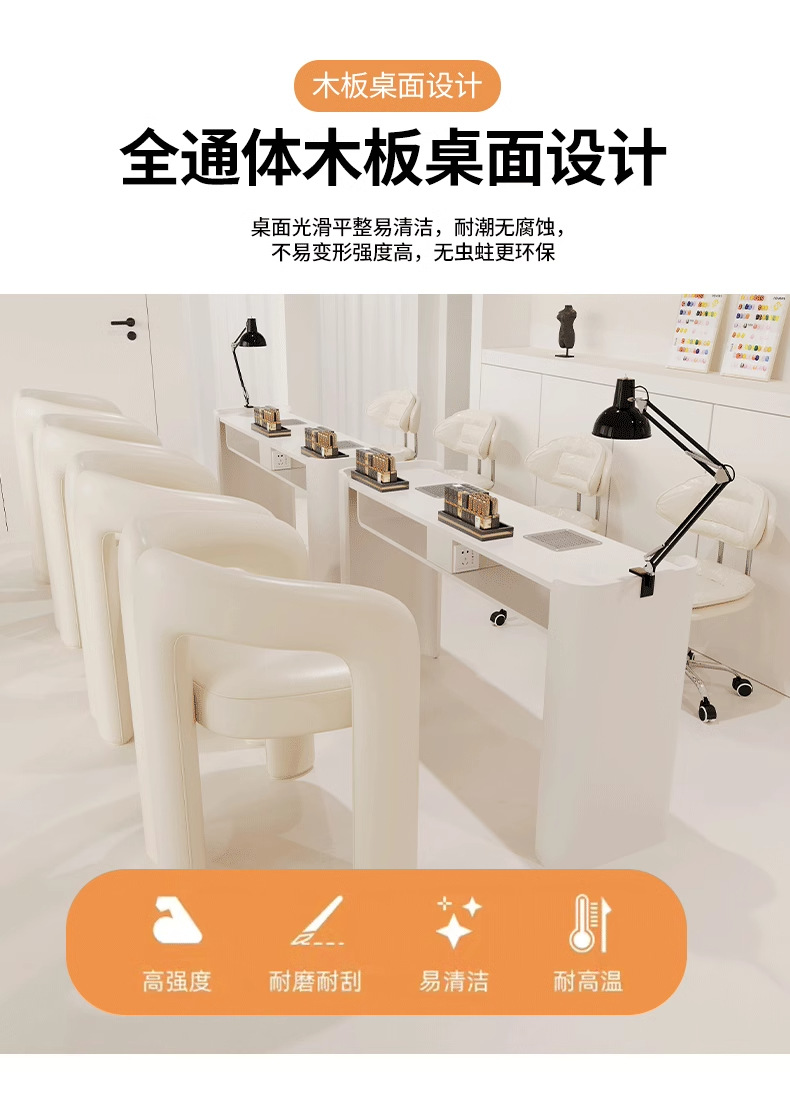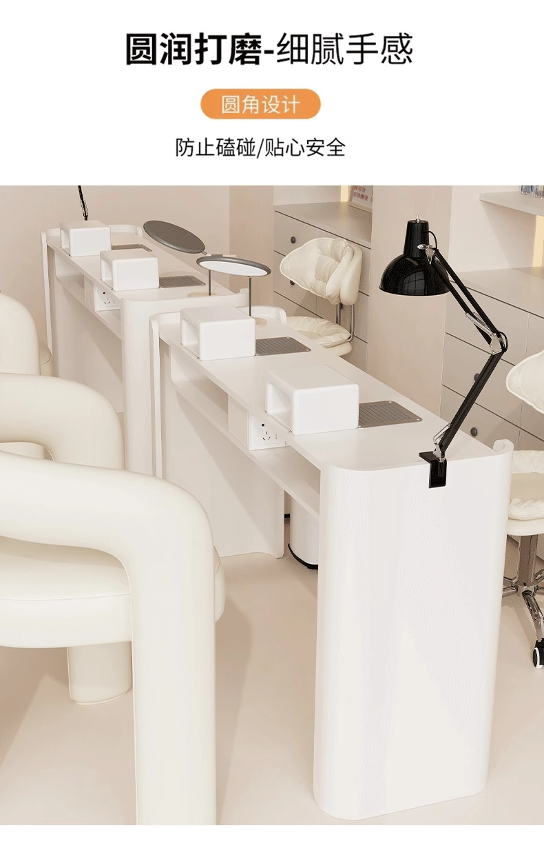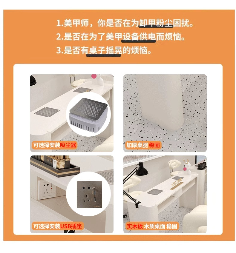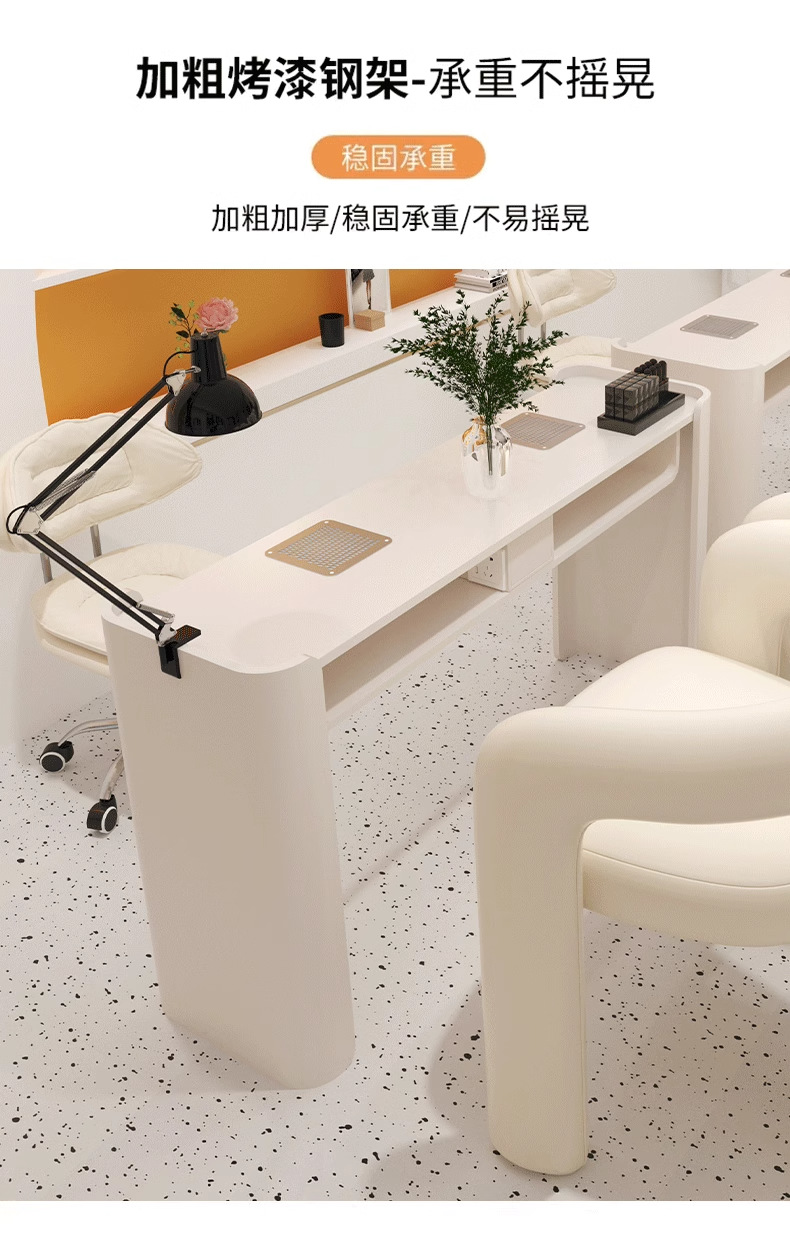 美甲店专用桌奶油风美甲桌椅套装带吸尘器插座美甲桌子两人不漏灰