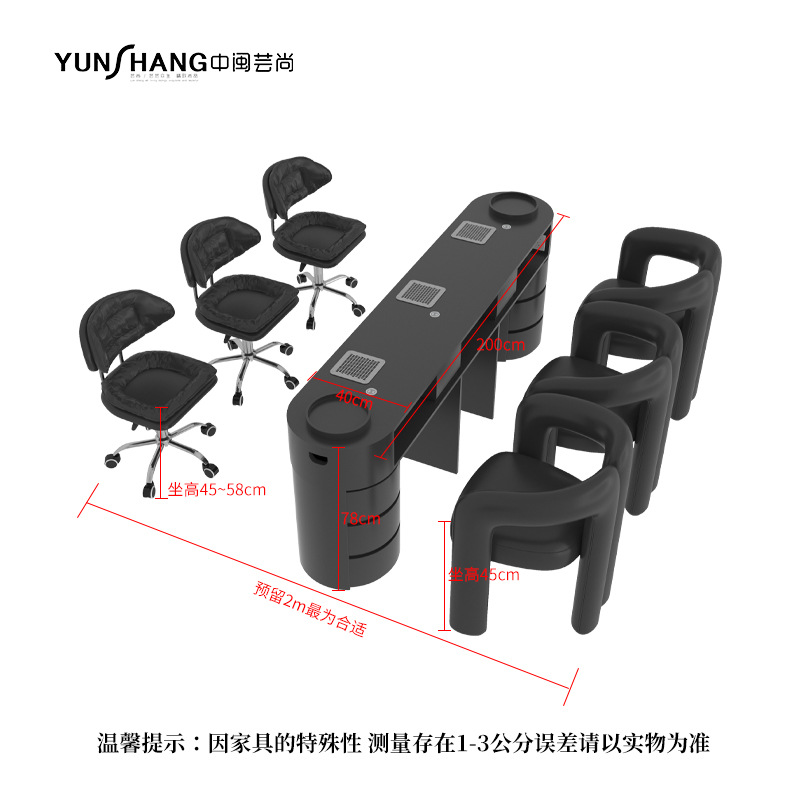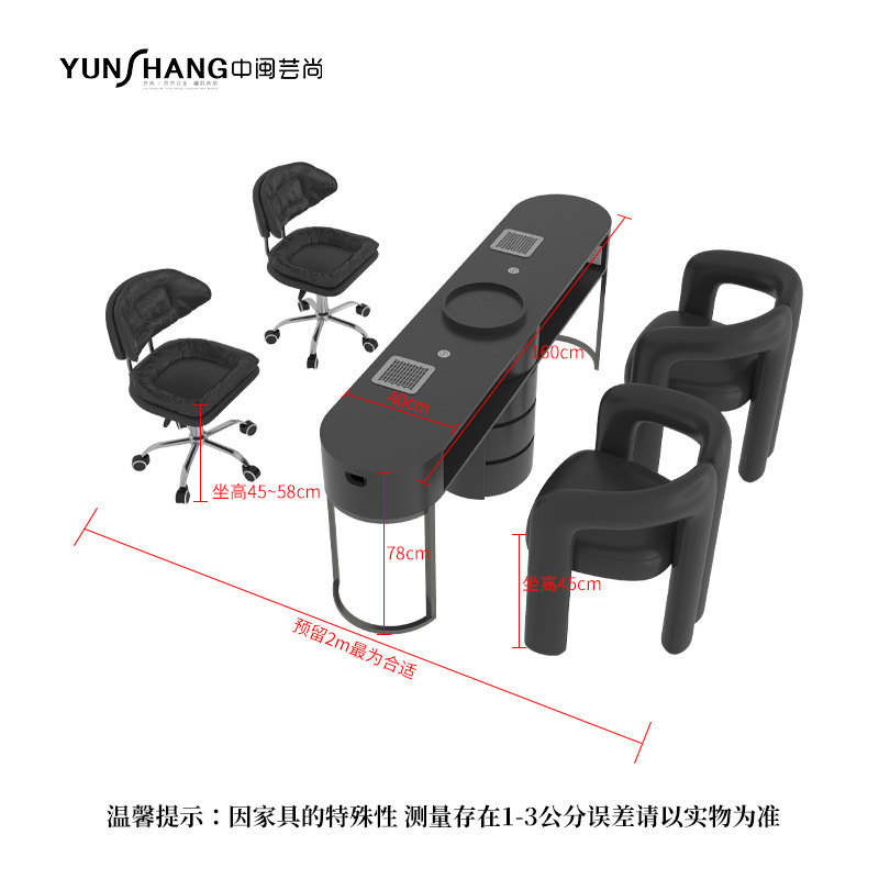 黑色美甲桌双人耐脏带吸尘器美甲桌椅套装带插座单人全套美甲桌子