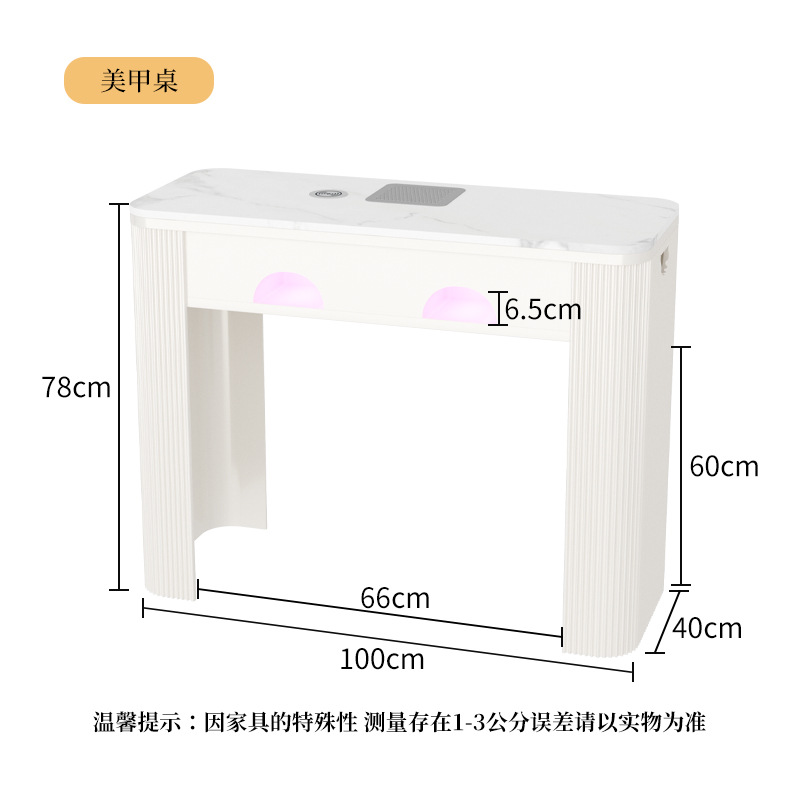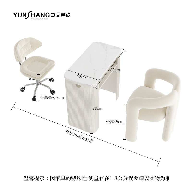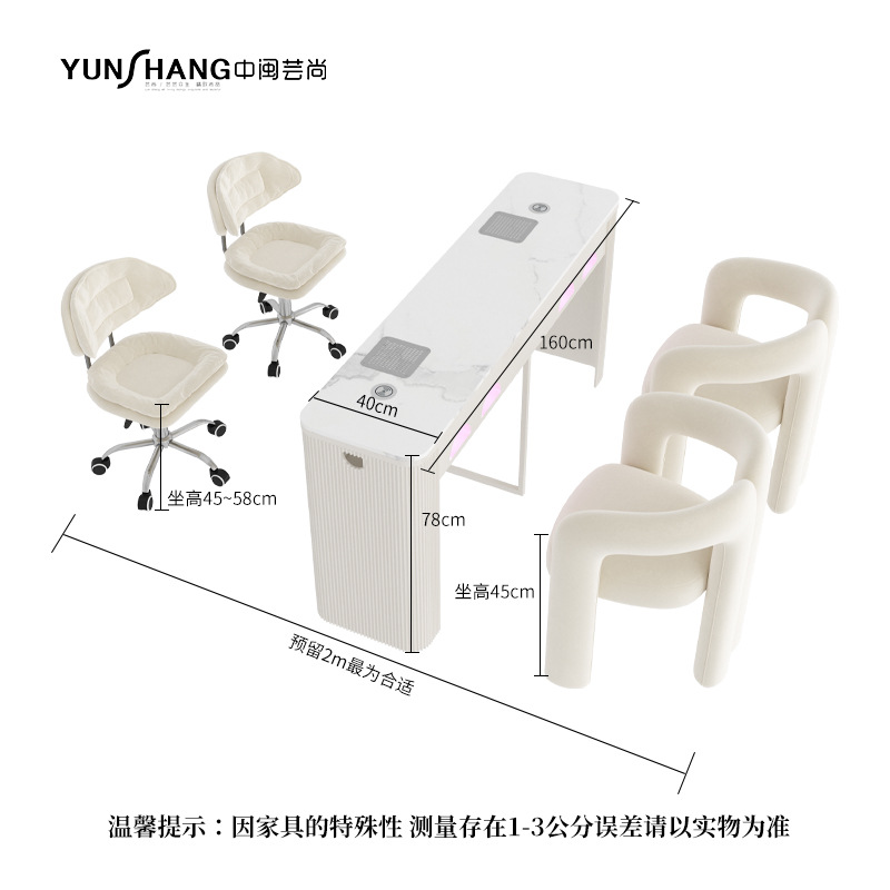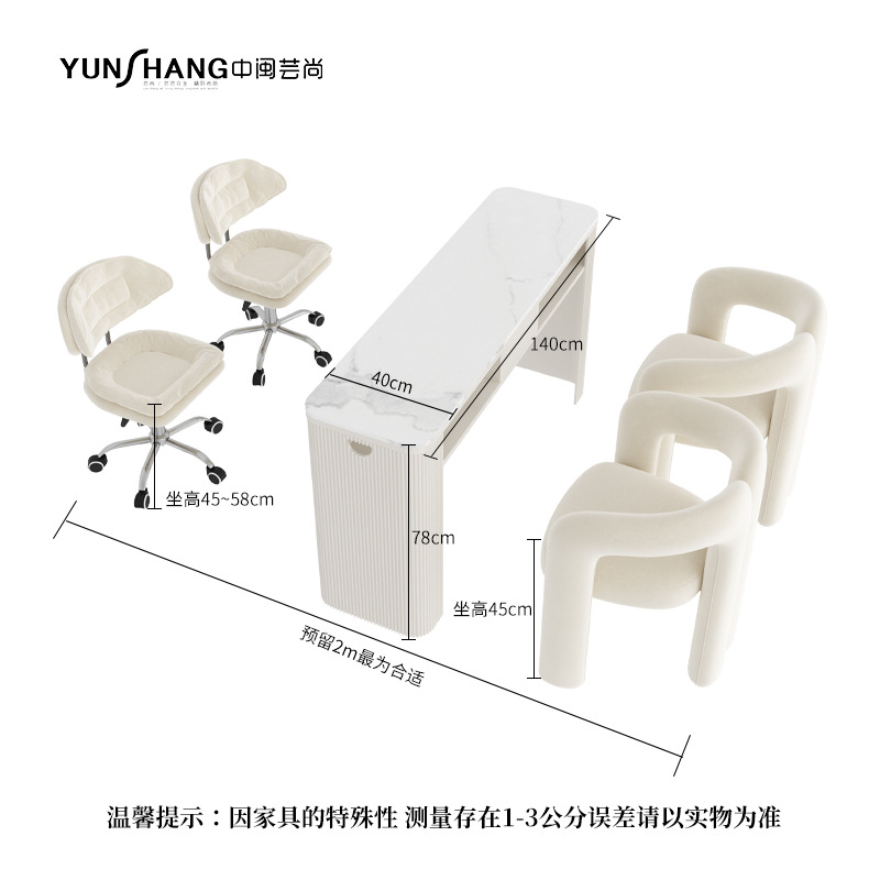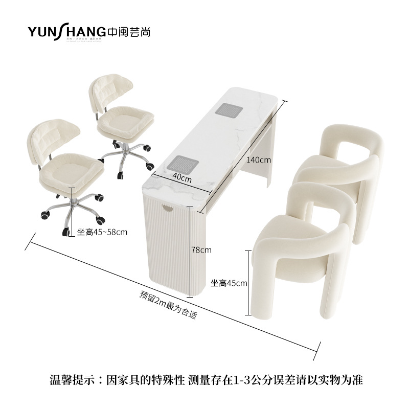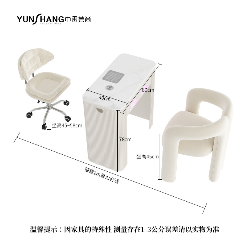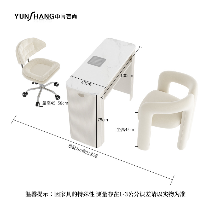 中闽芸尚奶油风美甲桌椅套装带吸尘器插座美甲台网红大理石修甲桌