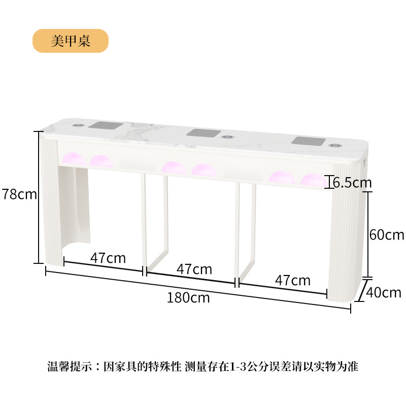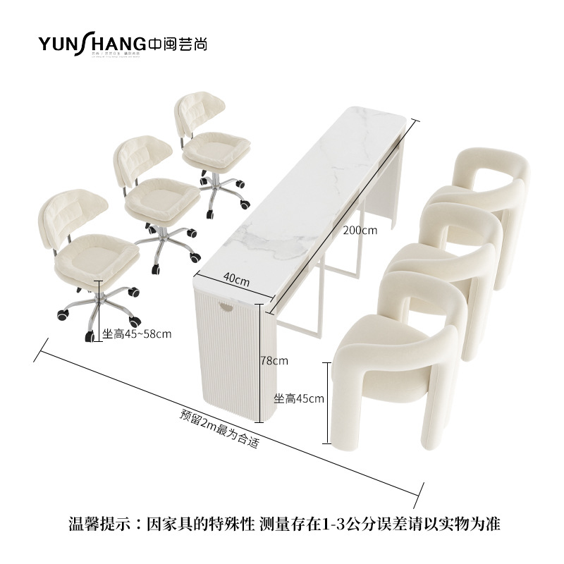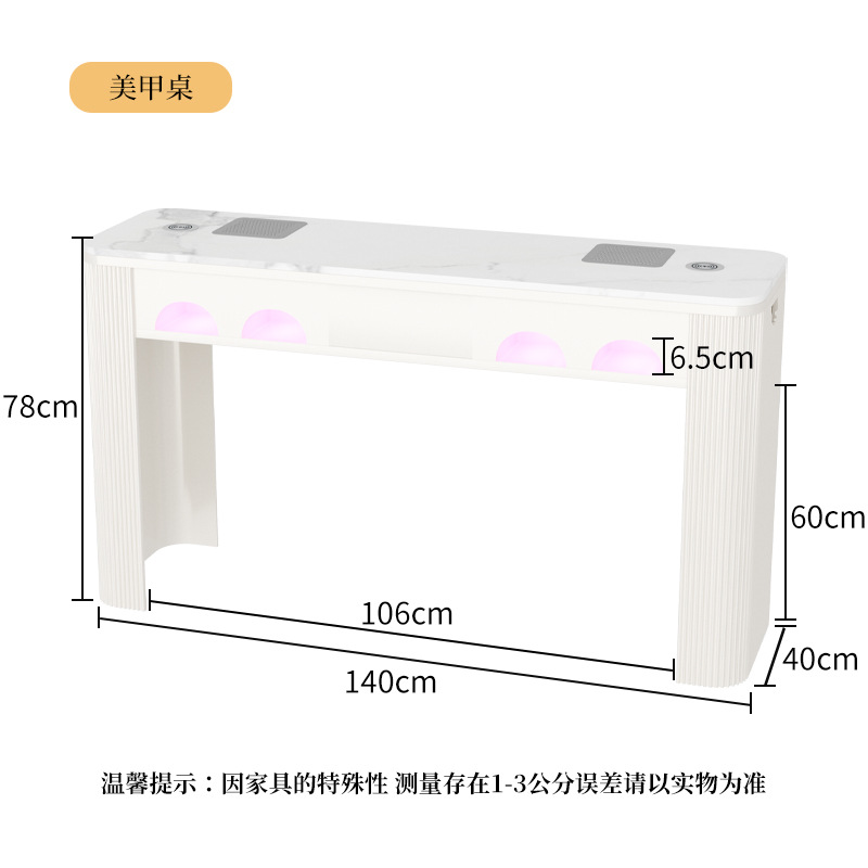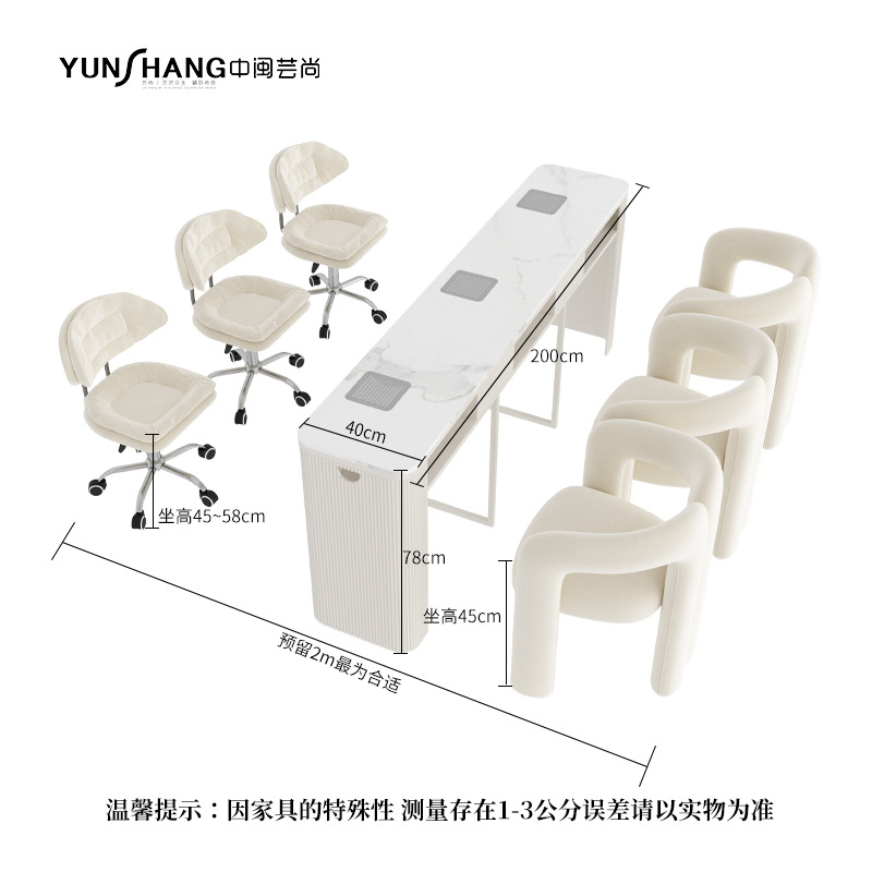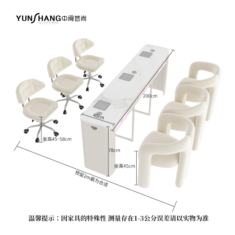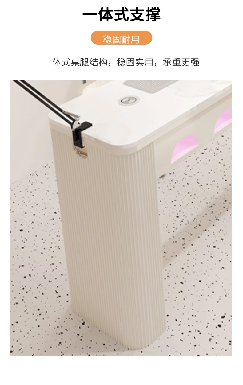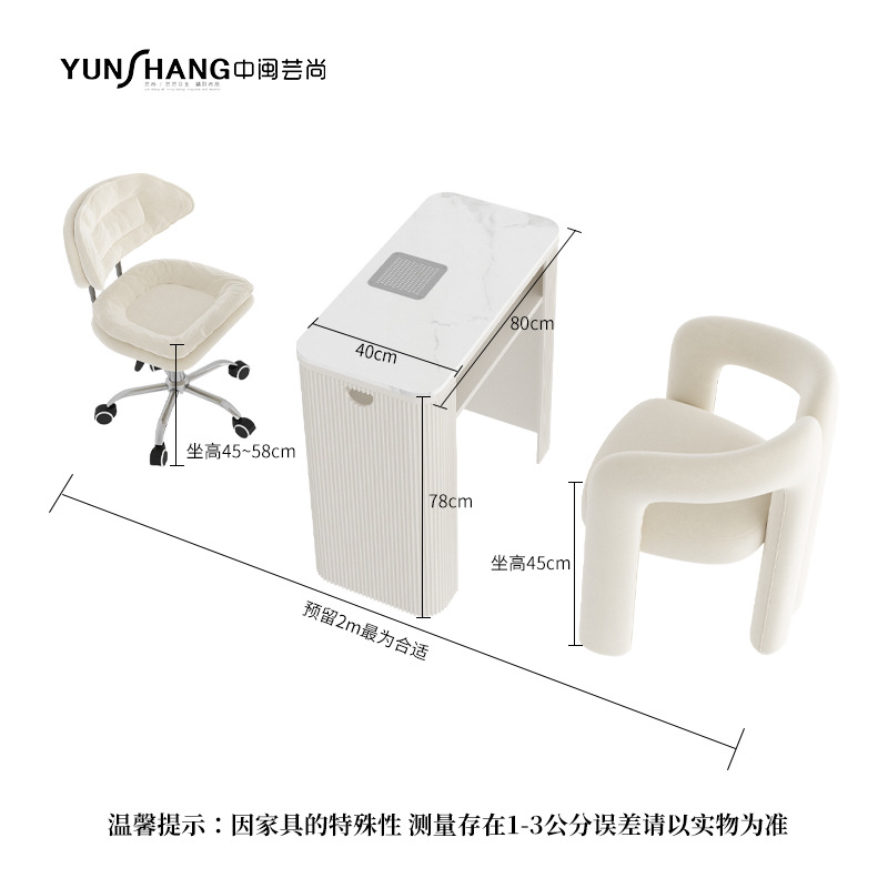 中闽芸尚奶油风美甲桌椅套装带吸尘器插座美甲台网红大理石修甲桌