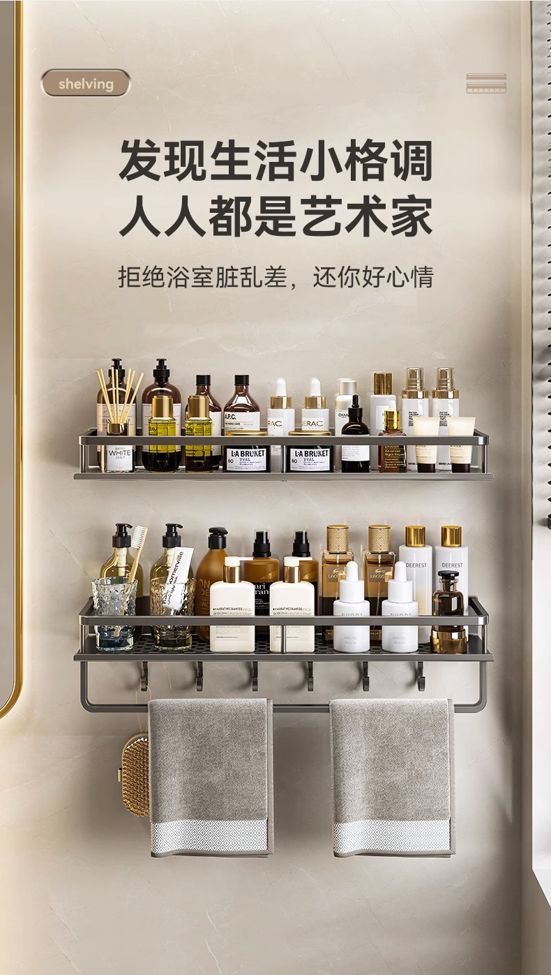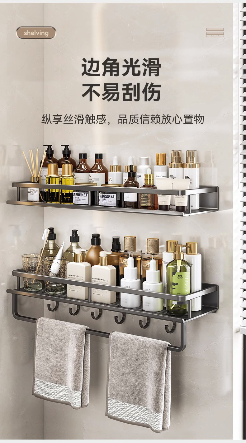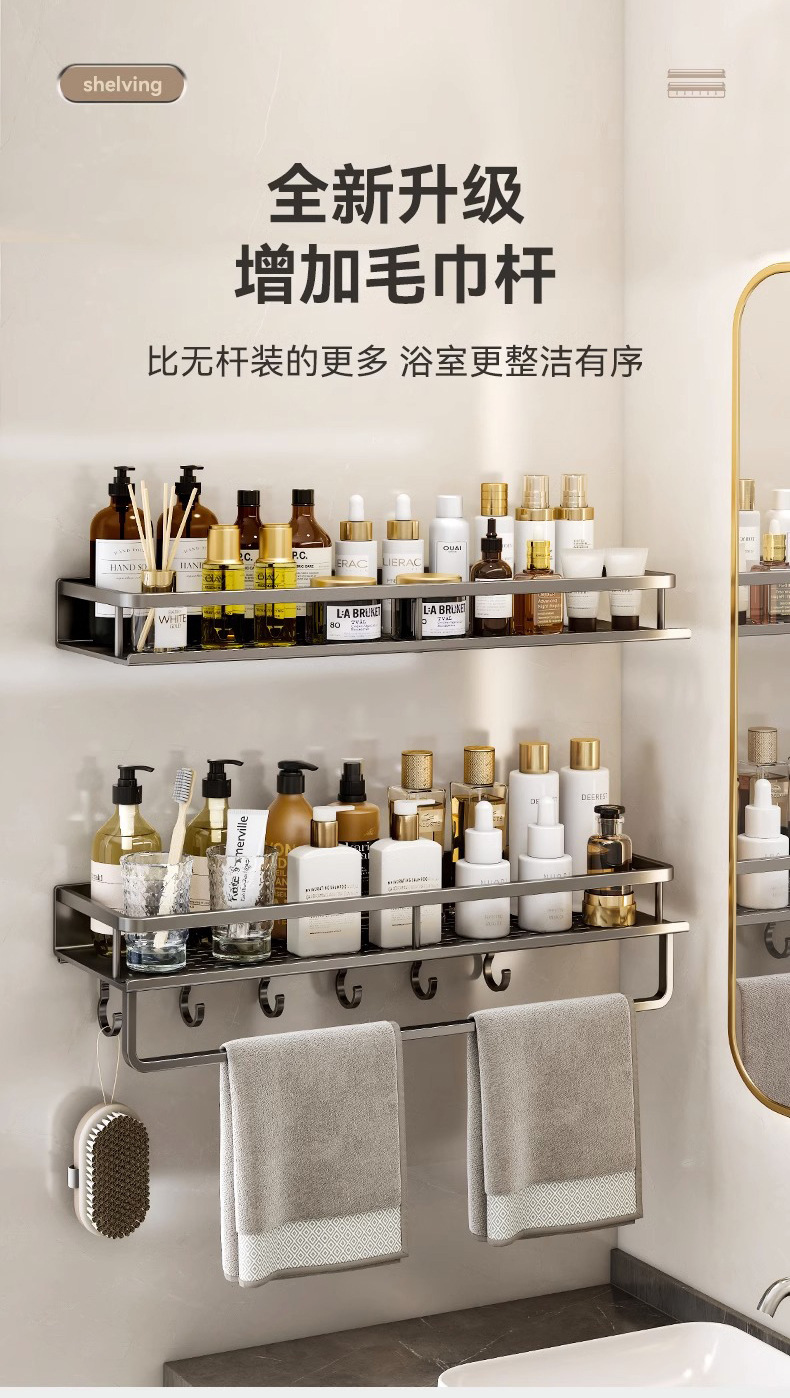 免打孔卫生间置物架壁挂式洗手间厕所浴室收纳架子太空铝厂家直销