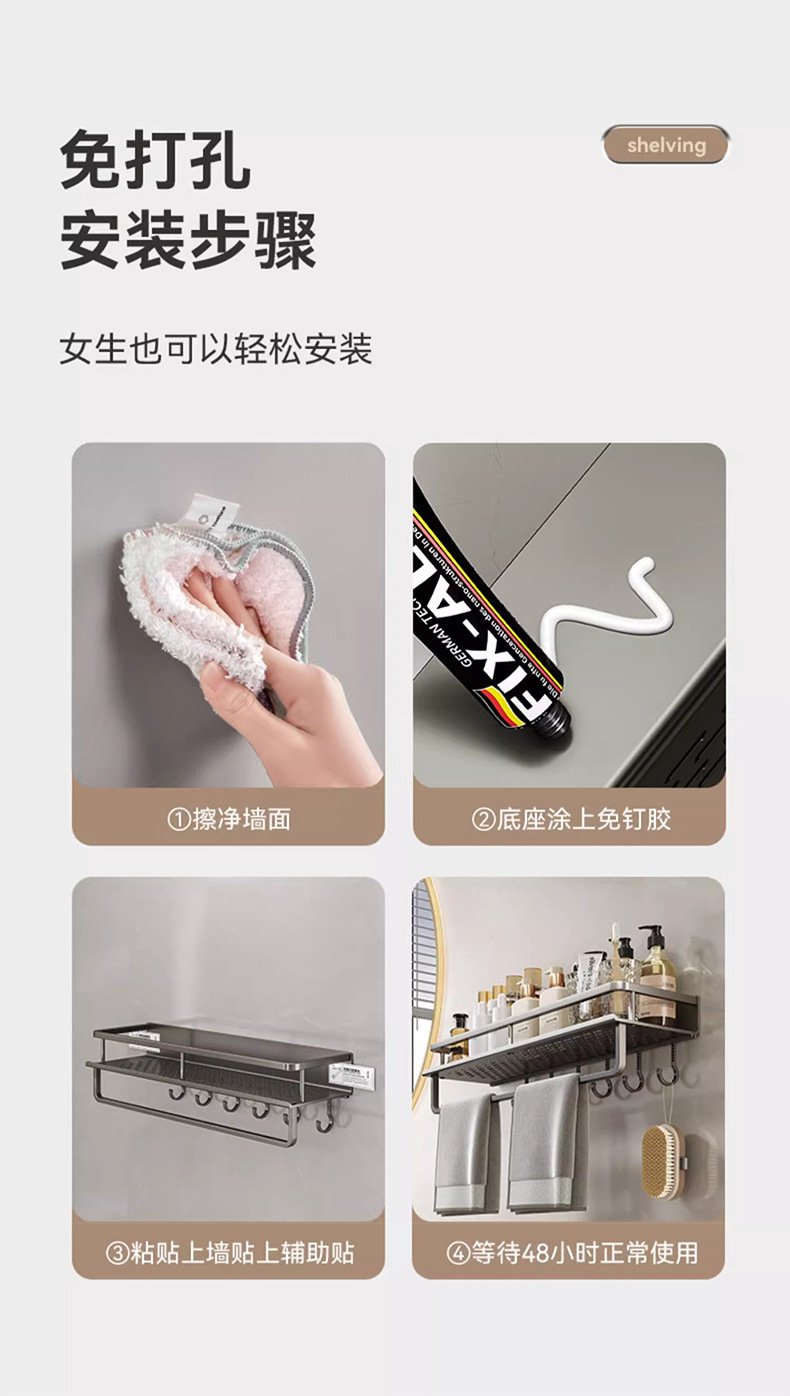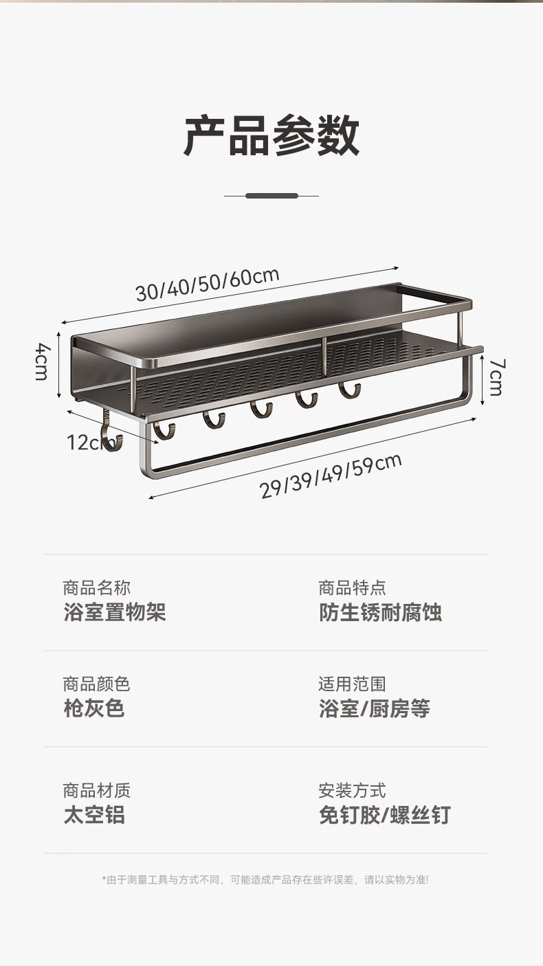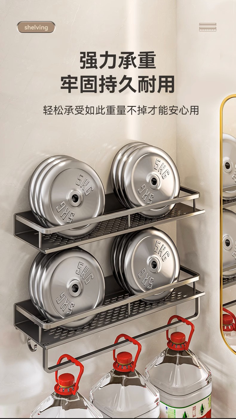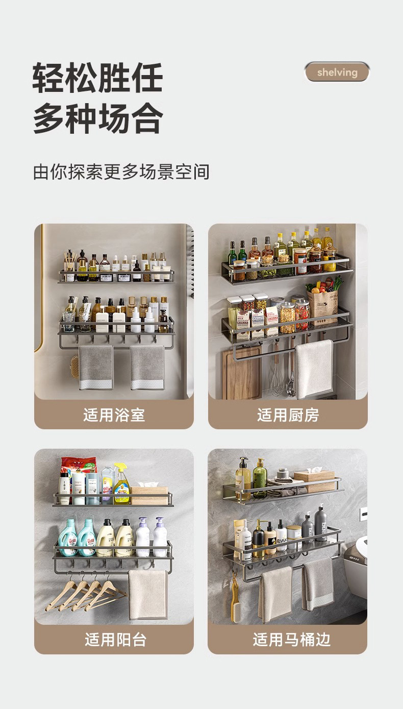 免打孔卫生间置物架壁挂式洗手间厕所浴室收纳架子太空铝厂家直销