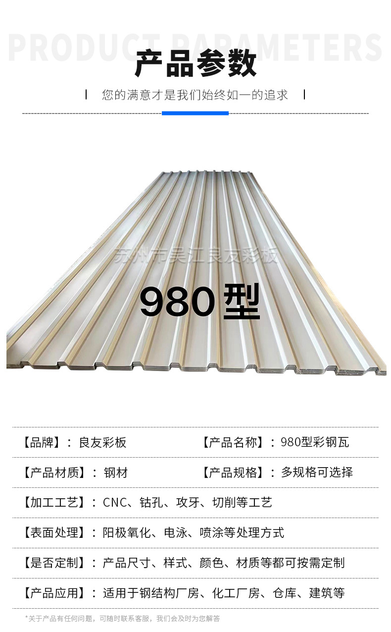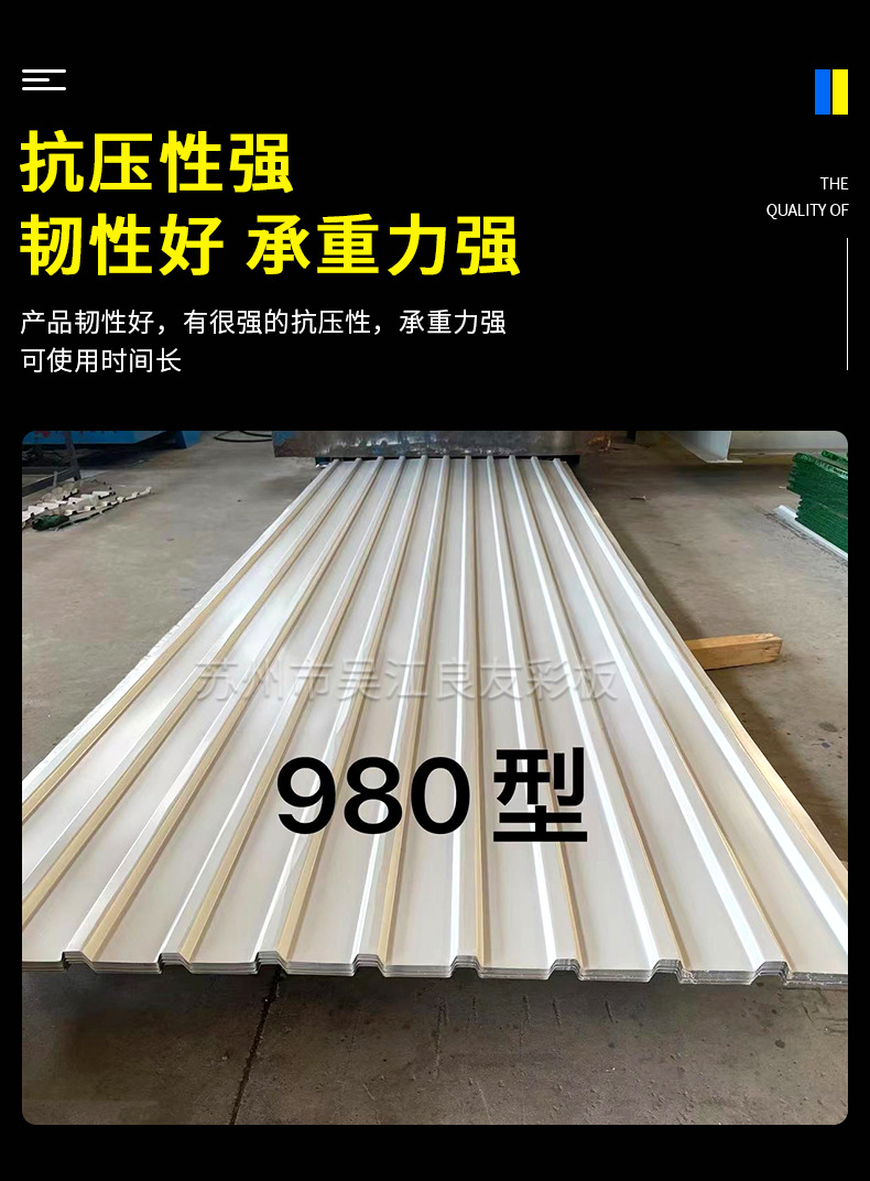 980型彩钢瓦批发彩钢板房屋顶瓦 活动板房屋顶隔热镀锌铁皮瓦围挡