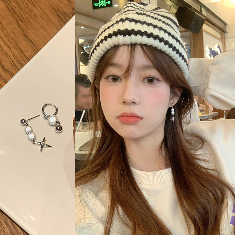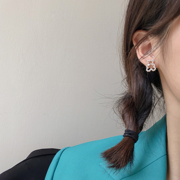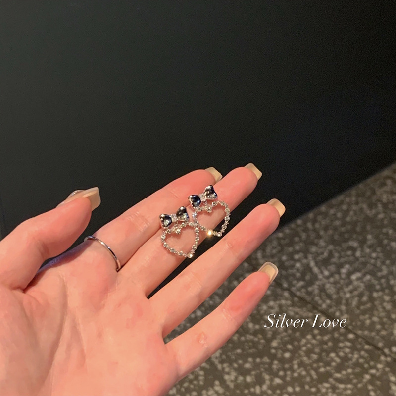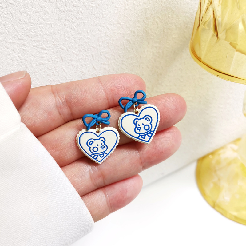 可爱甜美兔子不对称耳环蓝色蝴蝶结耳钉女ins2024新款日 韩潮耳饰