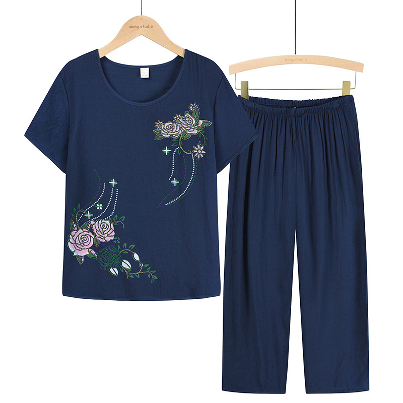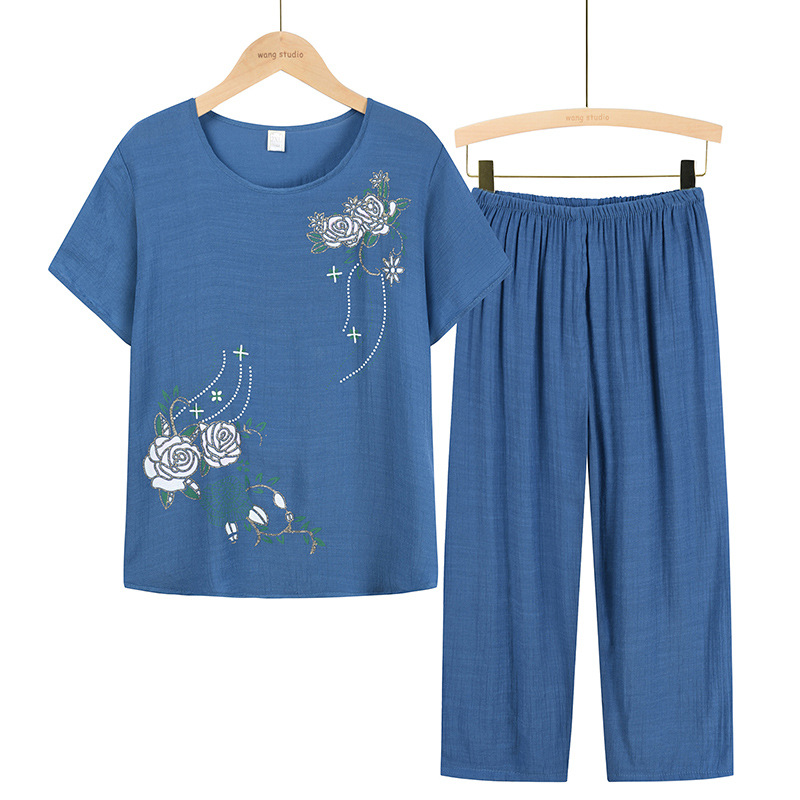 老年人夏装女短袖上衣妈妈两件套60岁老人衣服奶奶装休闲睡衣套装