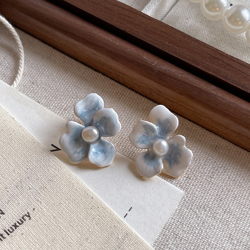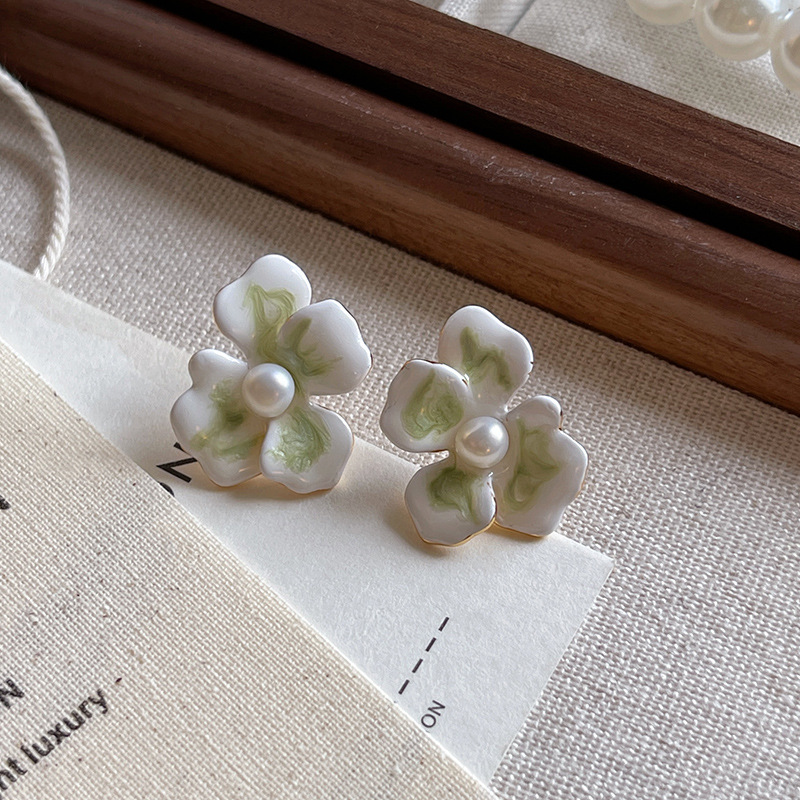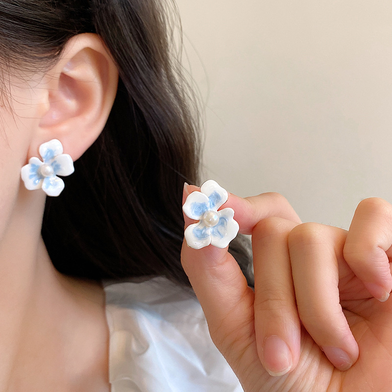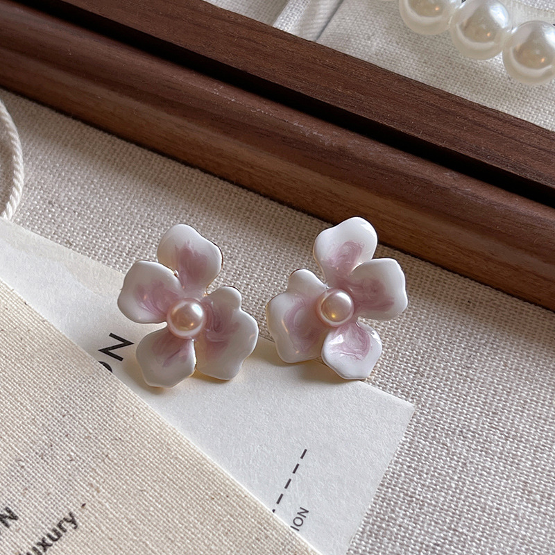 饰品小众高级感真金电镀耳饰S925纯银针温柔气质奶油白花朵耳环女