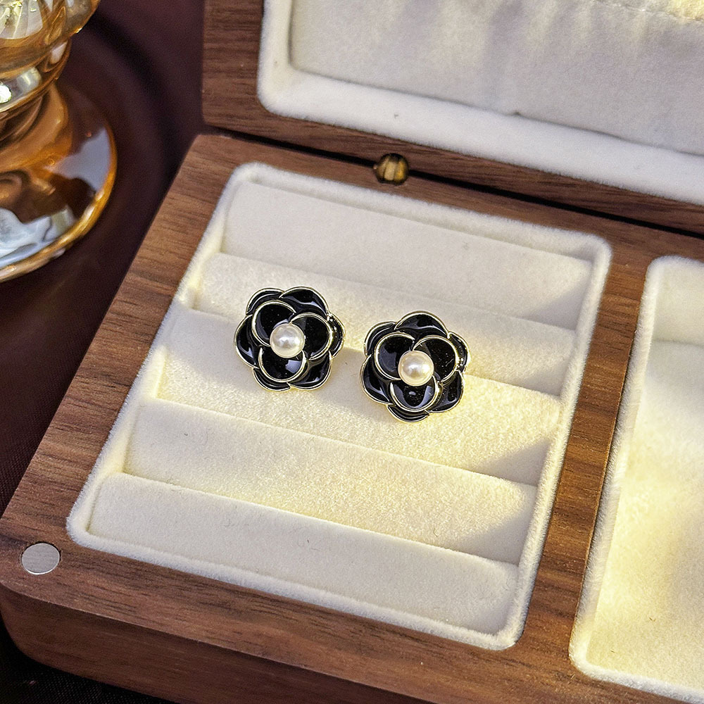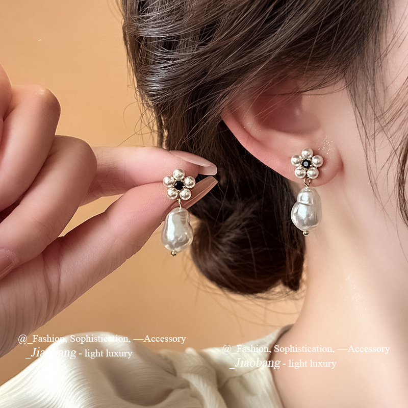 银针小香风花朵珍珠耳钉轻奢名媛气质耳环复古优雅时尚感耳饰