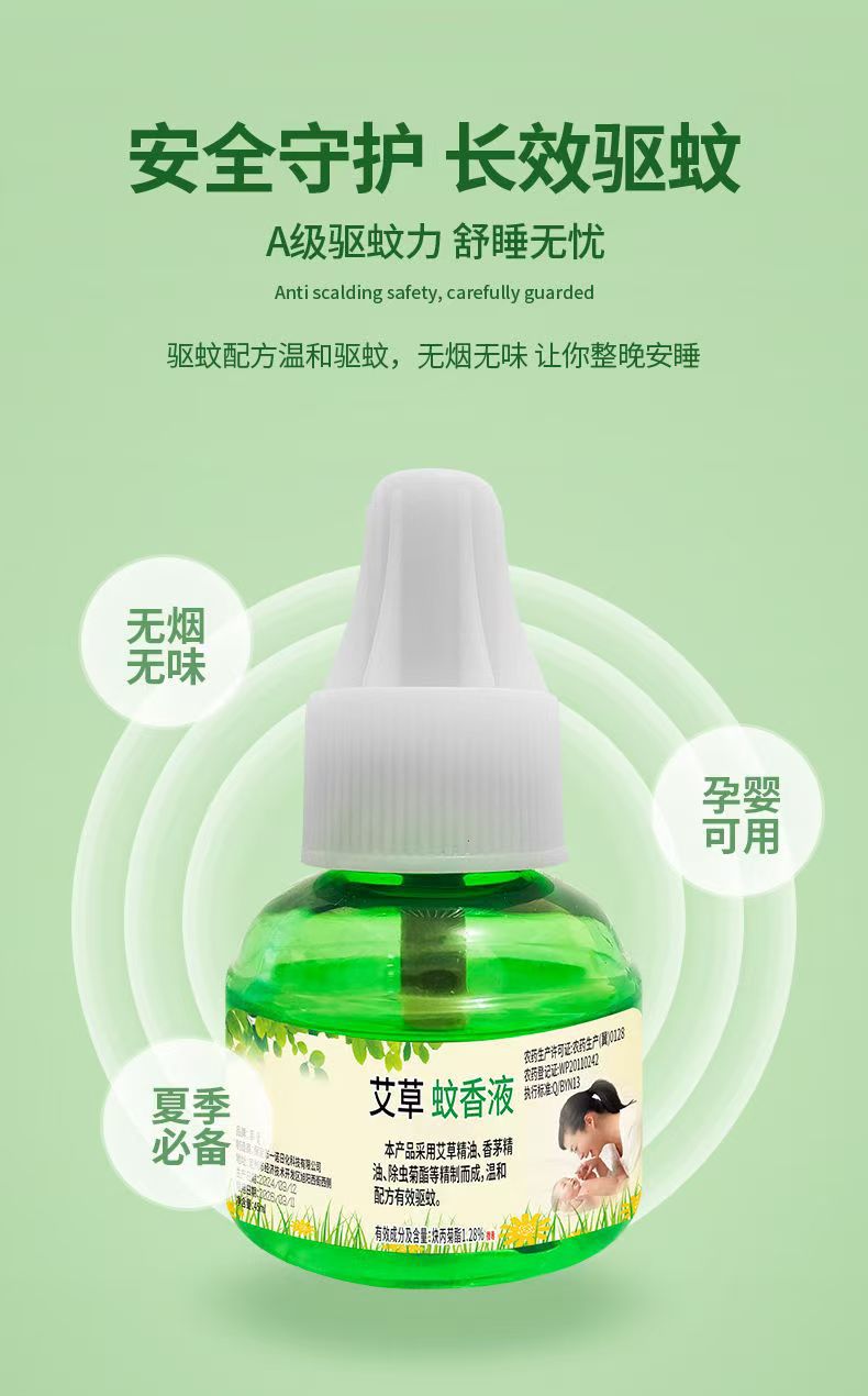 艾草蚊香液驱蚊防蚊液孕婴可用防蚊液电解蚊香插电驱蚊神器驱蚊液