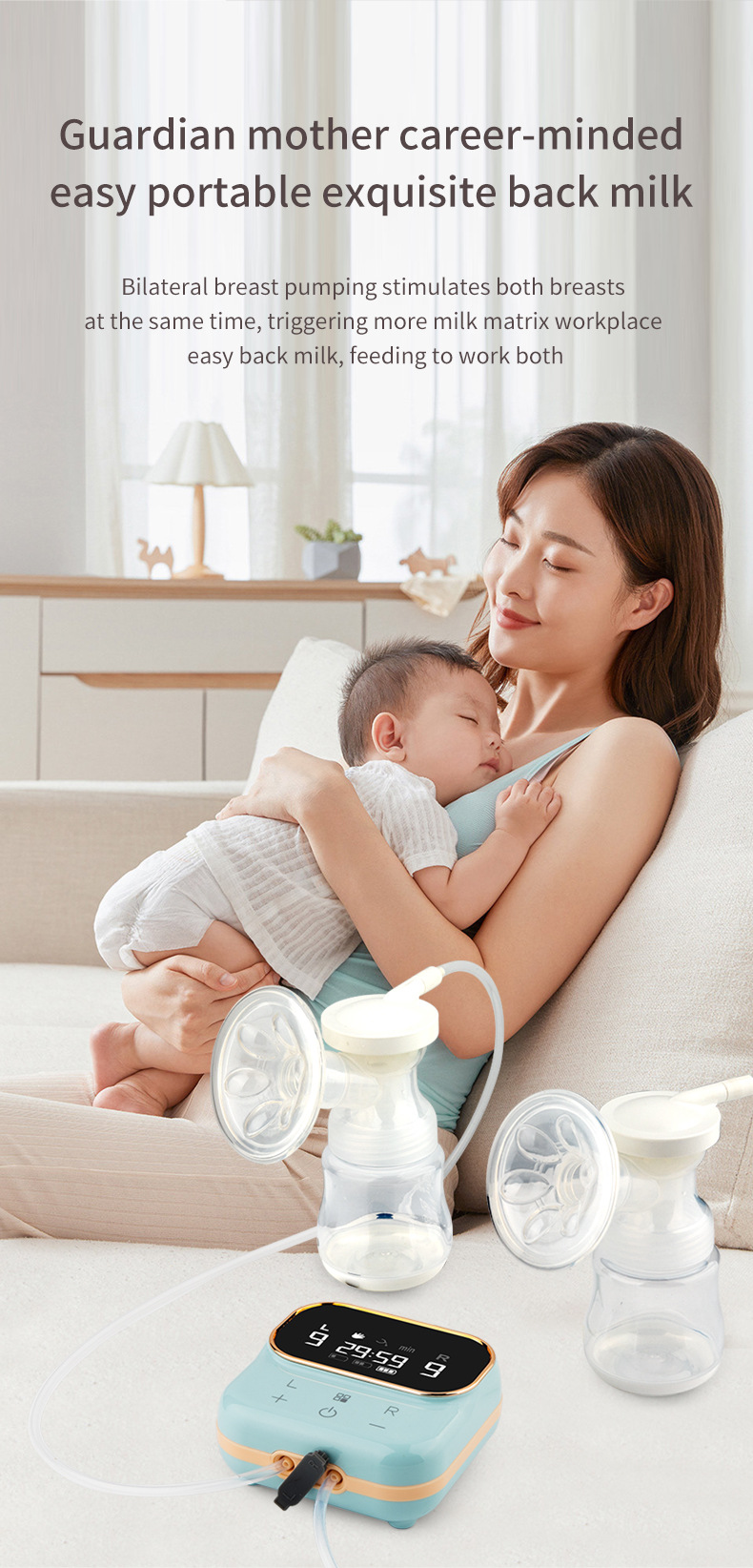 智能双泵吸奶器多功能吸奶器双边九档独立调节电动吸奶器