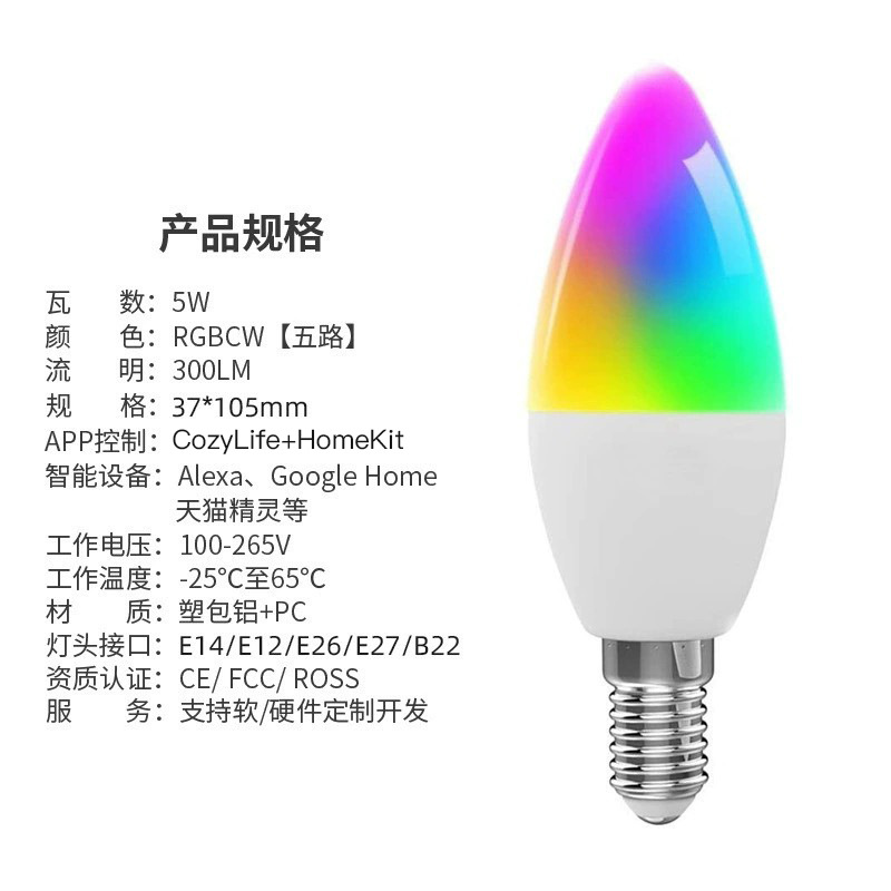 HomeKit智能蜡烛灯WiFi远程Alexa语音RGBCW台灯E12E14尖泡