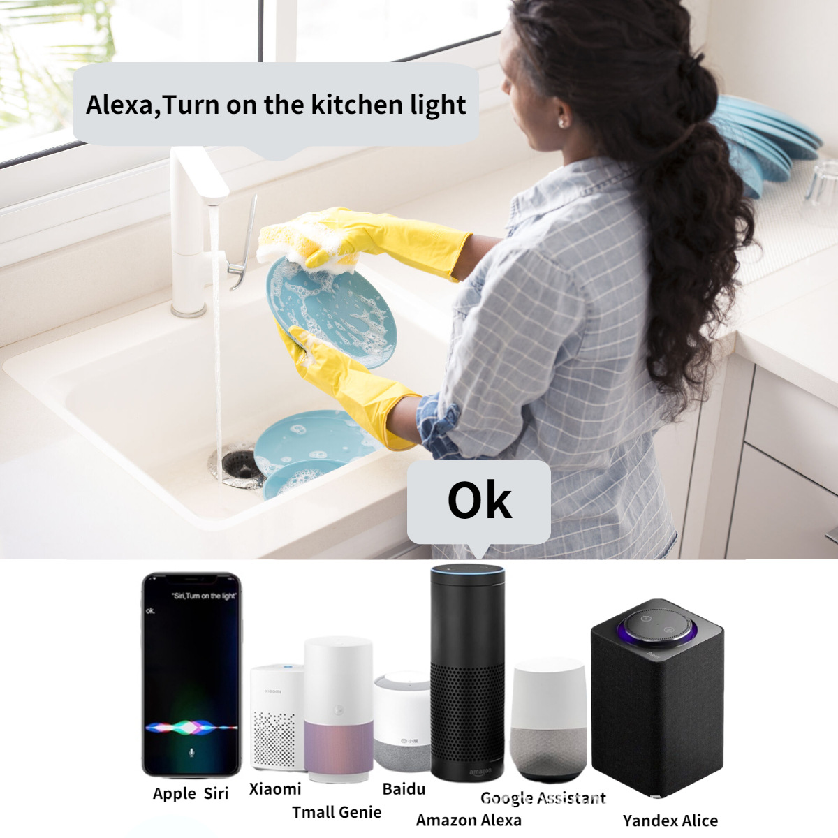 语音控制:兼容 Apple HomeKit、Amazon Alexa 和 Google Assistant。设置完成后,Siri/Alexa/Google 可以通过打开/关闭您的智能开关来充当您的私人管家。