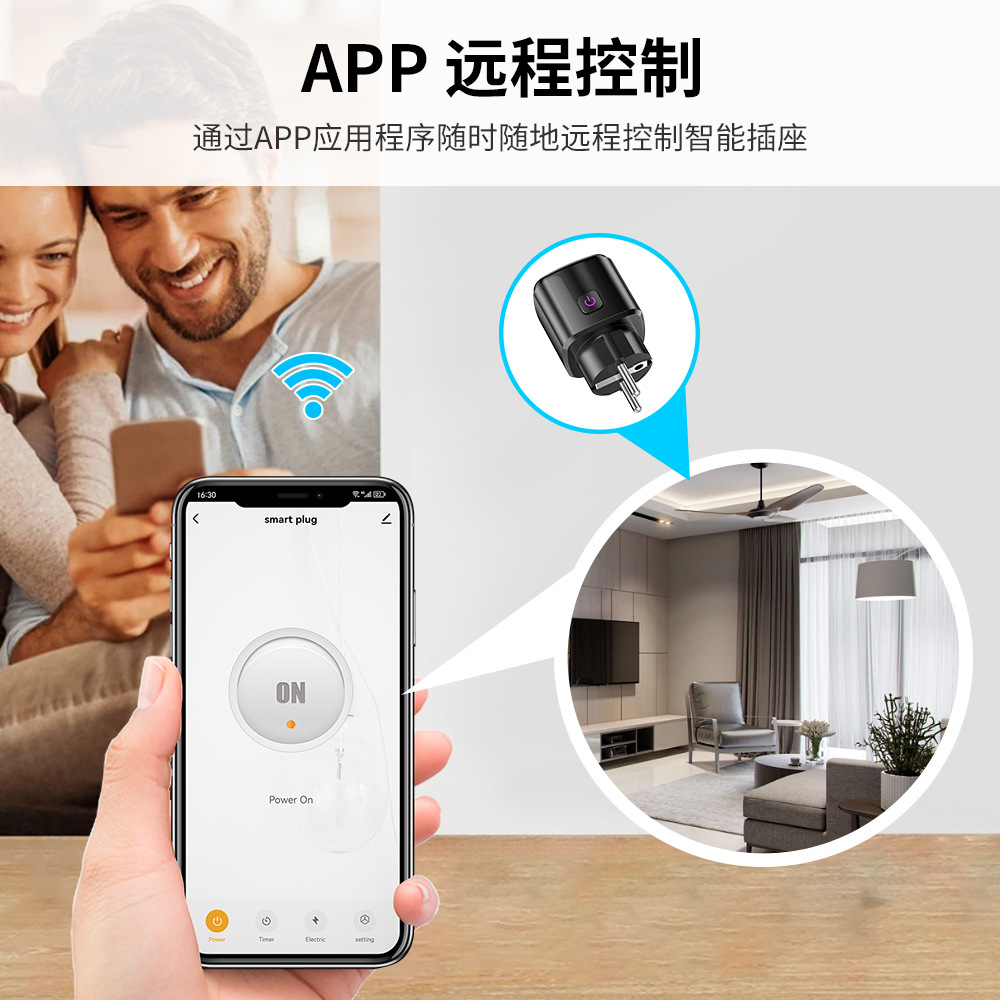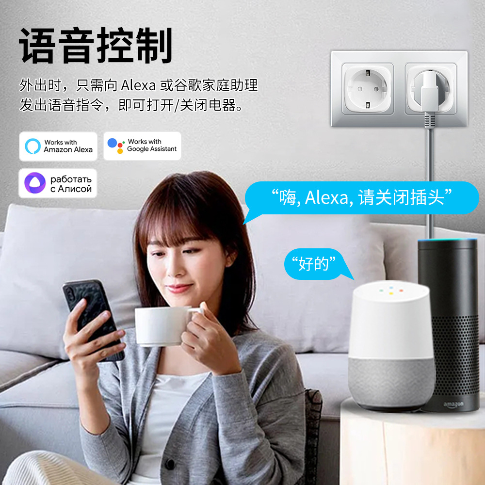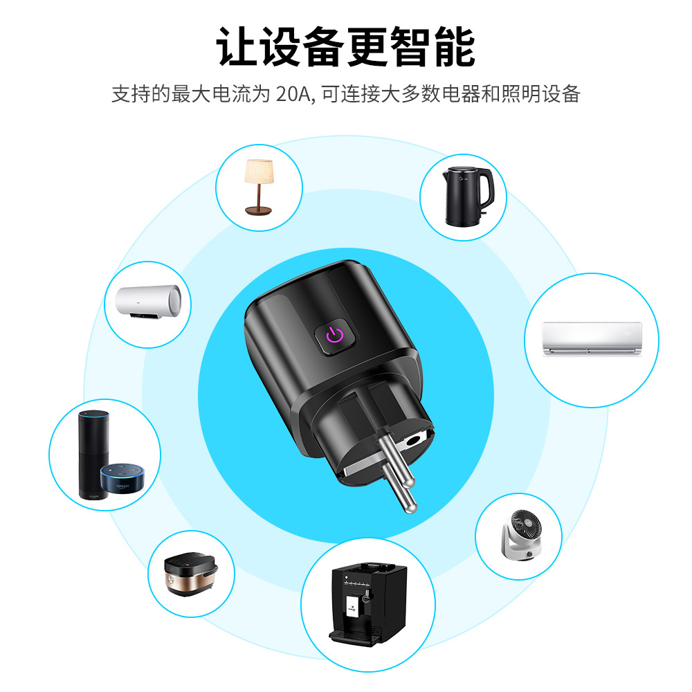 涂鸦WIFI蓝牙20A欧规智能插头插座APP远程语音定时延时循环开关