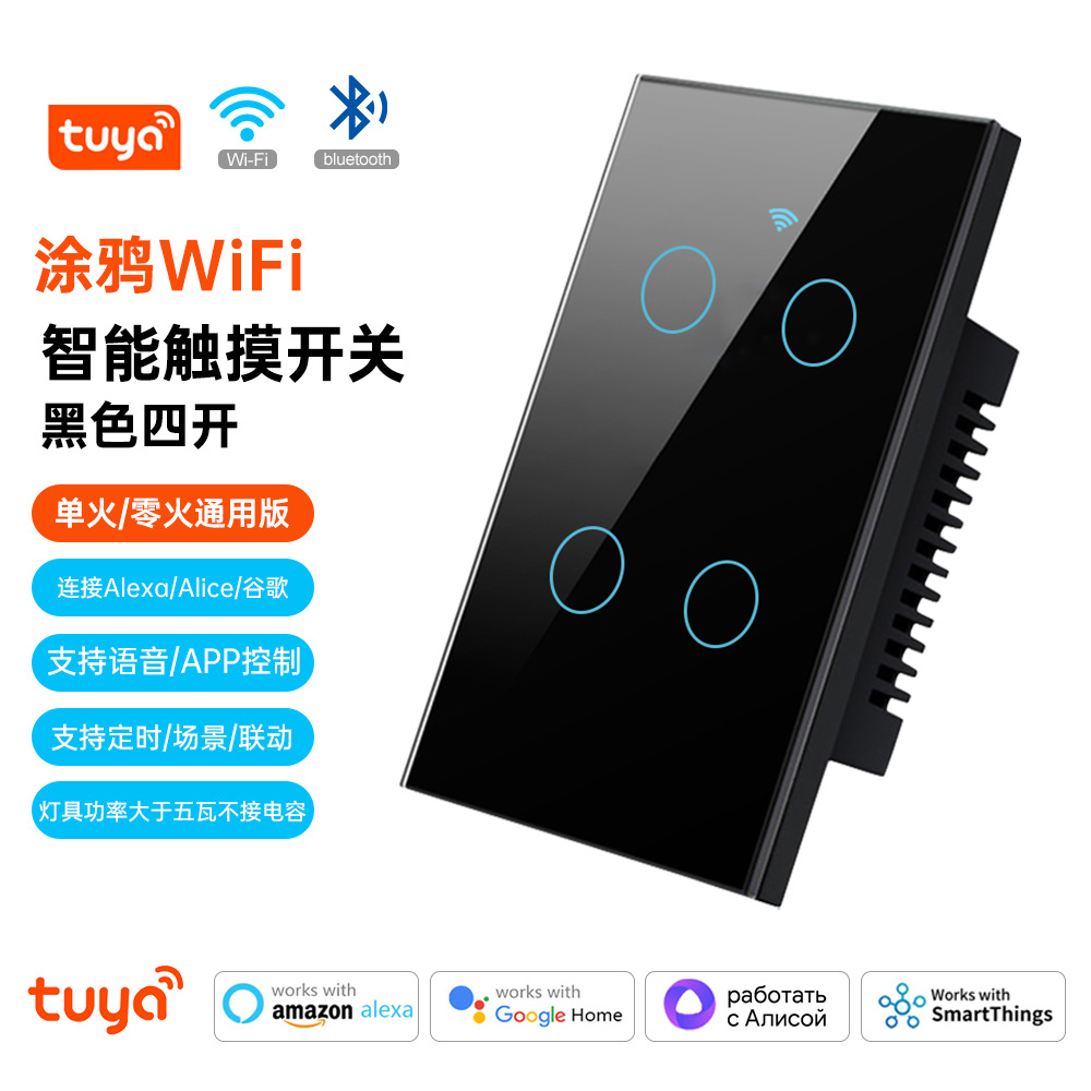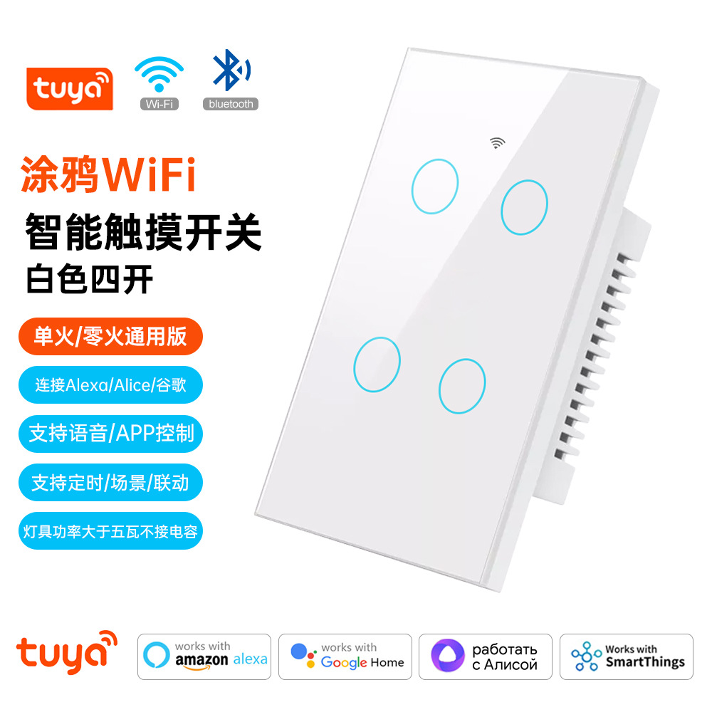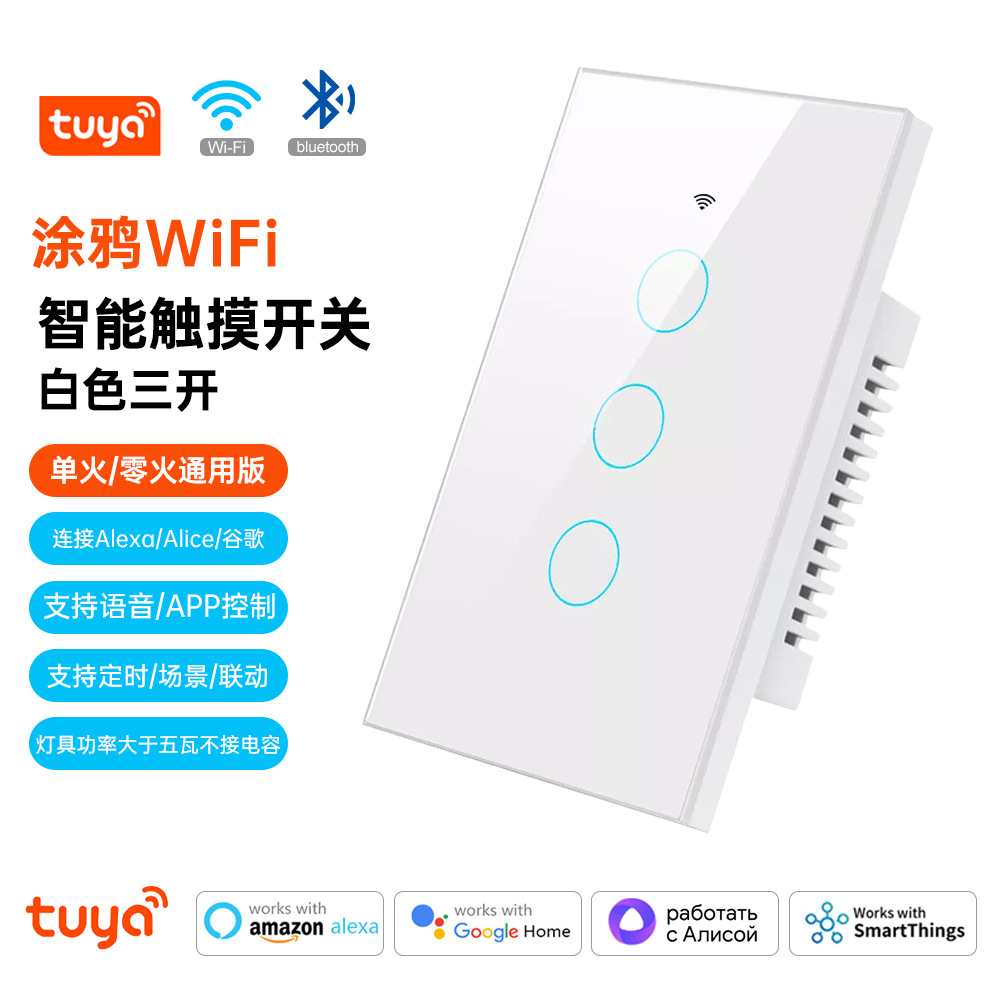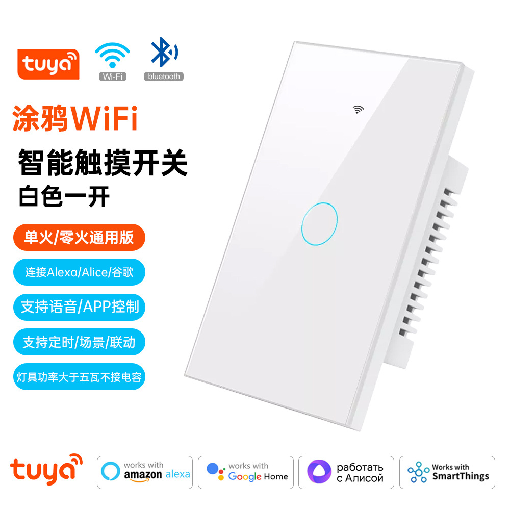 涂鸦WiFi智能家居APP灯控开关面板单零火美规欧规定时触摸语音