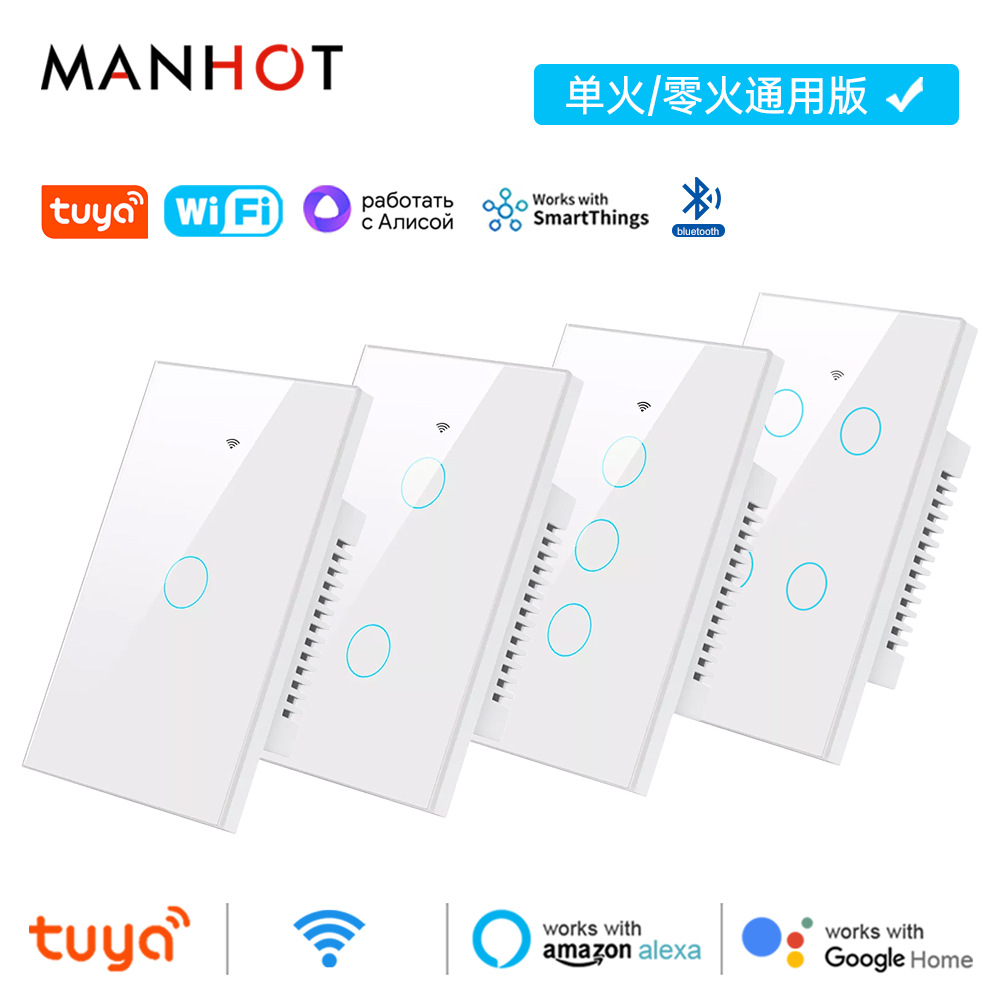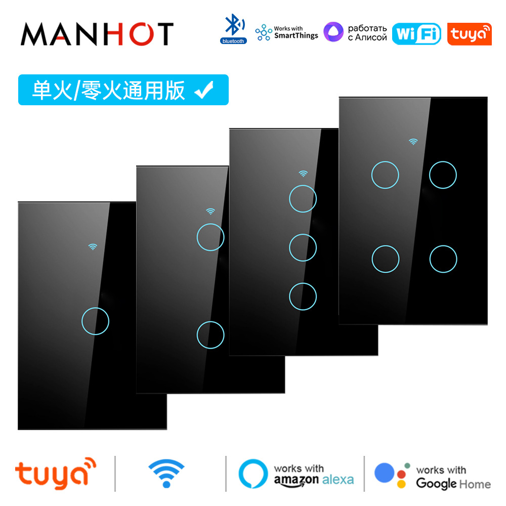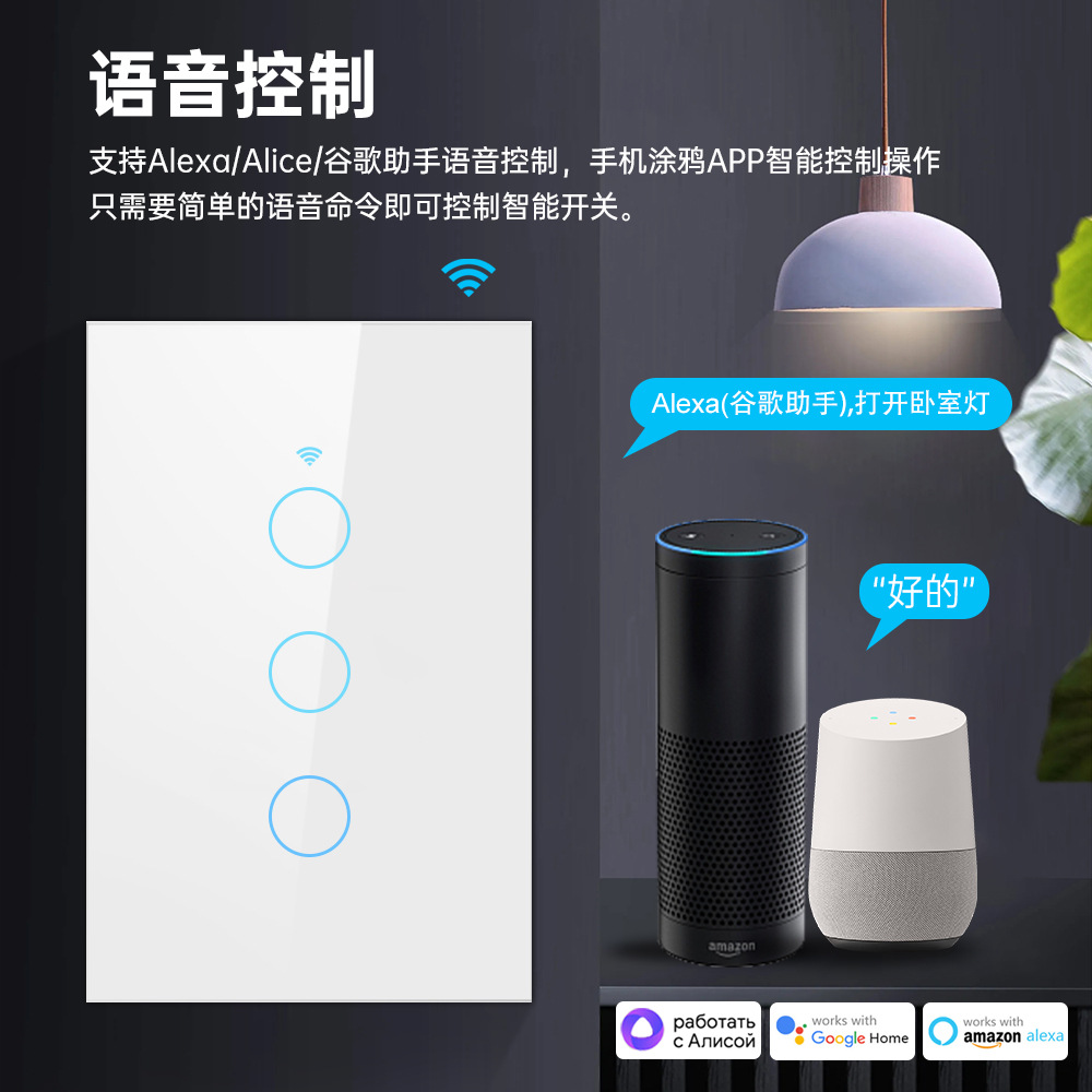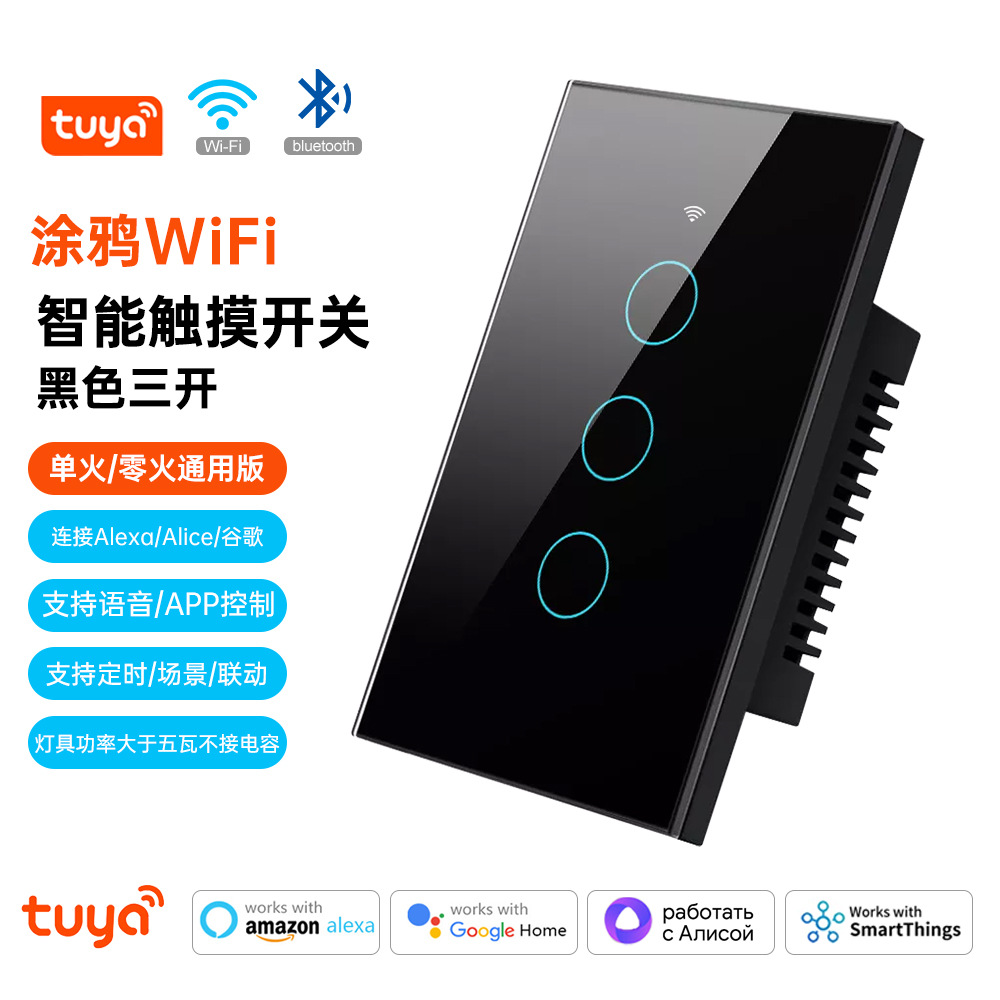 涂鸦WiFi智能家居APP灯控开关面板单零火美规欧规定时触摸语音