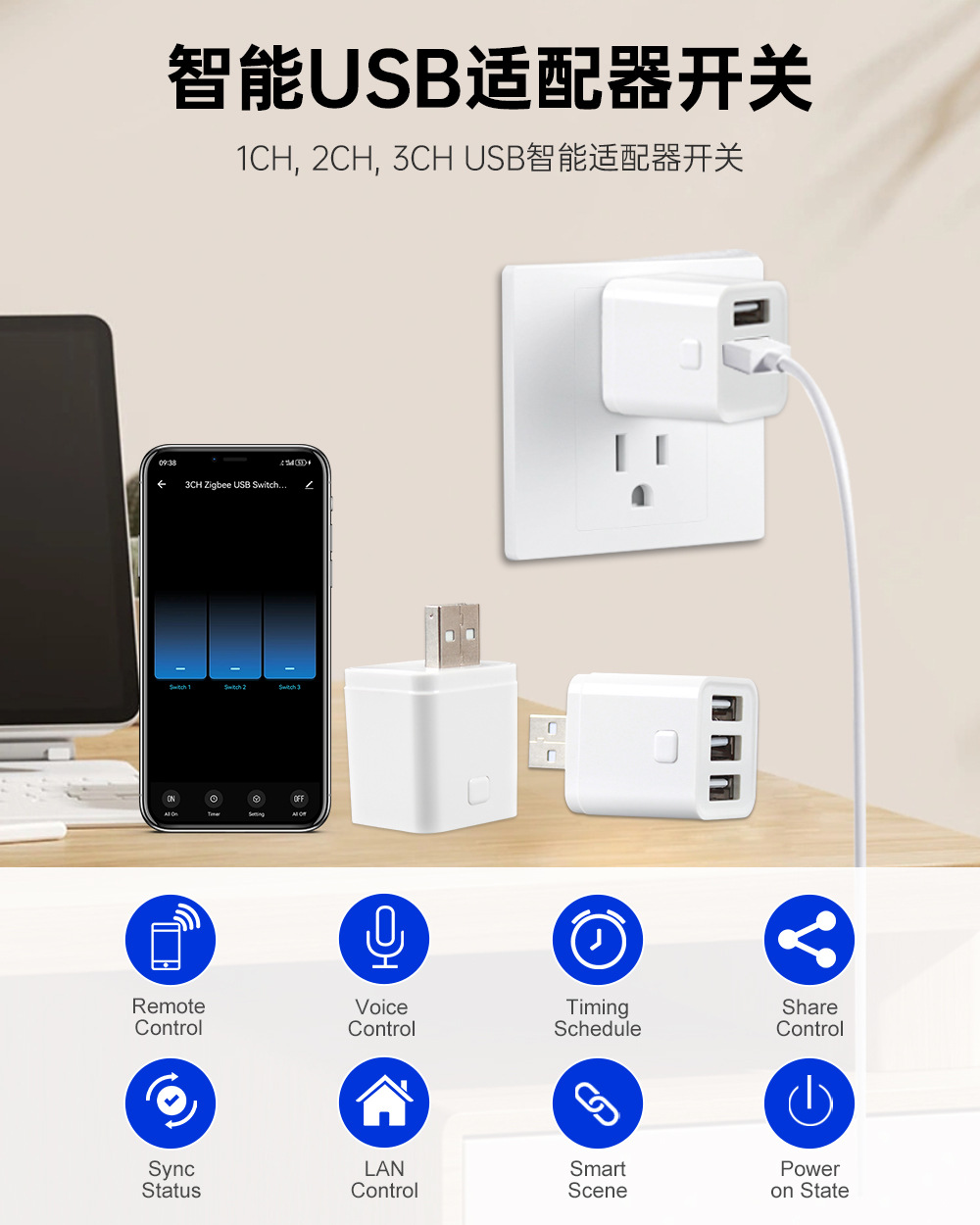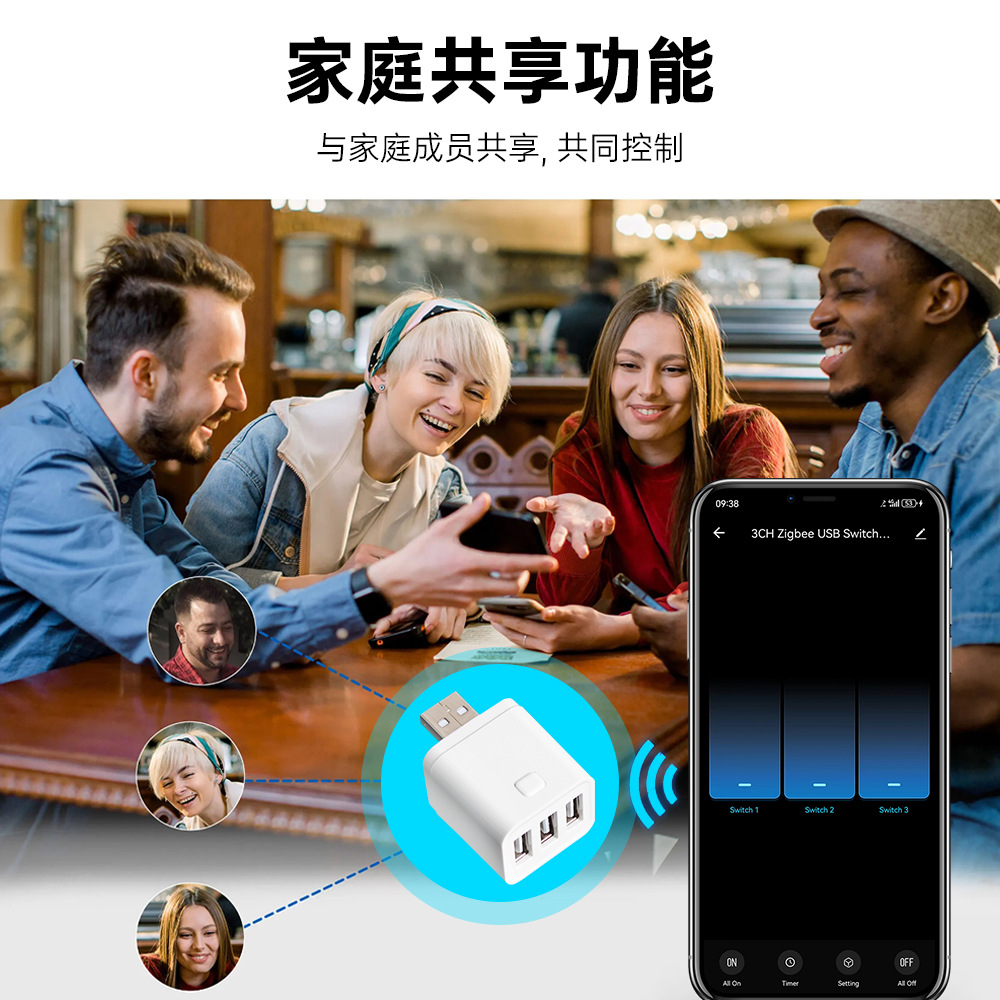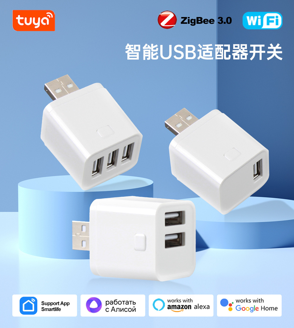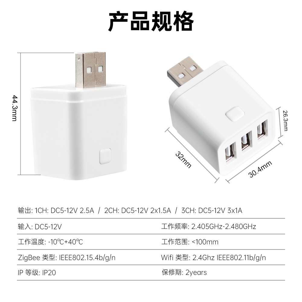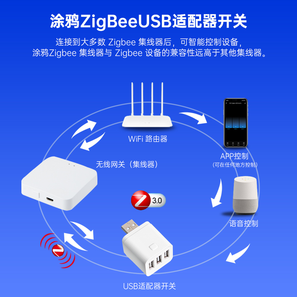 涂鸦Zigbee智能USB适配器开关5V2A多接口电源适配器充电头APP控制