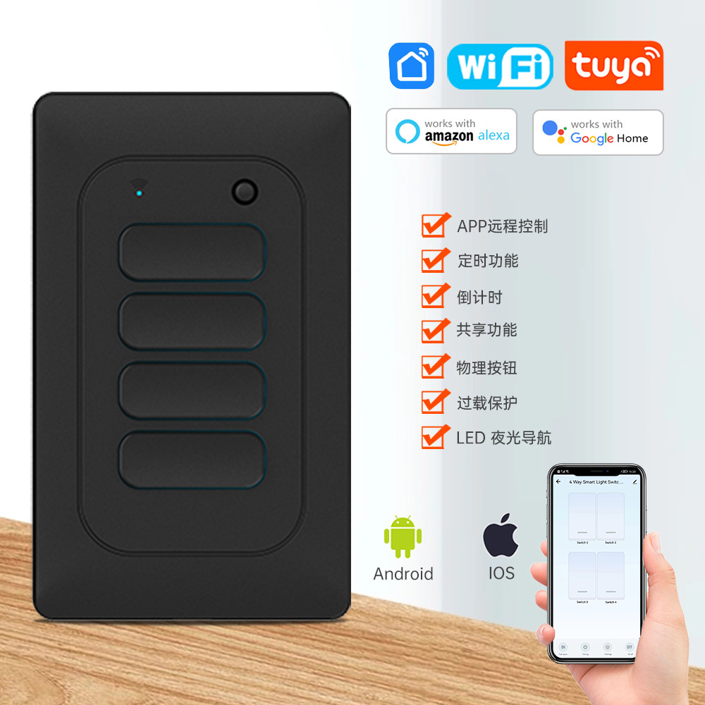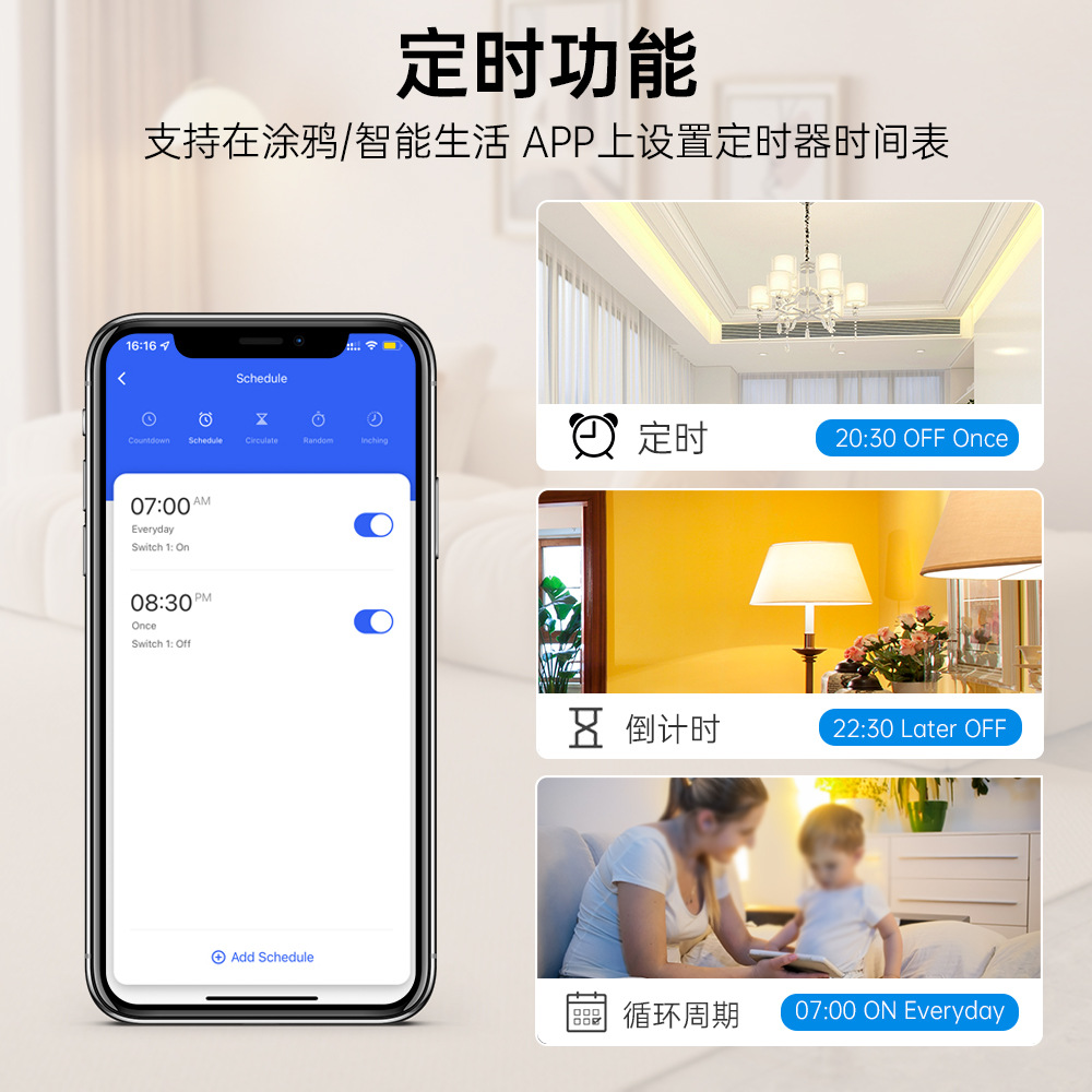WiFi/Zigbee涂鸦Tuya智能开关单火零火通用美规按键墙壁开关谷歌