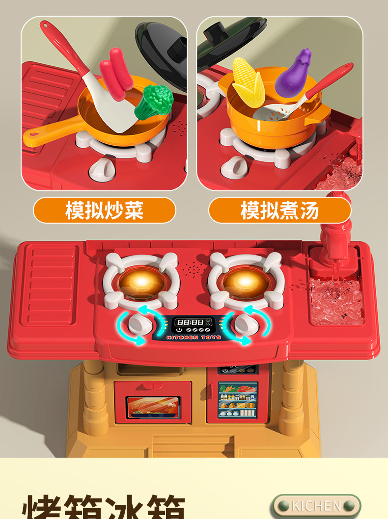 跨境 儿童厨房玩具过家家做饭仿真厨具套装3小男女孩6岁生日礼物