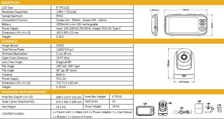 【厂家直销5寸高清婴儿看护器监视器监护器宝宝监控云台跨境爆款