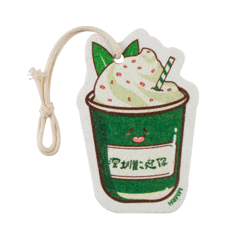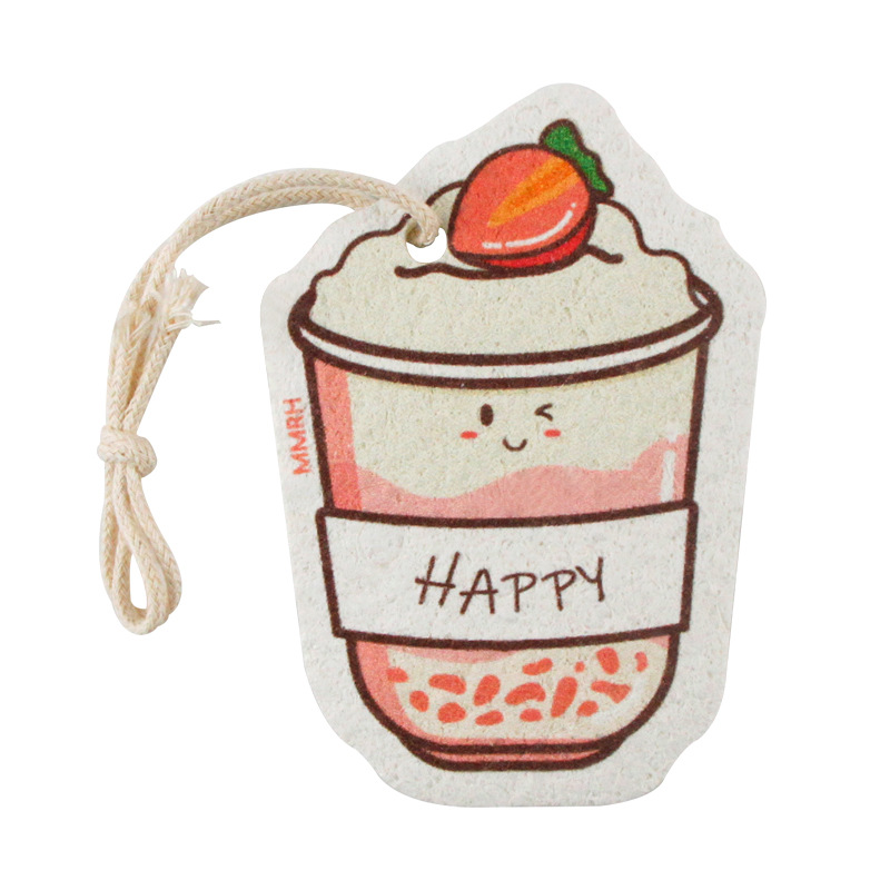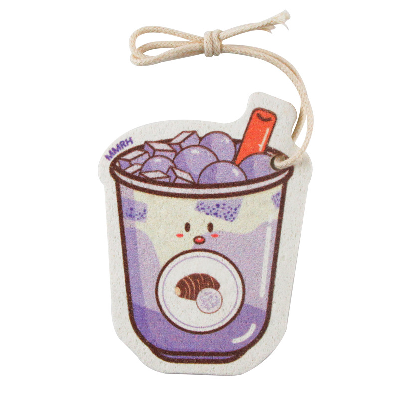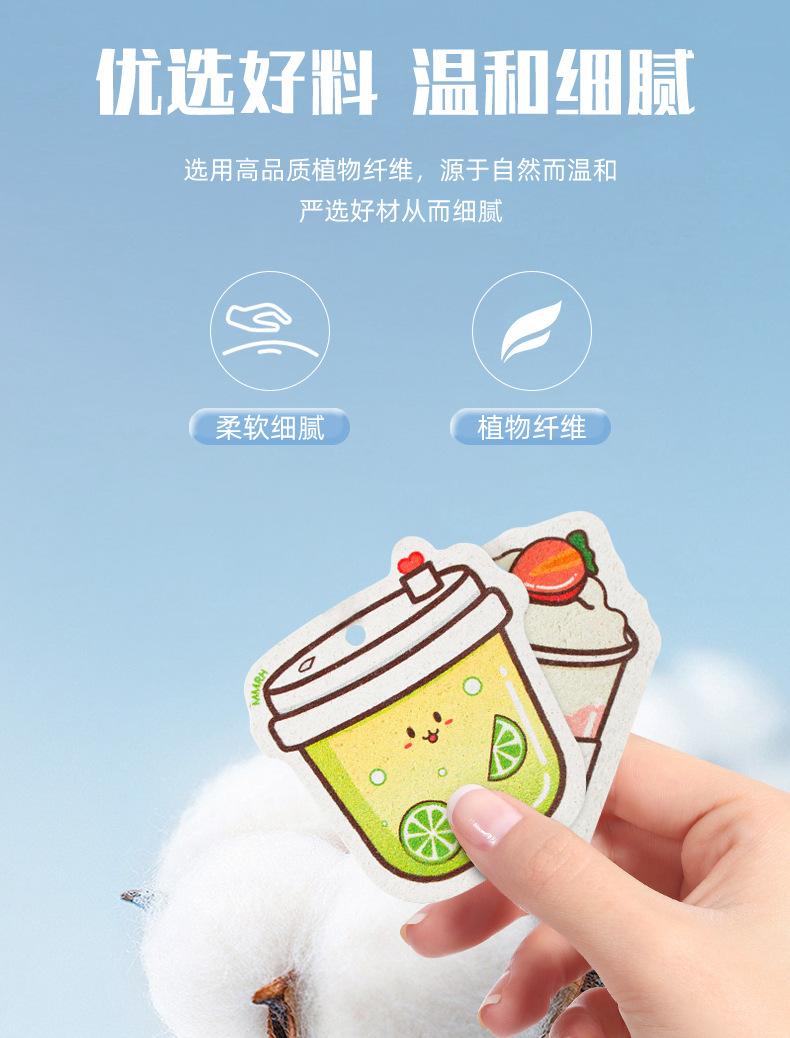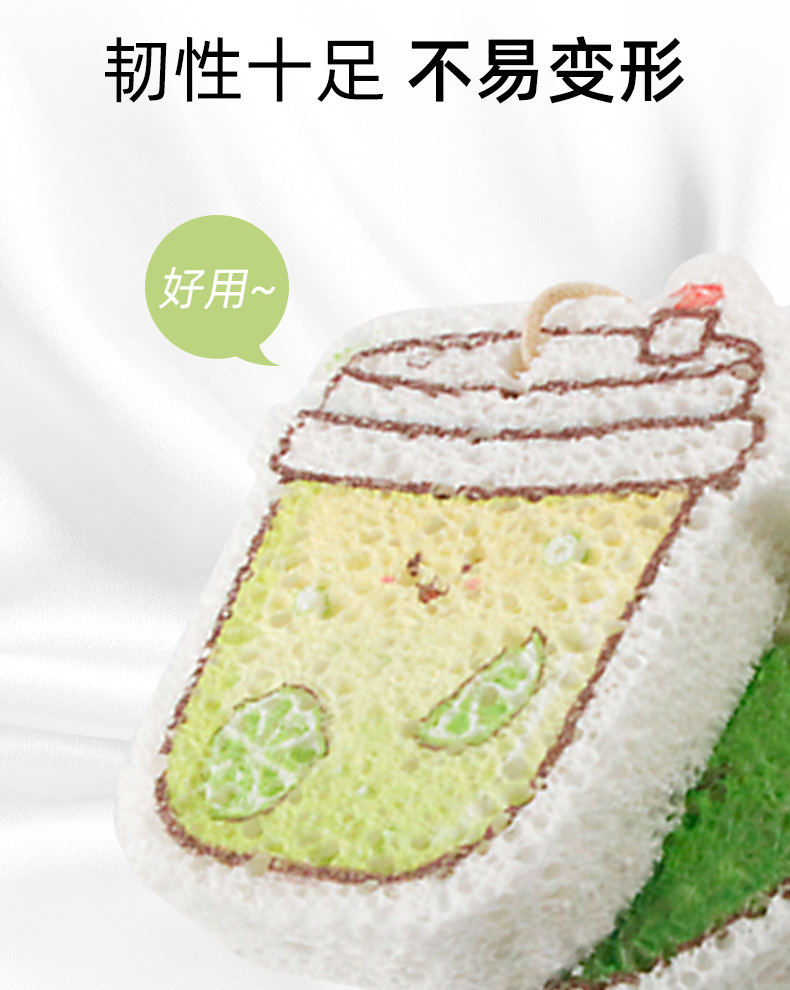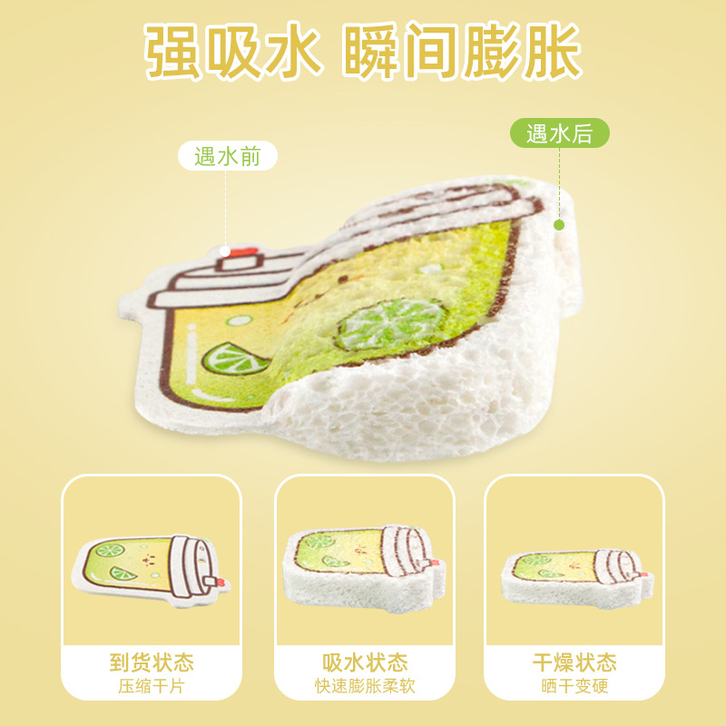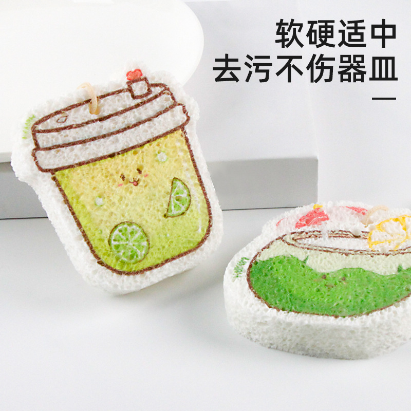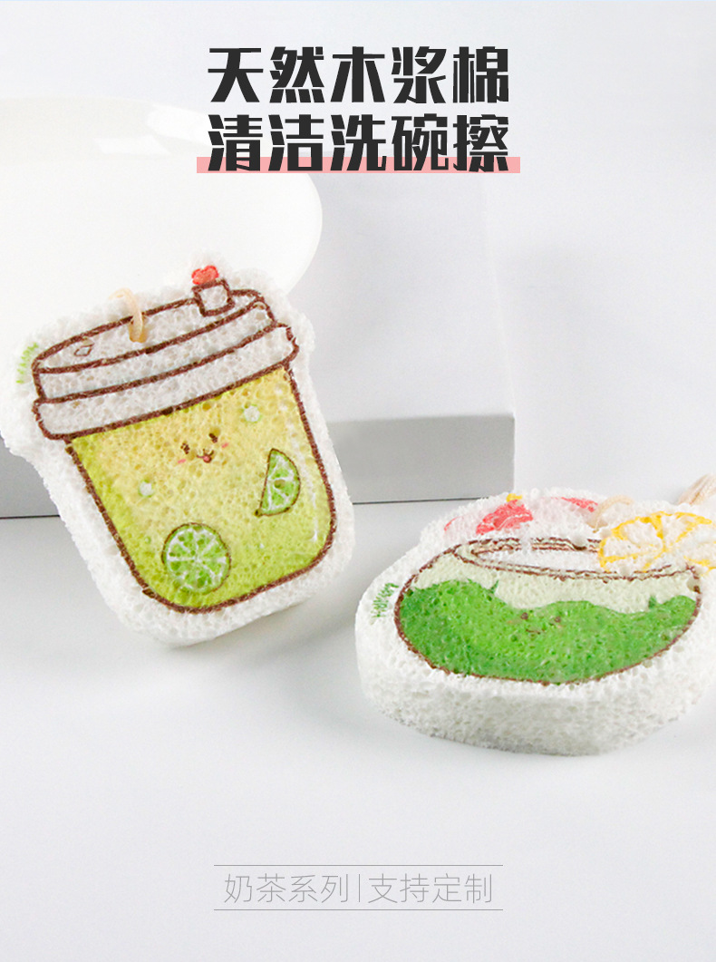 跨境奶茶店联名款双面洗碗棉天然压缩印刷木浆棉可降解创意海绵擦