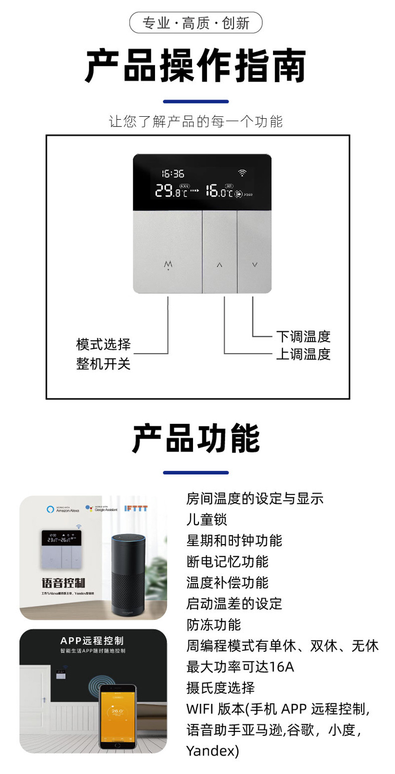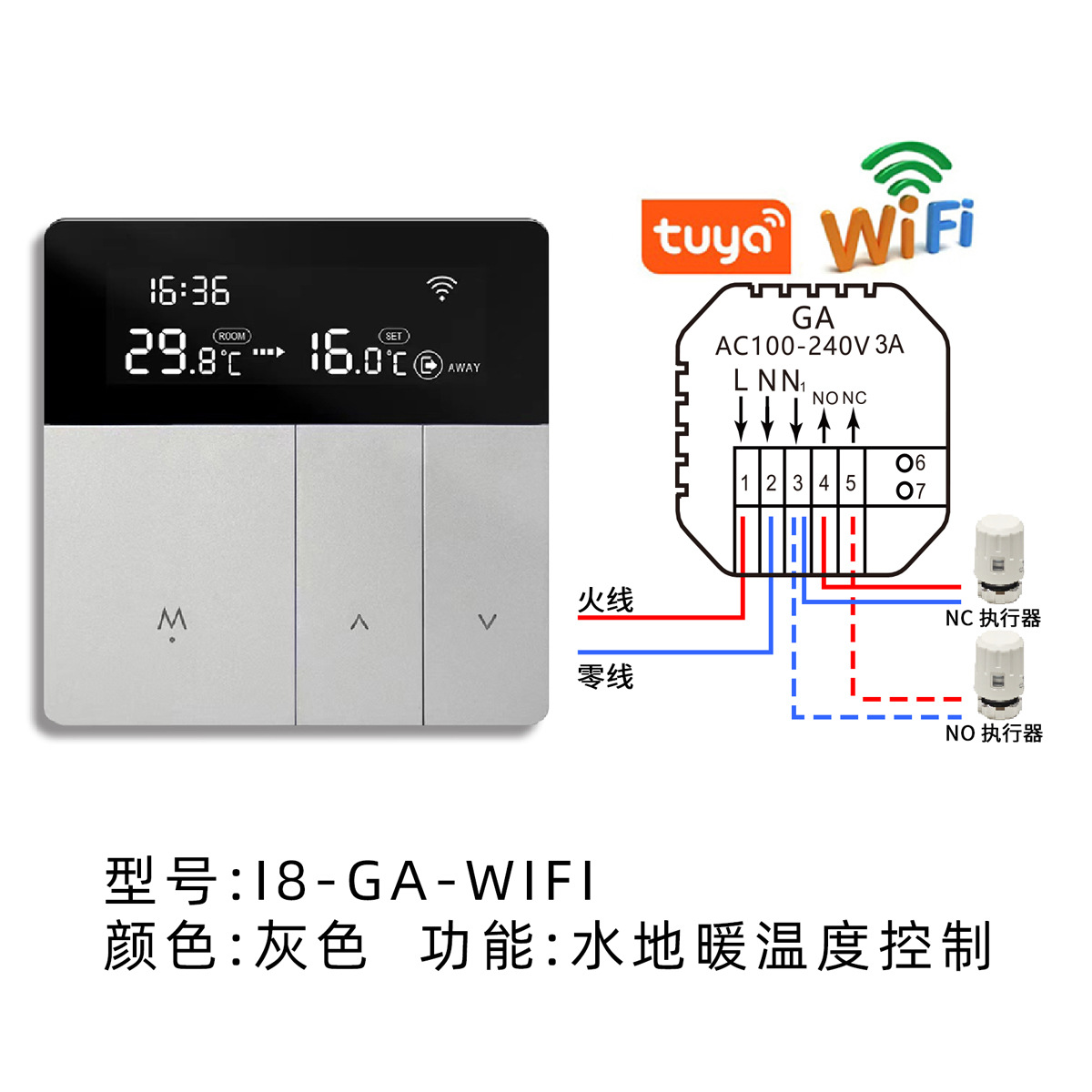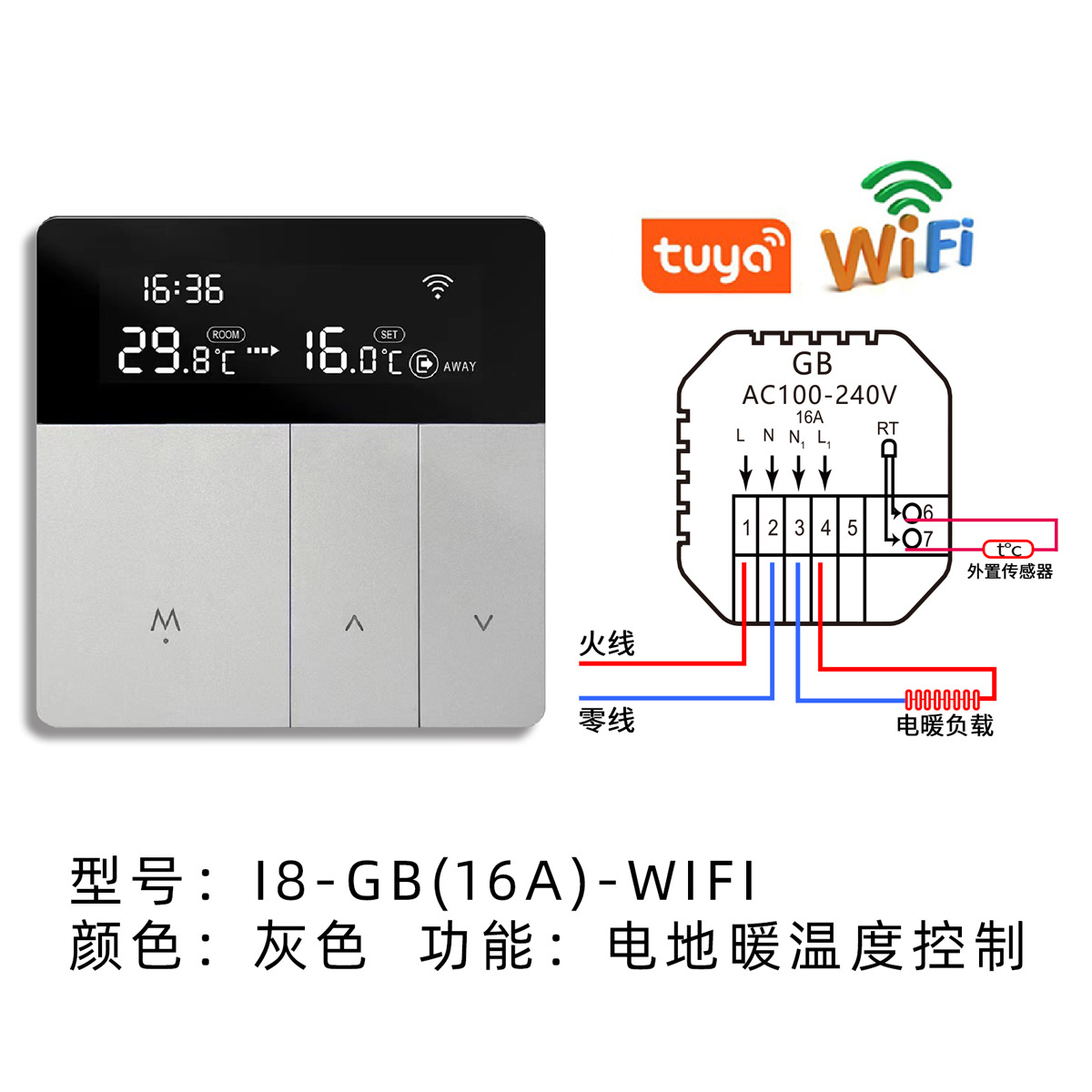 涂鸦智能wifi远程控制加热电地暖温控器面板壁挂炉温度调节开关