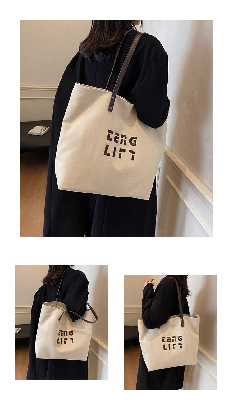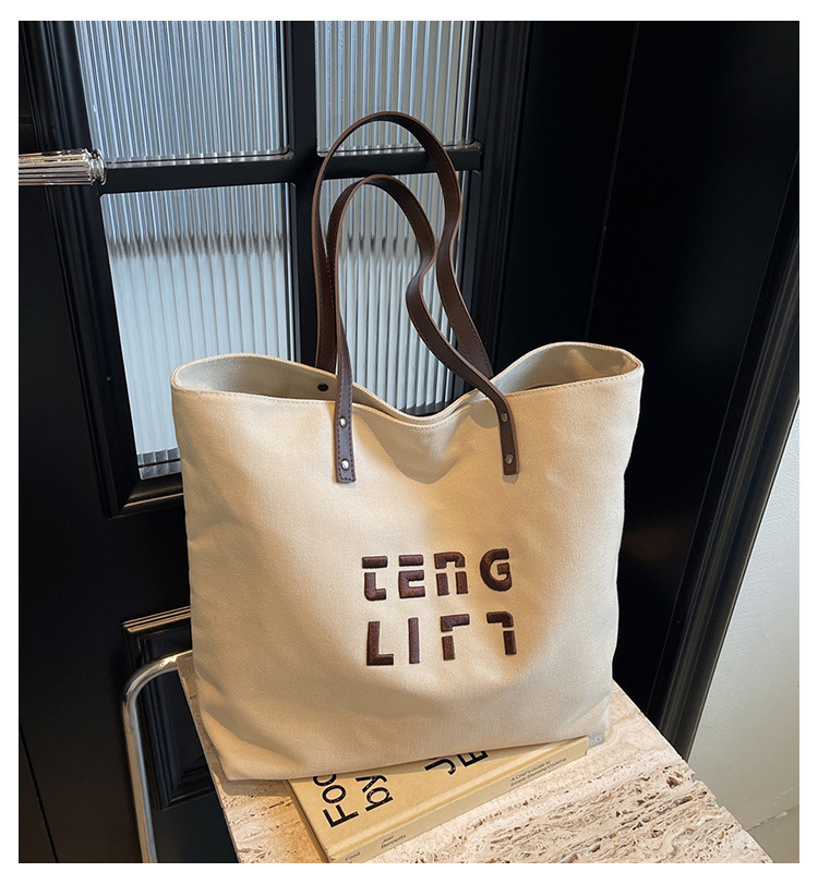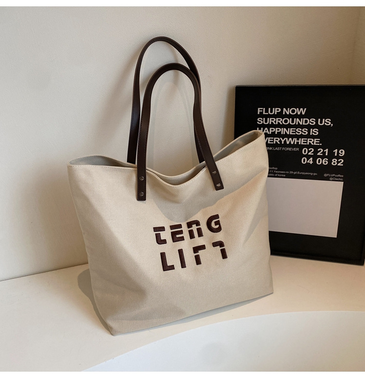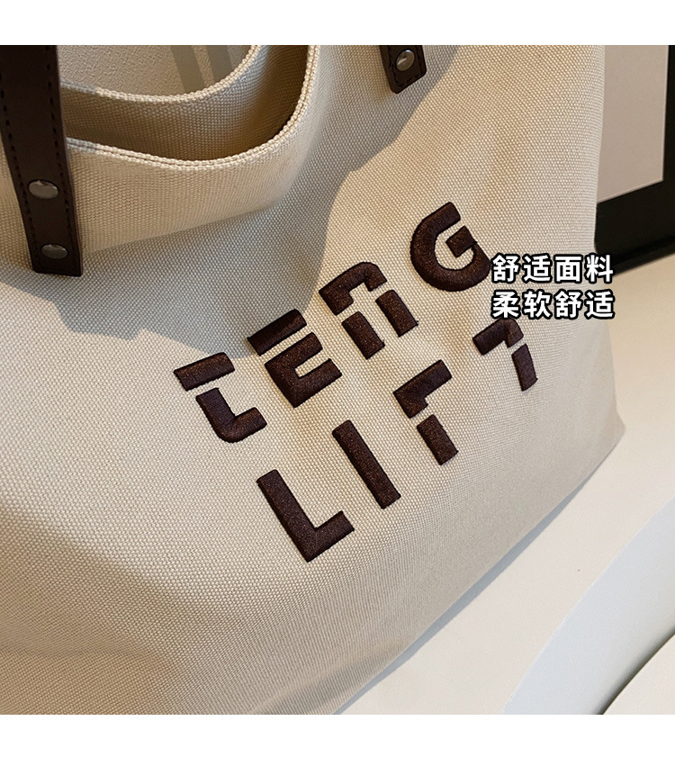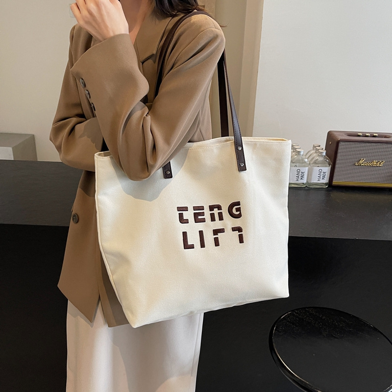 韩版刺绣字母帆布包包女大容量通勤手提袋大学生上课单肩托特大包