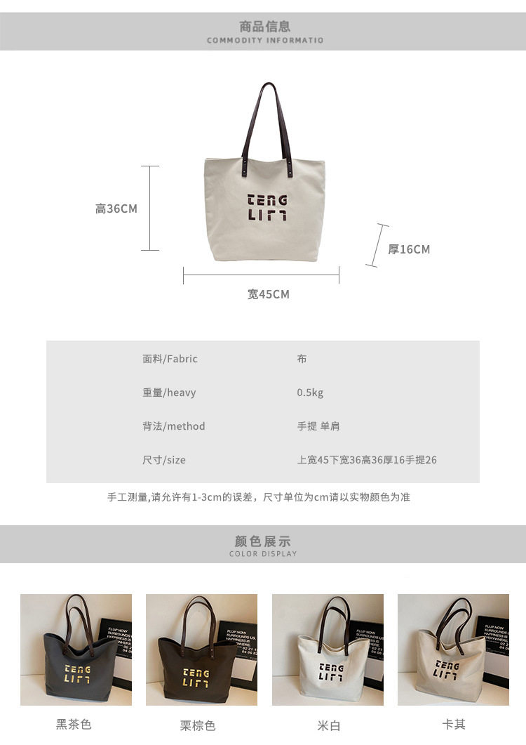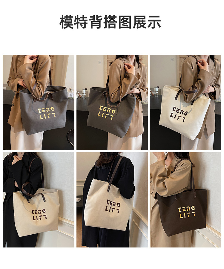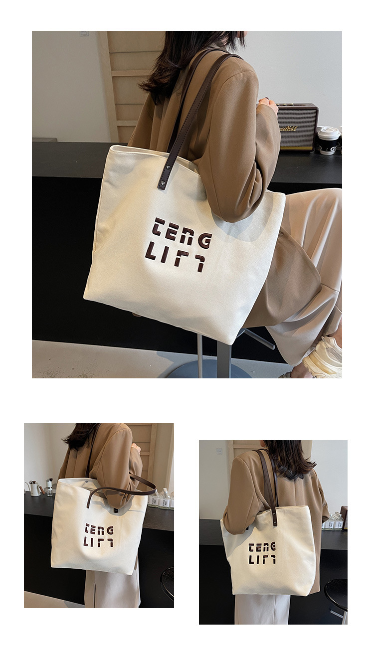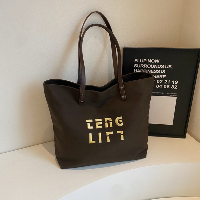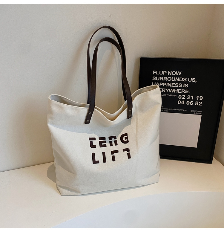 韩版刺绣字母帆布包包女大容量通勤手提袋大学生上课单肩托特大包